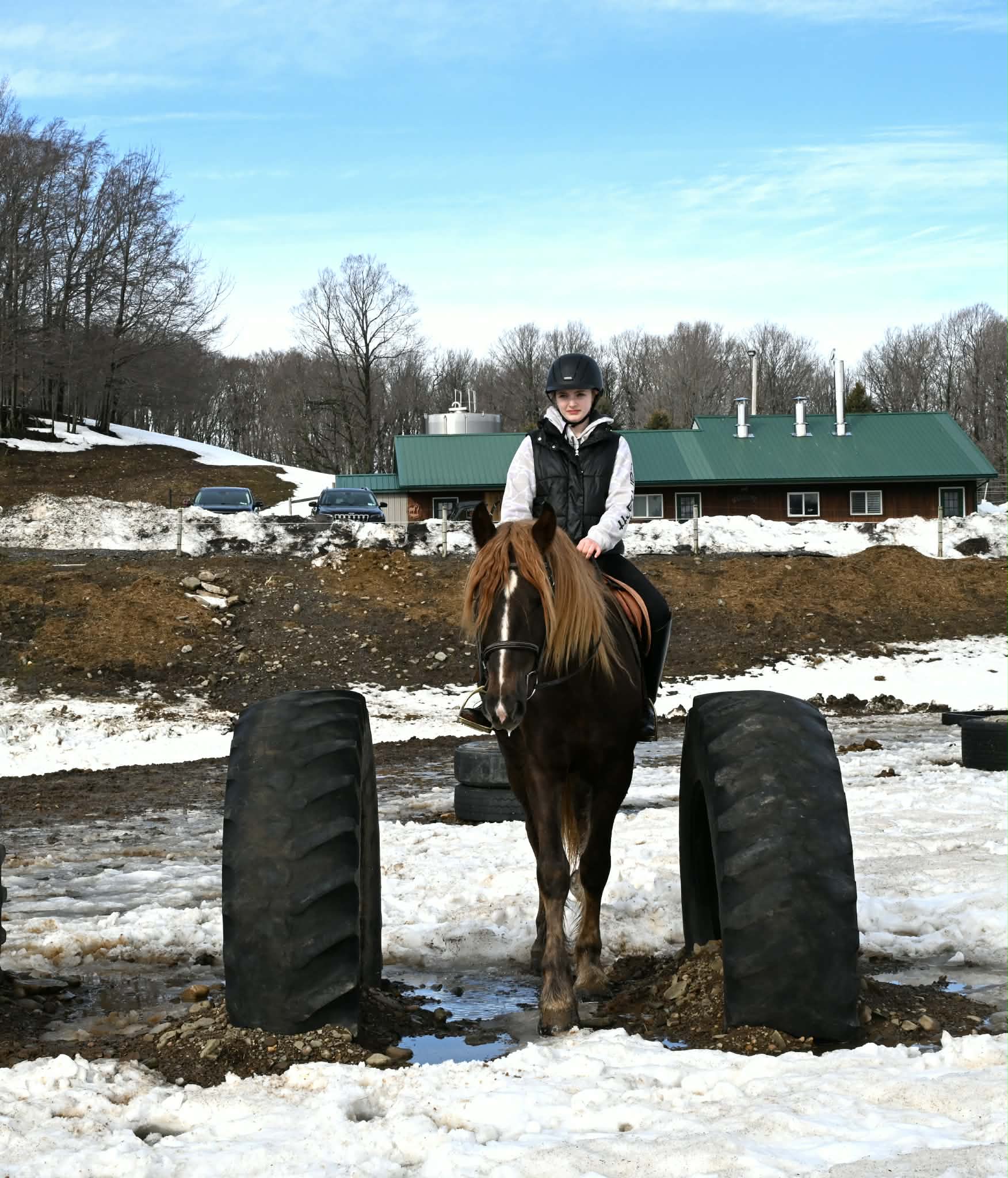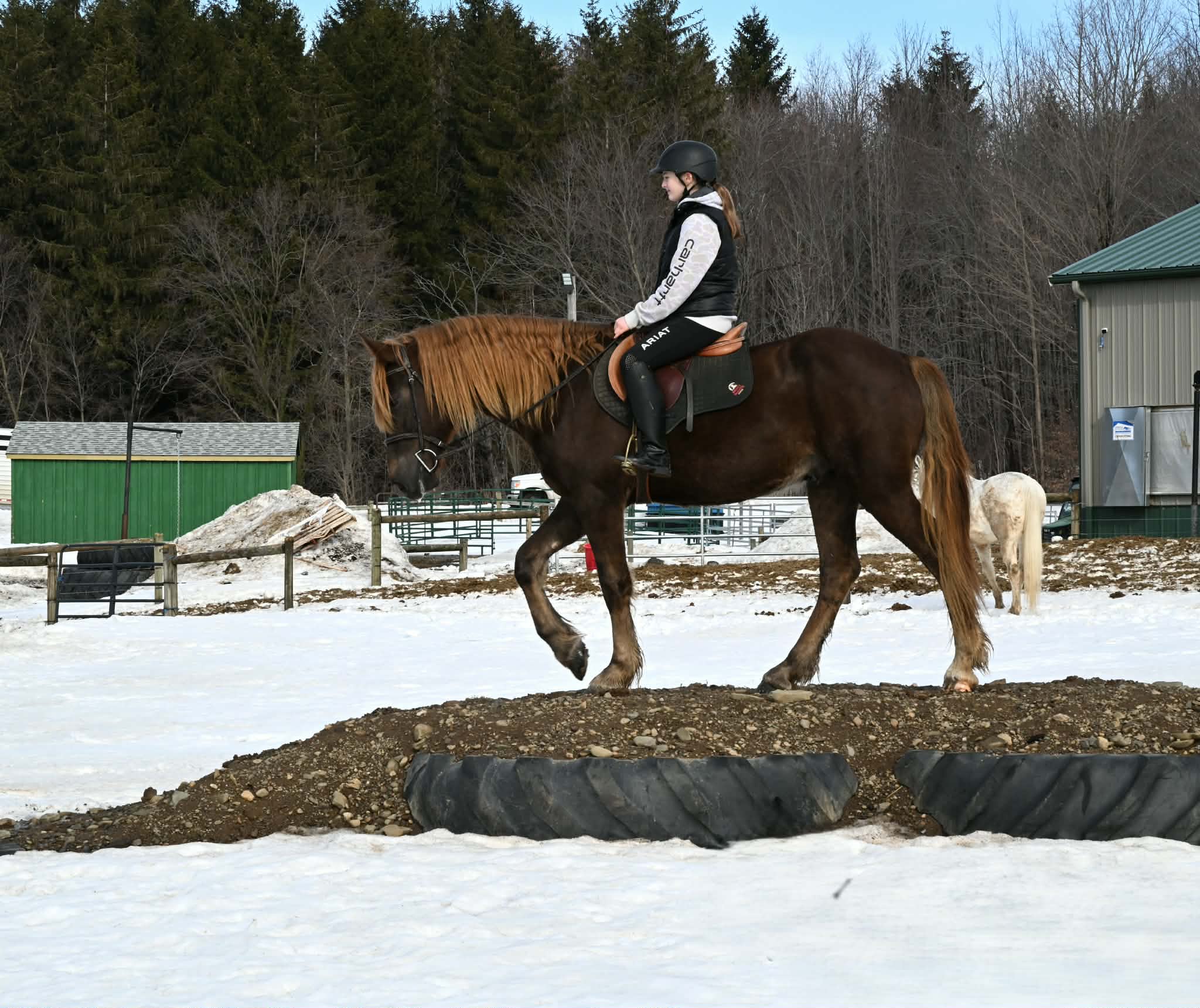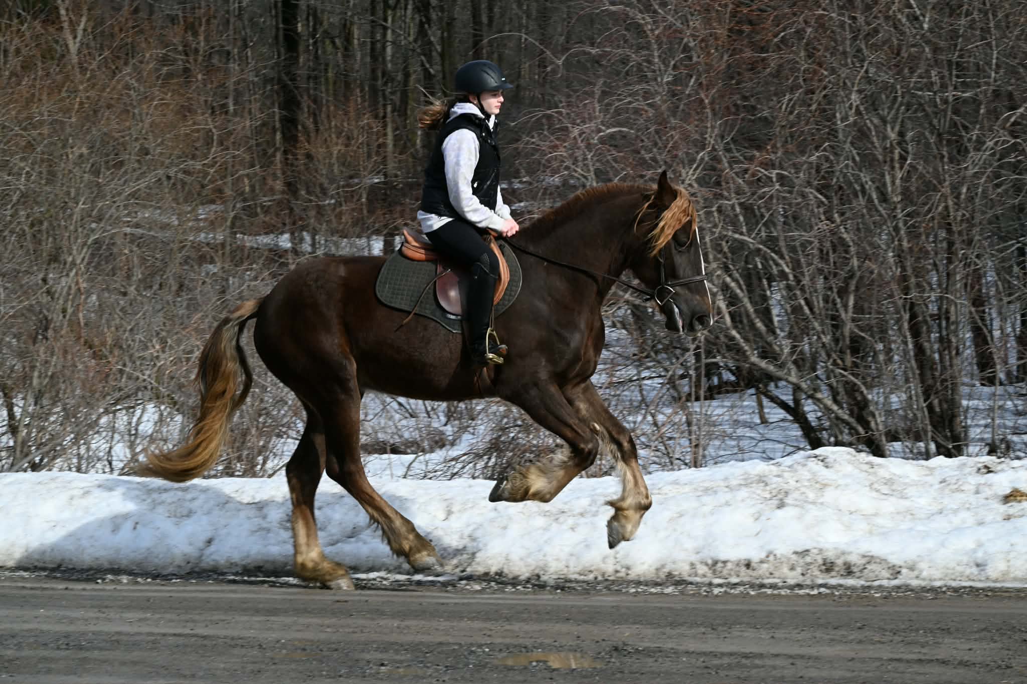 Here is the Friesian sport horse gelding with the perfect hair, Fabio. Standing at 16/16.1hh and just 4 years old, he is a great size for everyone to enjoy. He knows his leads and can canter a nice circle in the arena. He is very soft in the bridle and has a natural self-carriage. Fabioโs ground manners are excellent; he will stand all day tied with no fuss. Around the farm, he has been exposed to various farm animals, tractors, 4-wheelers, and vehicles without any issues. Fabio will trail ride alone or in a group and go anywhere you point him. Fabio will cross logs, bridges, water, and anything else you may encounter on the trail without hesitation. We have put him through our obstacle course, and he easily passed everything! Fabio is traffic-safe and good with tarps, stock whips, and bridges. Fabio will definitely get you noticed out in public; he already gets compliments all the time. He rides in a plain snaffle and works off your legs easily. He has been ridden in English and Western and is the same horse every time you bring him out of the stall. Fabio has also been started over fences. Beginners and advanced riders have ridden him. Fabio stands well for the vet, clipping, and bathing. He sells 100% sound with no vices. We welcome you to come out to the farm and try him out. Contact Dayton at 585-734-0169 for more information on Fabio. Visit our website Wolcotts horses and training and follow us on Facebook!