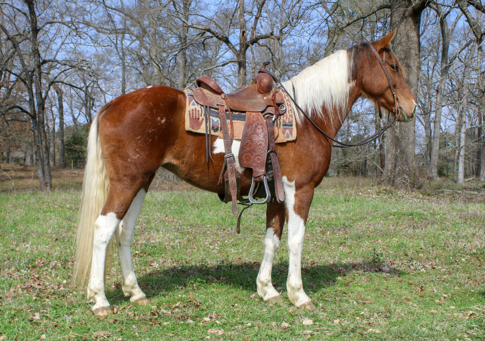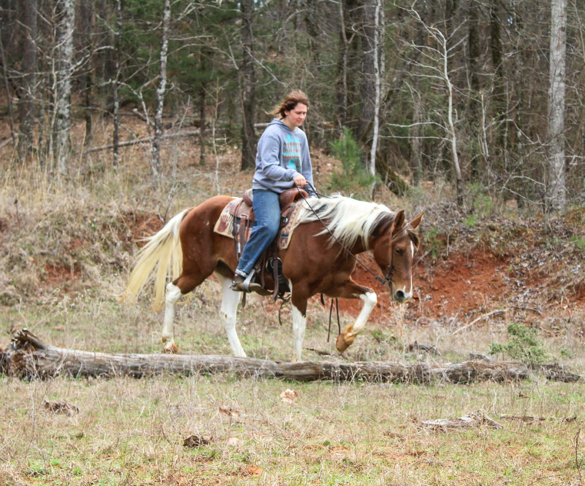 Abby is a 9 year old paint gaited mare, standing 14.3 hands tall and is as flashy as they come! If your looking for a horse that combines beauty, brains, and a gentle temperament? Look no further! This eye-catching mare is gentle, quiet and extremely willing! Abby has been trail rode all over, she goes wherever she is asked, crosses the creeks, logs and bridges great! She has also been around cattle for basic ranch work. she has smooth gates and traveled out great when asked! Abby has been hauled to lots of trail camps, been on overnight camping and does great with anything you throw at her! If you’re looking for a trail partner, and a stunning addition to your family, this mare is the one for you! If you would like to schedule a time to come meet and ride Abby, or have any other questions about her feel free to reach out!