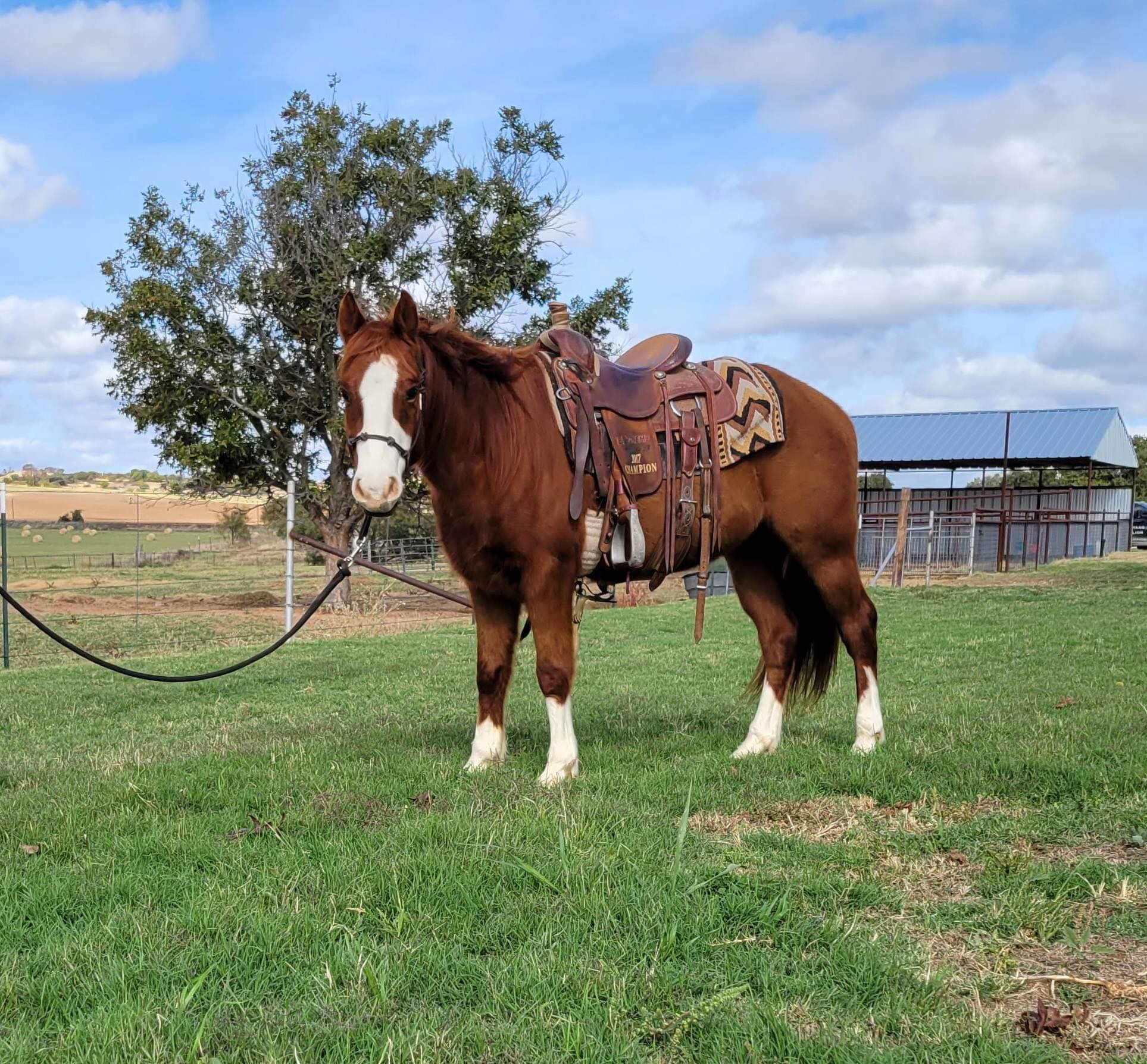 Ace is a 8-year-old grade gelding standing 14hh. He’s a small horse with a big heart and travels out nicely. Quite and calm my daughter does everything with him. Trail ride, started on barrels and roping. Tommi Jean named him Ace because he aces everything! My daughter has been the only one to ride Ace and I’ll admit that it won’t be easy to see him go. So if you’re a small person or you have a kid that can ride. This horse will fit you. He’s good with tarps and carries a flag too! Located in Rising Star Texas. For more information please call Arianne 254-433-2790.