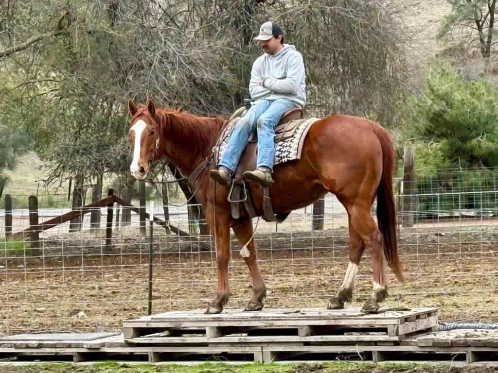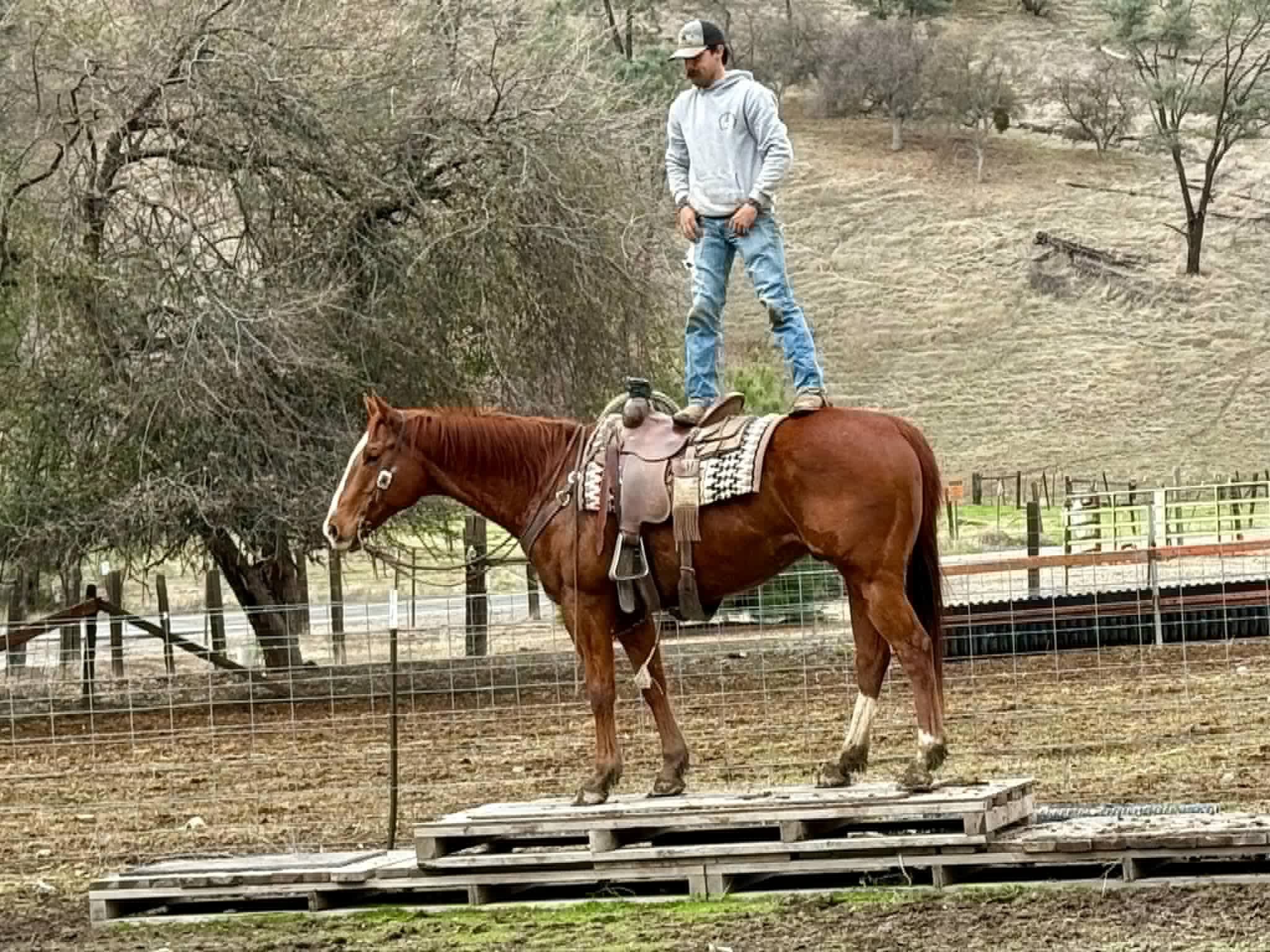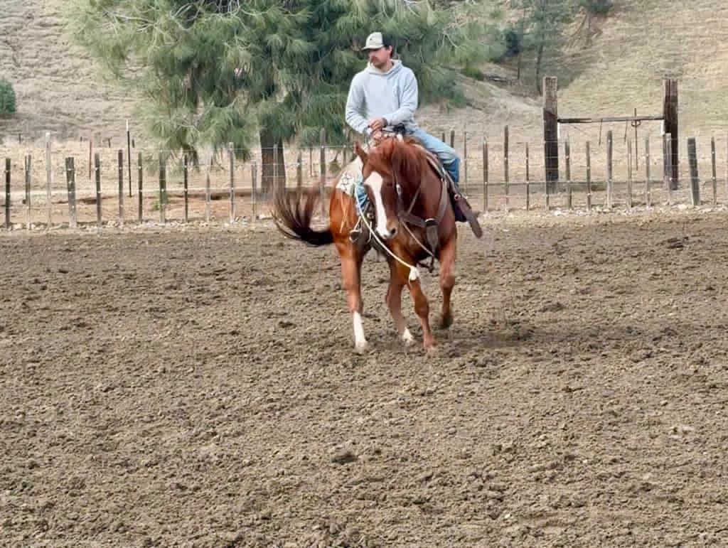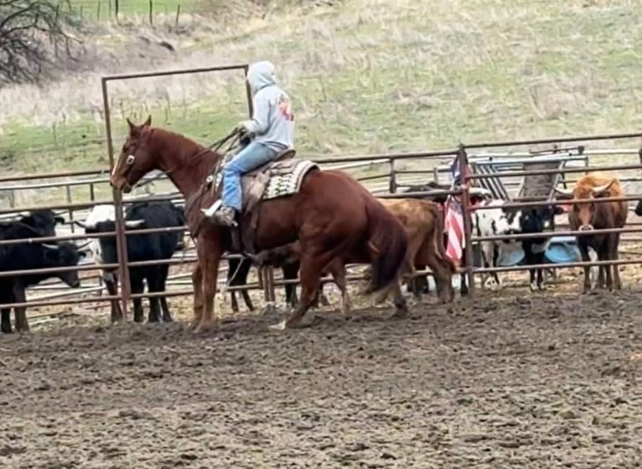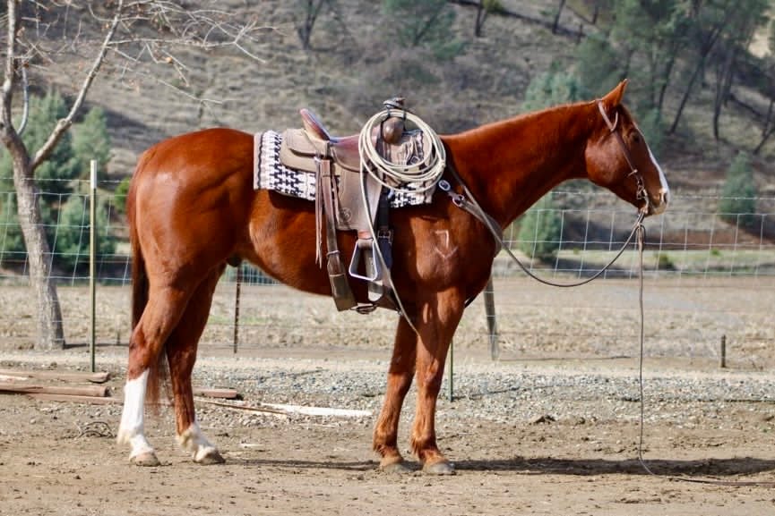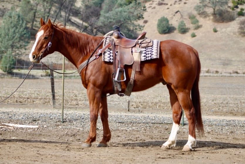 Ace is a 10-year-old, solid, 15.1-hand beautiful gelding. This horse is the definition of versatility; he is as safe and reliable as you will ever find. Not only is he broke, broke, broke, but he is also safe enough for any level rider. He is friendly, meets you at the gate, and puts his head in the halter. He will be a leisurely trail companion or a competitive ranch horse, show horse, obstacle master, or just the best horse you have ever ridden. Ace has been shown not only in ranch versatility but also in ranch horse classes, and he is as solid as you can get. He will ride like a Reiner—collected, soft, and supple. He will slide to a stop with just the shift of your seat in the saddle, will turn around on a loose rein, and back up with the touch of your heels. He will do nice and easy flying lead changes. This horse is amazing! Ace is a top-notch ranch horse that has branded, sorted, and doctored many cattle. He will hold one for you to doctor. He watches a cow and works one in and out of the arena. He has been started on the head side and would make a jam up head horse! Ace is a superstar out on any trail, where he will walk calmly and safely anywhere you want to go, be it the top of the mountain or cruising the trails. He’s done it all; he will cross switchbacks, narrow paths, overgrown landscapes, and cross the deepest water. If obstacles are your thing, this horse has been over, through, and around everything you can imagine, and he will do it bridleless. Slow, low-headed bridges, tires, flags, tarps, and bouncy balls are no match for this seasoned veteran. He has been ridden down busy streets with zero issues. He is just the most talented horse we have ever offered. Ace is a doll to be around, tacks up like a dream, stands great for the farrier, and hauls well. He stalls well and has also been out in a herd environment and does great. If you want a horse with the WOW factor, Ace is the guy for you. He will be the star of the show or make everyone jealous with his calm, trusting nature. Don’t hesitate to contact Dina at 831-537-1915 to come meet Ace at Longhorn Ranch, located in Paicines, CA.
