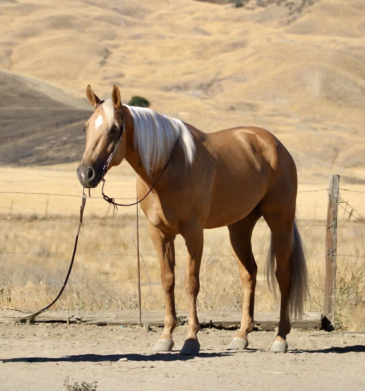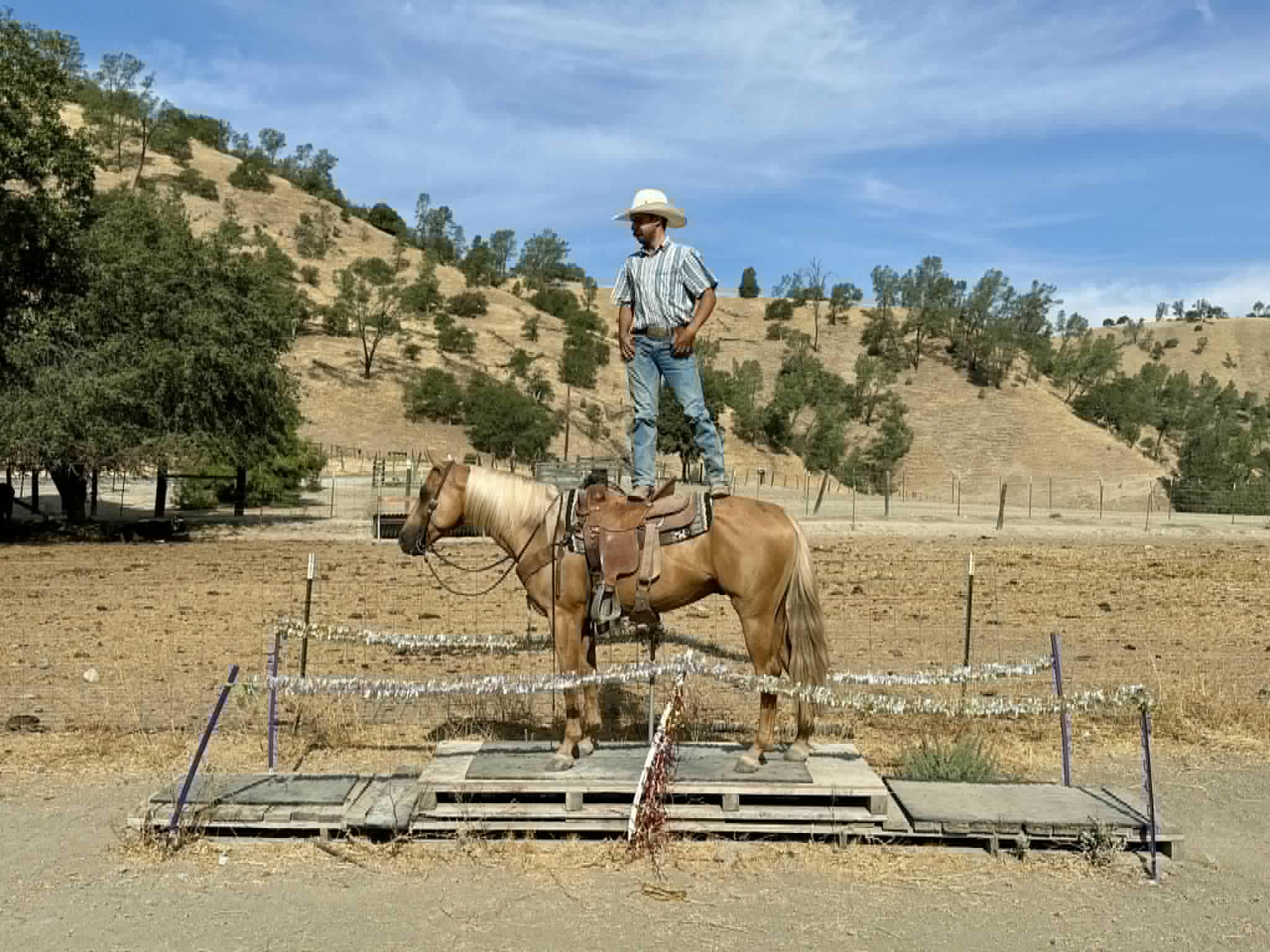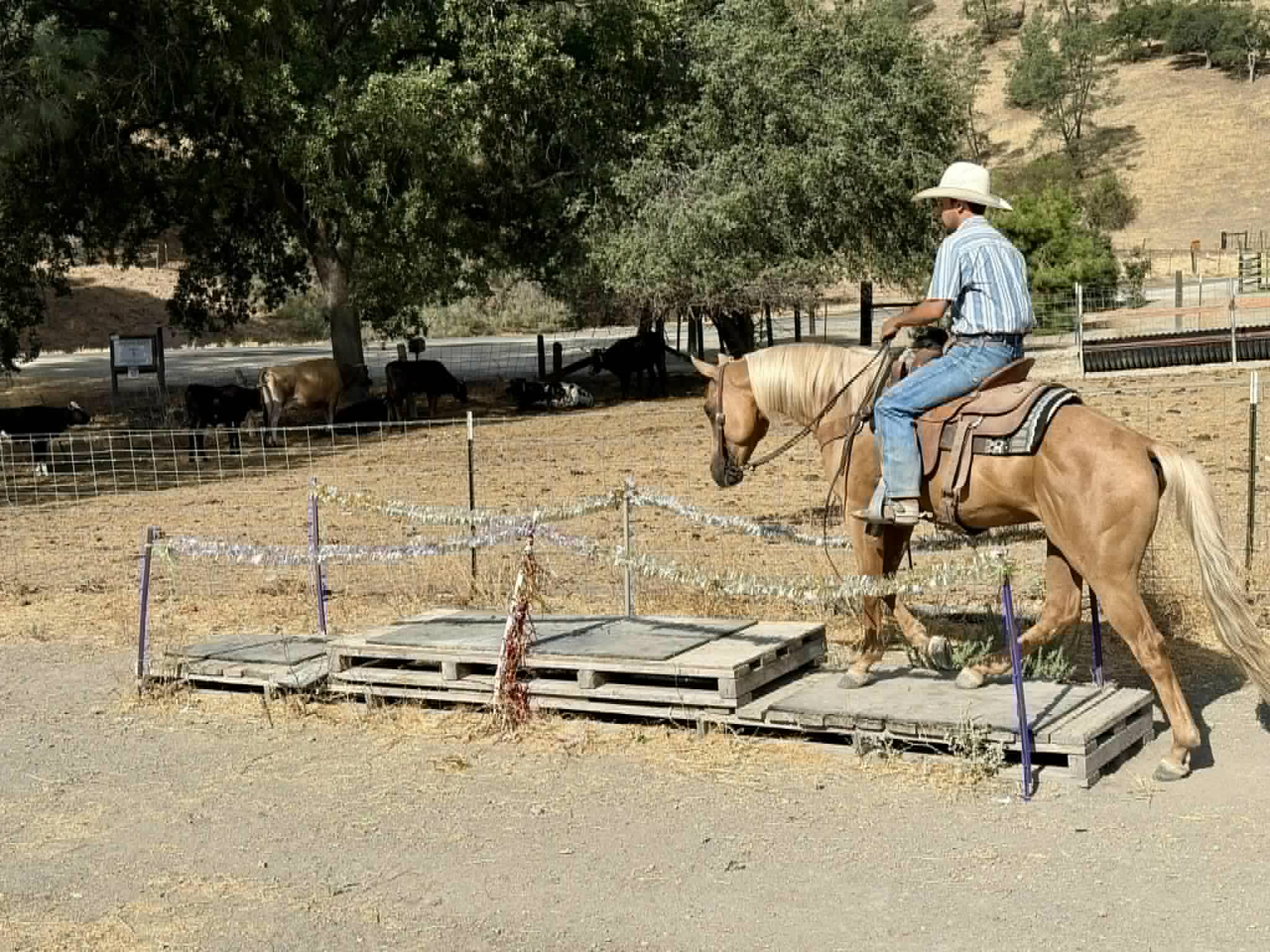 Alloy – The Golden Gentleman!!! Meet Alloy, a 6-year-old, 15 hand palomino gelding with a golden coat and a long blonde mane and tail that make him look like he was poured straight from the sun. Handsome doesn’t even begin to cover it—but Alloy isn’t just looks. He’s a broke, kind, and versatile partner with the talent of a tuned reiner and the quiet heart of a trail companion. In the arena, Alloy shows off his training. He carries himself collected, lopes off soft, and picks up both leads with ease. He’s light in the bridle, neck reins beautifully, and has a smooth, easy turnaround. Ask him for a stop and he’ll slide to a finish like a seasoned reiner—stylish, correct, and a joy to ride. Yet he never feels “too much” for his rider. Alloy can show you a fancy ride one moment, and the next, relax back into a steady, user-friendly gear that makes him suitable for anyone. On the trail, Alloy shines just as bright. Slip the reins on his neck, sit back, and let him do the thinking—he’ll go anywhere you point him. Alone or with a group, he’s the same horse every time. He’ll lead the way or follow along like a puppy dog, crossing rivers, climbing rocky hills, weaving through brush, or stepping over logs without hesitation. He’s been to obstacle courses where he’s handled car washes, tires, and teetering bridges with calm confidence, and he’s also been ridden through town traffic, around trains, semis, bicycles, and barking dogs, taking it all in stride. Alloy is no stranger to ranch work, either. He’s been used to gather cattle, check fences, and put in honest miles outside. He’s the kind of gelding you can trust for a long day’s work, then take on a leisurely trail ride the next day and know he’ll handle both with the same quiet willingness. On the ground, Alloy is a gentleman. He ties, clips, bathes, hauls, and stands for grooming or the farrier without fuss. He enjoys attention and is easy to handle, making him a barn favorite no matter where he goes. What makes Alloy truly special is his balance. He’s got enough training and style to impress any rider with his spins, slides, and buttons, but he’s just as content moseying down the trail or babysitting a rider who needs something safe and reliable. Alloy molds himself to his rider, making him both a polished partner and a peaceful companion. Located in Paicines, CA. Call Dina with Longhorn Ranch 831-537-1915 if you have any questions.