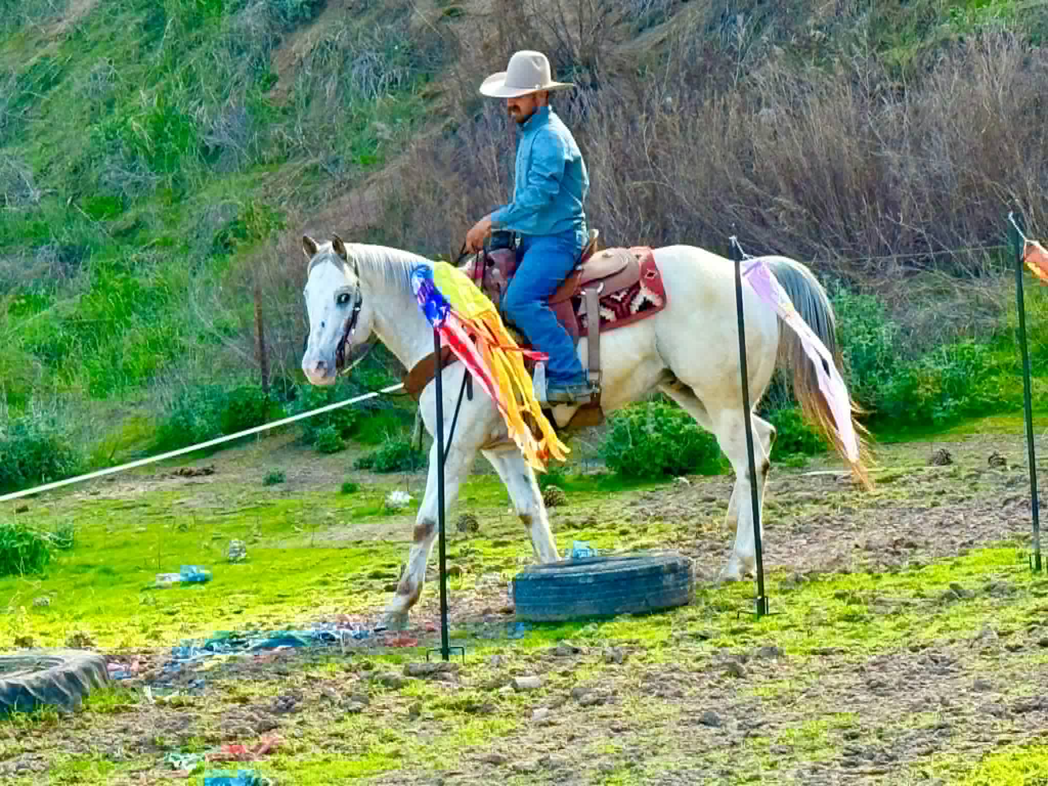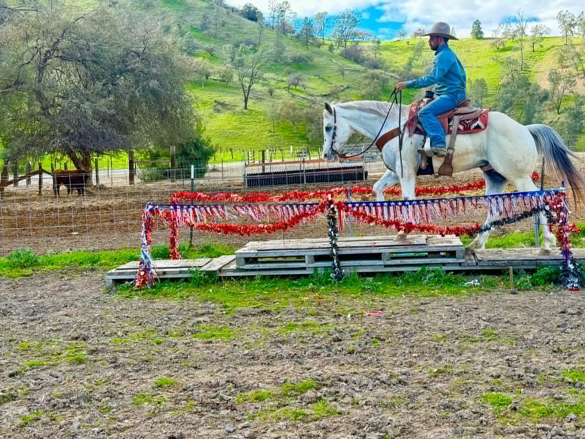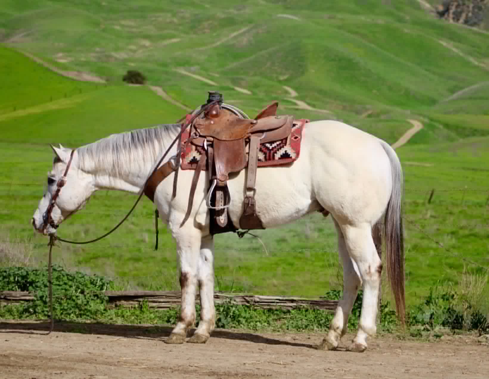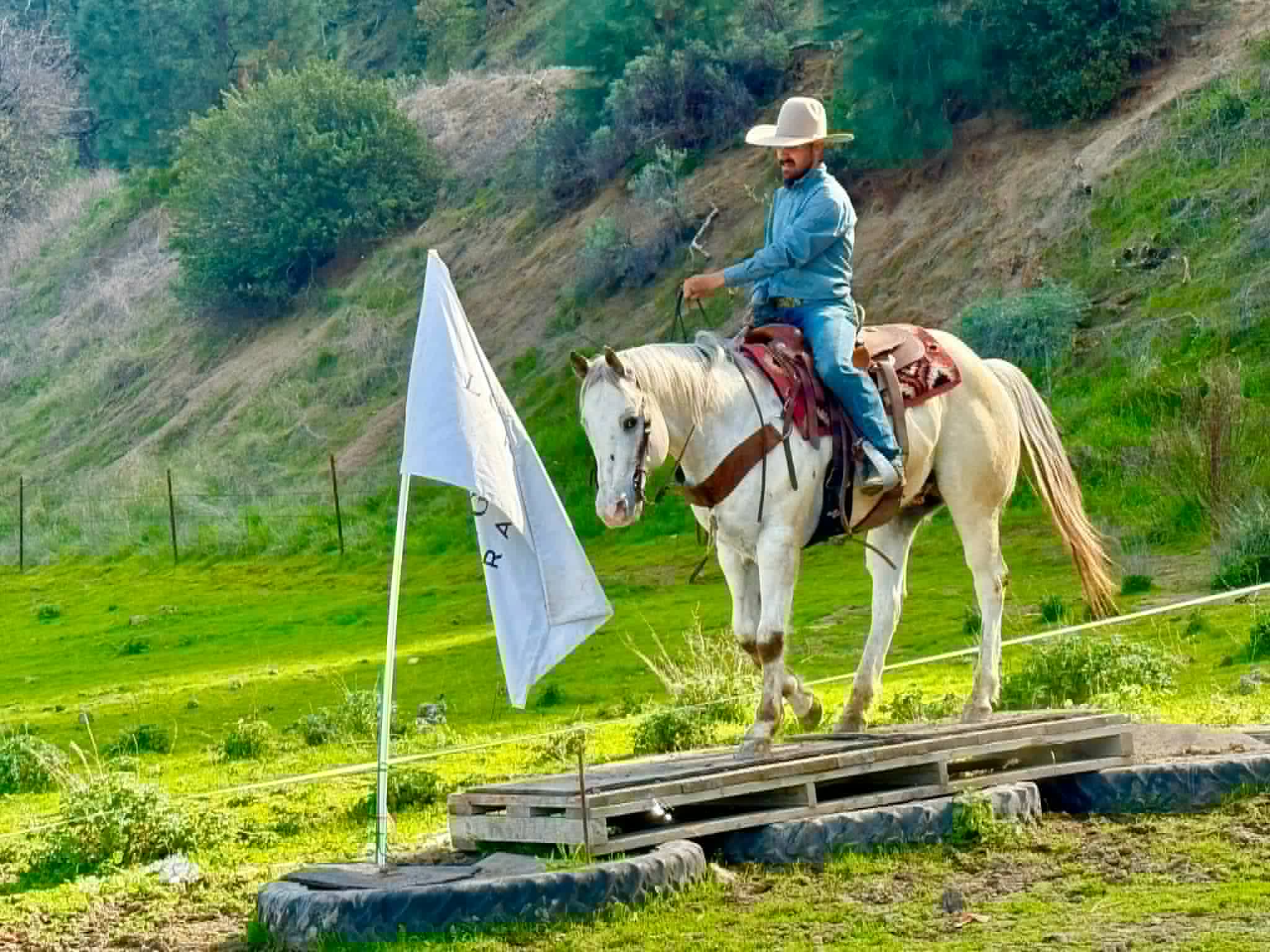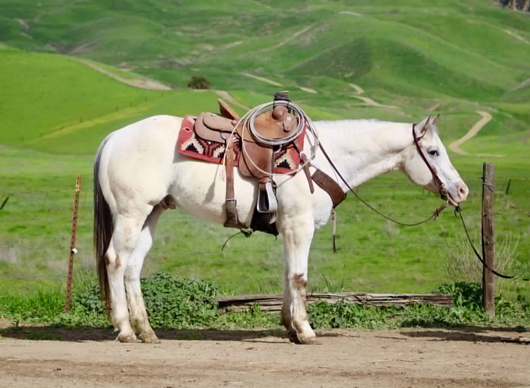 Apache has been ridden around cows, used for gathering and branding, and handles ranch work like he knows what he’s doing. Take him down the trail and he’s just as solid — water crossings, logs, brush, traffic, bicycles, flags, tarps, and bridges don’t bother him a bit. He’ll ride out alone or in a group, happy to lead, follow, or just mind his business.