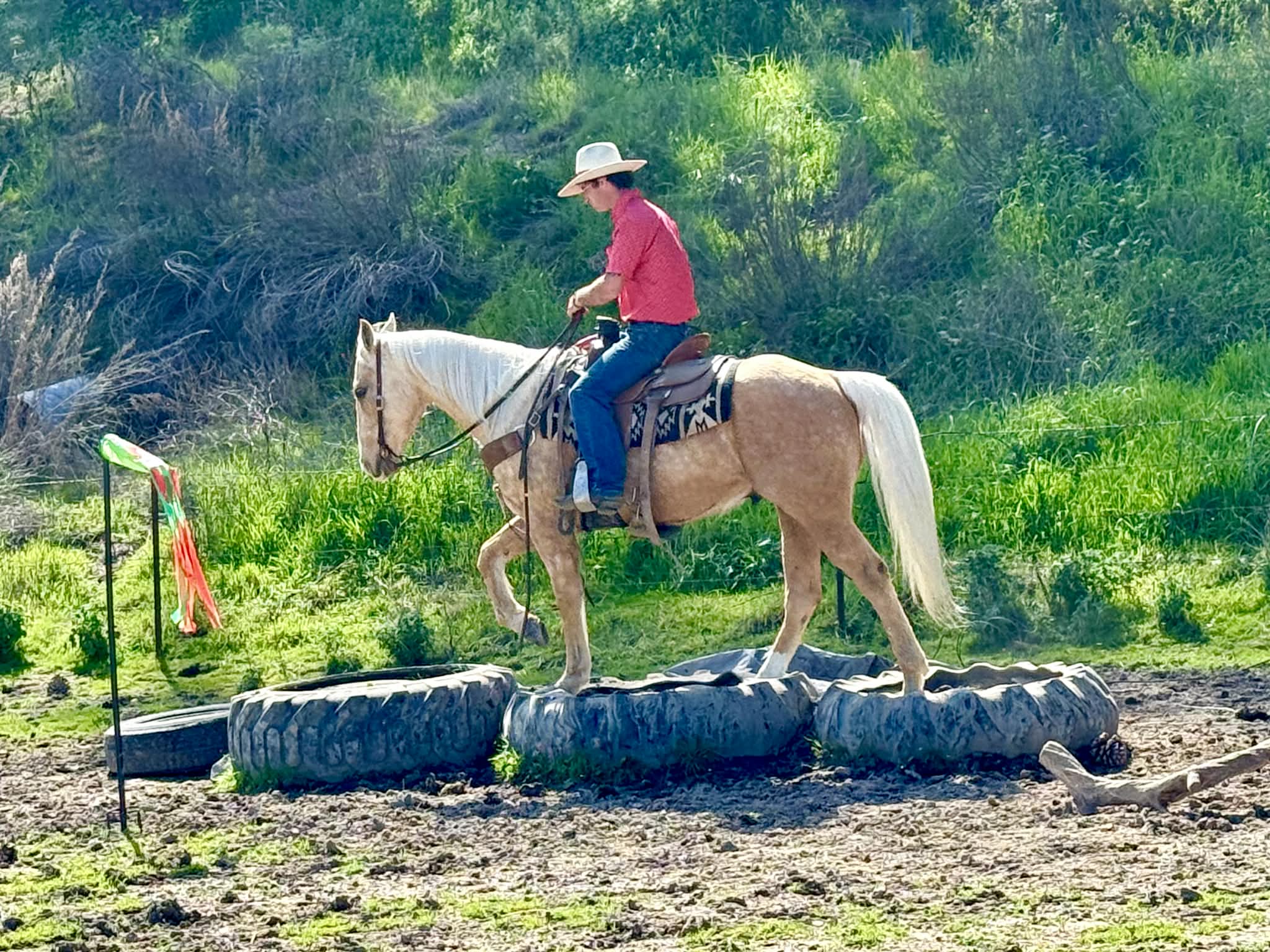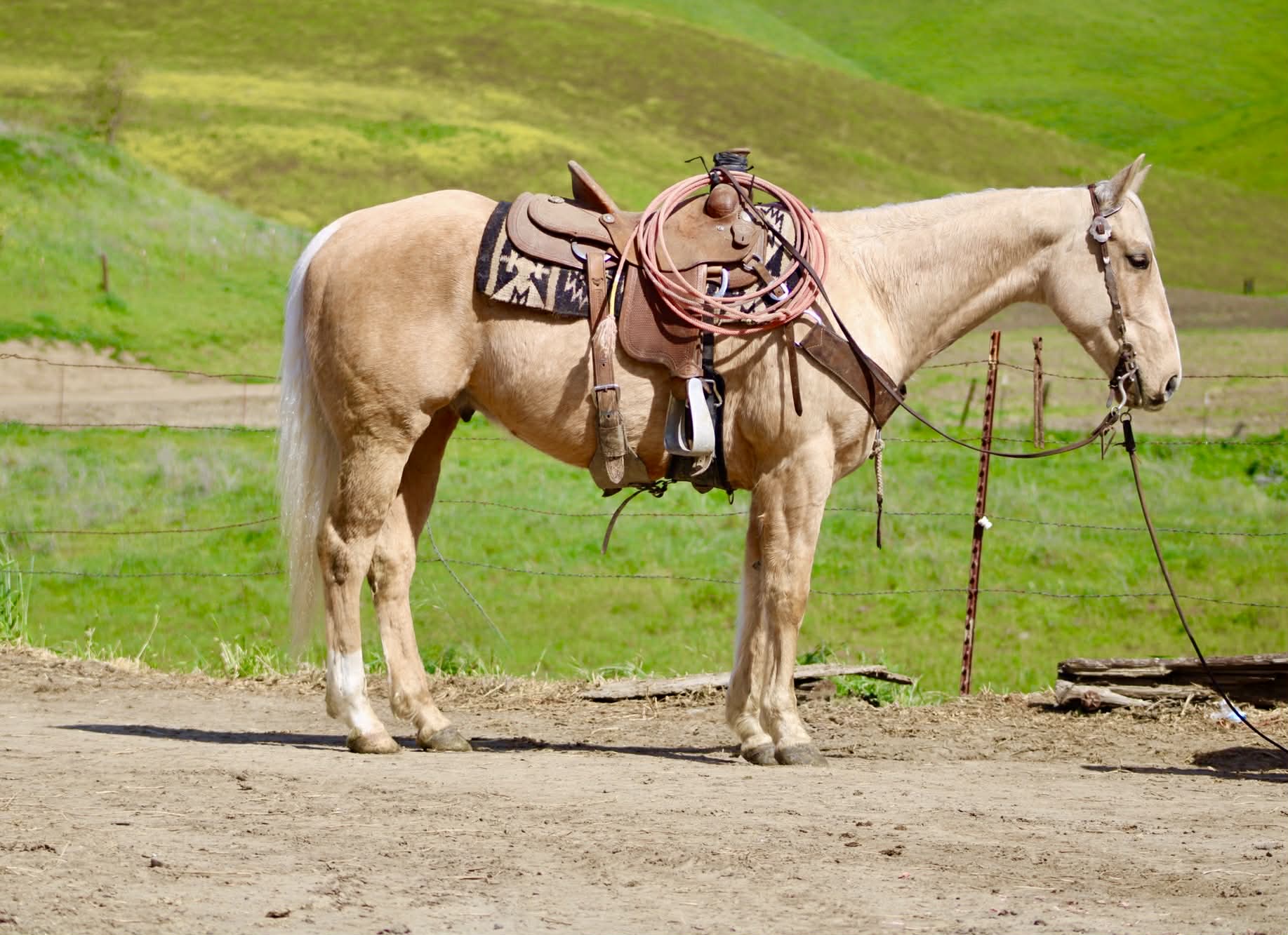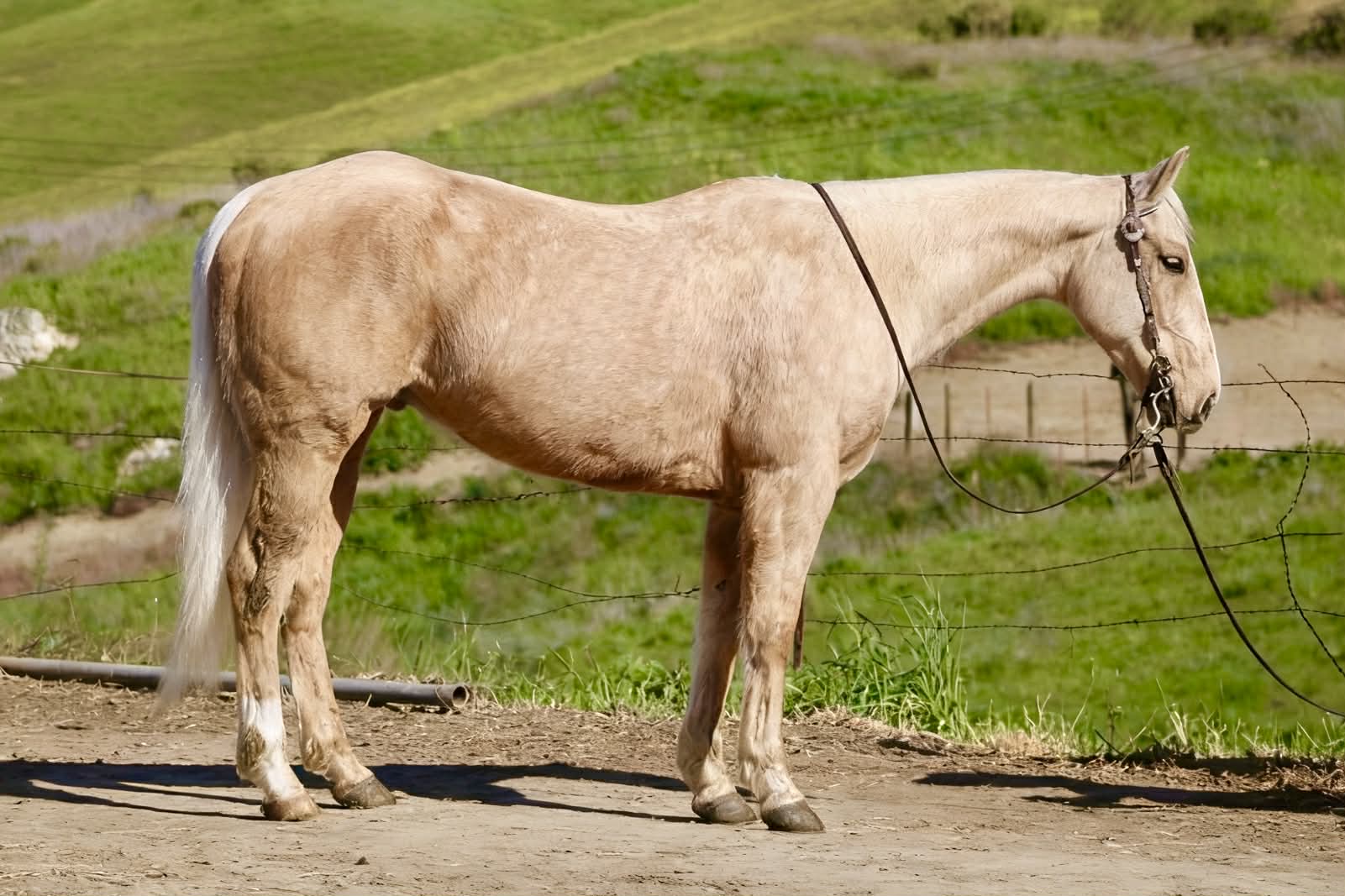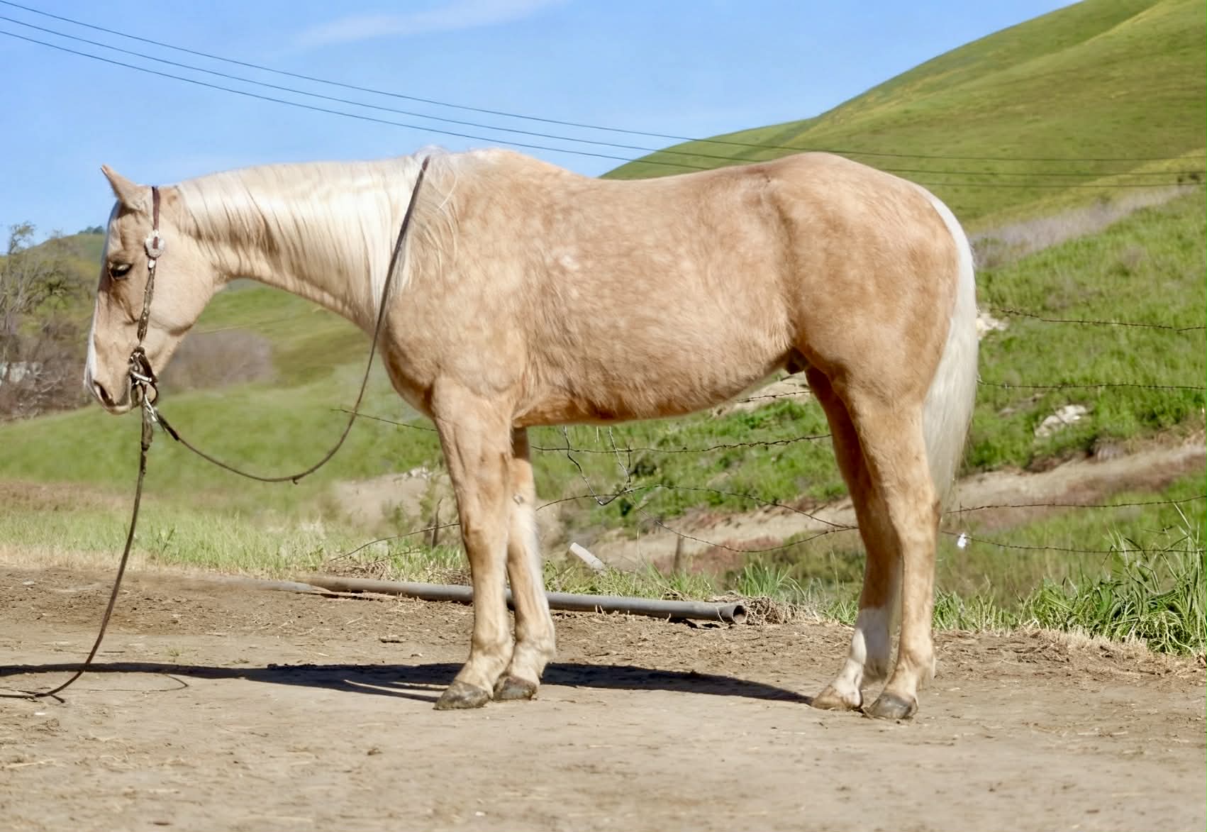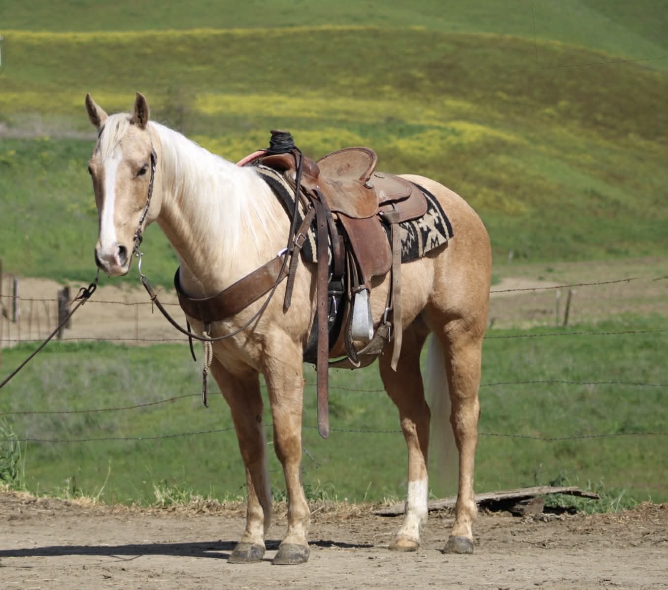 APEX Not Just Gold — Solid Gold 7-Year-Old • 14.3 Hand Palomino Gelding If reliability, versatility, and style are high on your list, Apex deserves your attention. Apex is a sharp-made palomino gelding with the kind of mind and foundation that make him an asset in any program. He is honest, capable, and rides with the confidence of a horse that has been there and done the work. On the ranch, Apex is proven. He has been used for branding, gathering, doctoring, sorting, and roping outside. He handles long days, new tasks, and changing environments with a steady, willing attitude. This is not a “pretend ranch horse” — he is the real thing. Started in the heeling, Apex is ready to season. He rates cattle naturally, stays level-headed, and stops with authority. He has the feel, timing, and foundation to confidently continue progressing in the roping pen. Outside, Apex shines. On the trail, he is confident, sure-footed, and dependable. He navigates rough terrain, crosses obstacles willingly, and handles wildlife without drama. Whether you ride solo or with a group, Apex remains steady and enjoyable. In the arena, Apex is soft, supple, and broke. He travels collected, lopes smooth circles, picks up both leads, transitions cleanly, and carries a comfortable, balanced way of going. He has a nice stop, a willing backup, and a responsive handle. Apex has been well exposed to flags, tarps, pool noodles, balls, and obstacles. Ride him down the road, haul him to new places, or put him to work — he stays consistent and dependable. Around the barn, Apex is exactly what you want. He tacks up quietly, stands patiently tied, hauls well, and maintains a calm, respectful demeanor in the stall. He is easy to handle, easy to ride, and easy to appreciate. Apex is the kind of gelding that fits where you need him: Ranch-proven Trail-solid Started in the heeling Soft and broke in the arena Obstacle-experienced Gentle and good-minded Located in Paicines, California Dina Longhorn Ranch 831-537-1915 Shipping available anywhere!