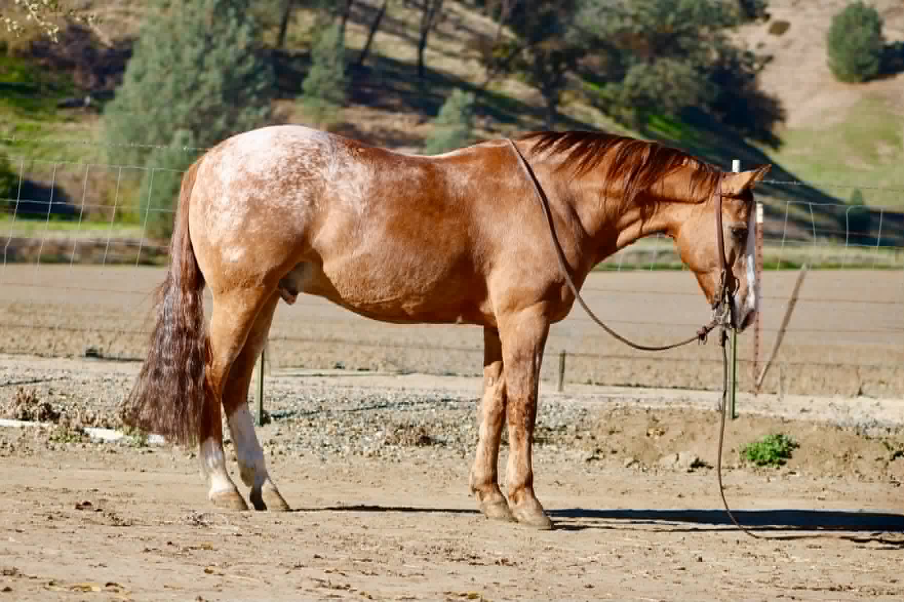 And he’s a cool ranch horse to the core. Woody has branded and worked cattle, and he loves it — the kind that stays handy, pays attention, and acts like he’s proud of his job. He’s been started on the heeling and enjoys cow work, with a willing attitude that makes him fun to ride and easy to keep improving.