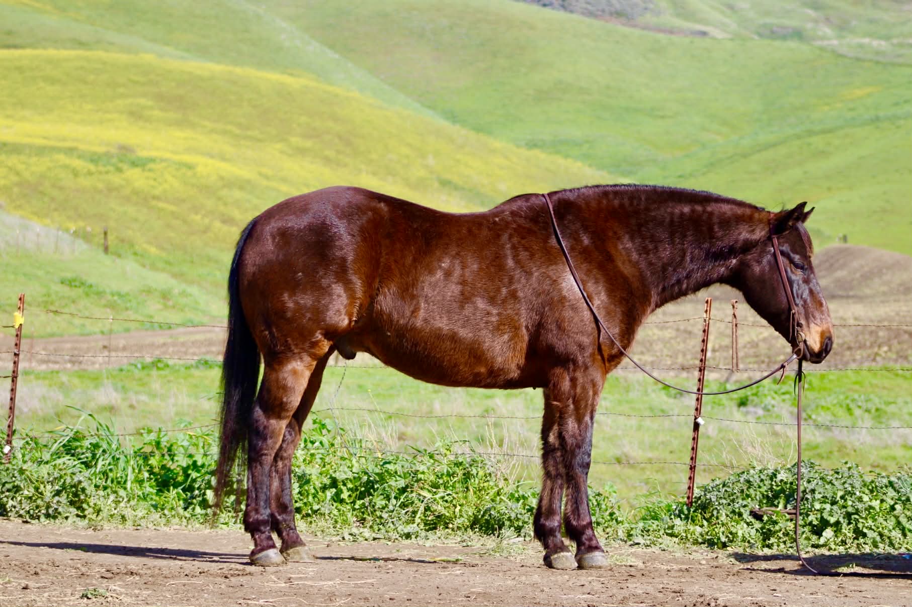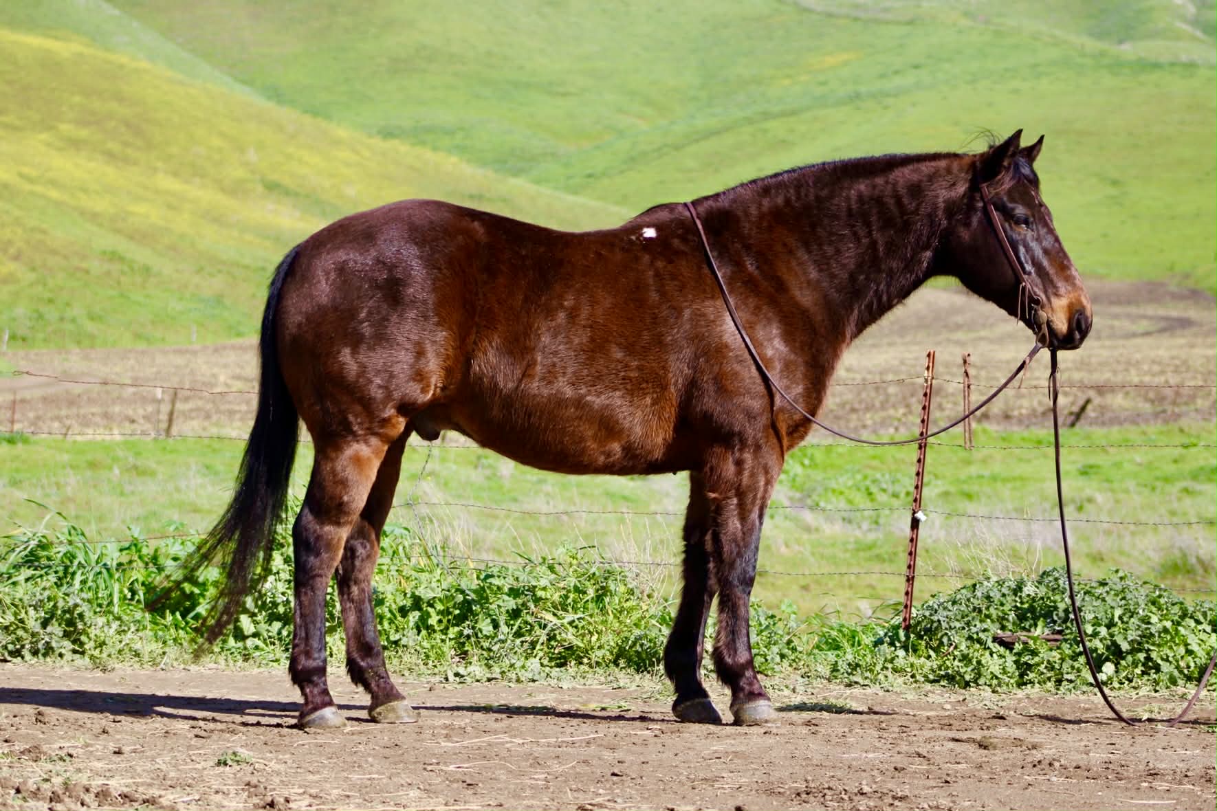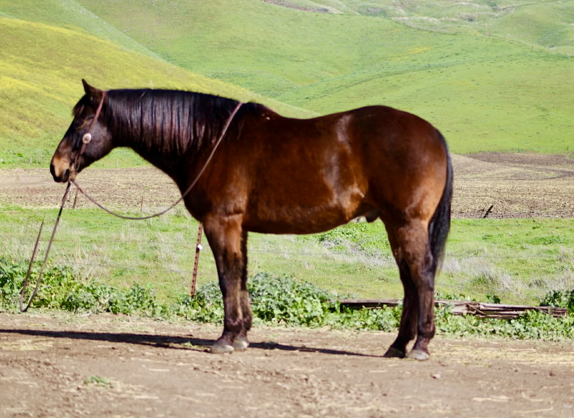 Bear is a 15.1-hand, 10-year-old and a stout 1200 pound classic old school foundation beautiful bay gelding with a steady mind and an honest, kind nature. He is a big, stout teddy-bear of a horse with a sweetheart personality — the kind you can pile the kids on, hand the reins to Grandma, and never give it a second thought. He prefers an easy, unhurried pace and stays relaxed and patient, making him a great fit for riders of all ages and experience levels. Used on the ranch his entire life and ridden extensively in state parks, Bear handles new places, new riders, and changing surroundings with ease. He is comfortable leading or following, stays quiet in a group, and goes along willingly without needing constant direction. Obstacles, flags, and traffic are nothing to him — he stays the same calm, steady horse no matter what’s going on around him. On the trail, Bear is as honest as they come. He travels low-headed and easy, goes where he’s pointed, and keeps a steady rhythm from start to finish. No rushing, no jigging, no drama — just calm, confident movement whether riding out alone or with others. In the arena, Bear is uncomplicated and enjoyable. He rides soft and collected with smooth, comfortable gaits and a dependable stop. He stays relaxed and unhurried, adjusting easily to his rider and remaining steady throughout the ride. Bear is easy to handle both in and out of the saddle. He ties, clips, and hauls quietly, stands patiently for the farrier, and does well living in a stall or turned out in a pasture. He gets along well with other horses, is not barn or buddy sour, and can sit and come right back to work like nothing changed. Bear is the kind of horse you don’t have to manage — a big, stout sweetheart you can trust to take care of his rider every step of the way. Longhorn Ranch Dina Cabral: 831-537-1915 Transportation assistance available nationwide Call or text for more information or to schedule a visit