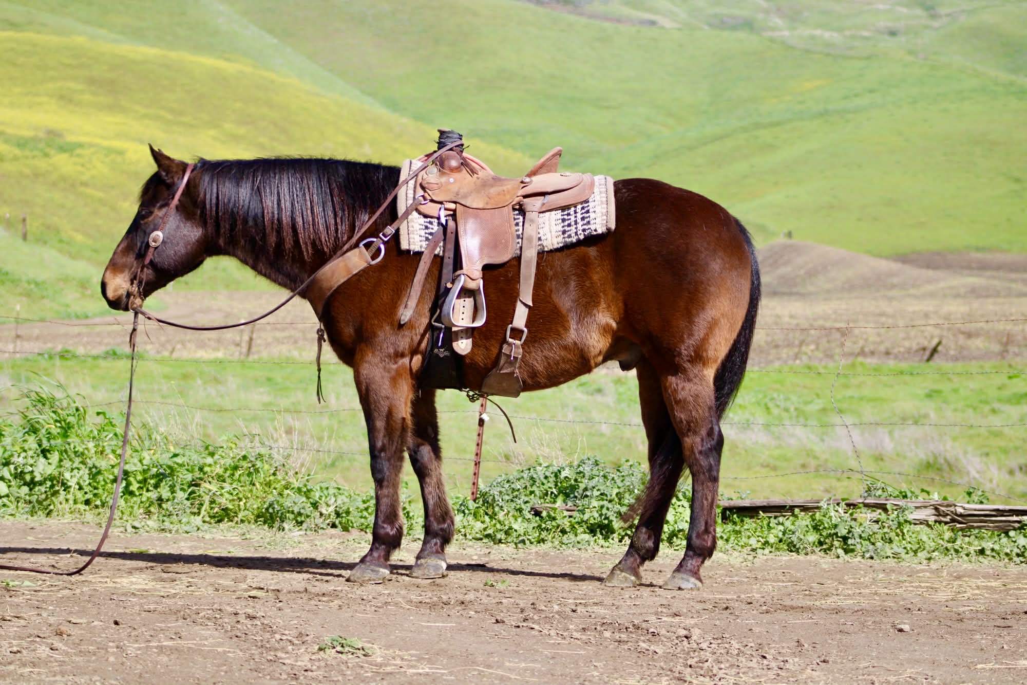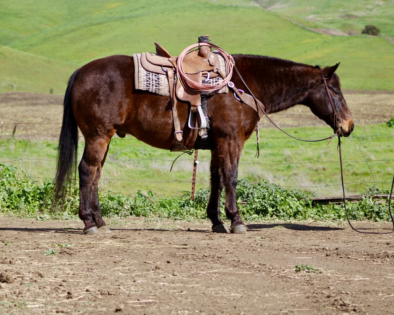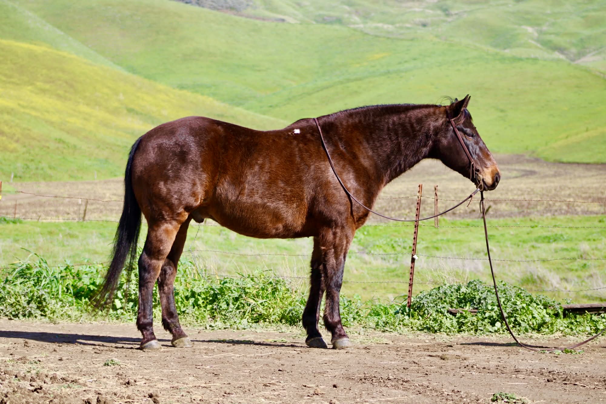 Bear is a 15.1-hand, 10-year-old and a stout 1200 pound classic old school foundation beautiful bay gelding with a steady mind and an honest, kind nature. He is a big, stout teddy-bear of a horse with a sweetheart personality — the kind you can pile the kids on, hand the reins to Grandma, and never give it a second thought. He prefers an easy, unhurried pace and stays relaxed and patient, making him a great fit for riders of all ages and experience levels. Used on the ranch his entire life and ridden extensively in state parks, Bear handles new places, new riders, and changing surroundings with ease. He is comfortable leading or following, stays quiet in a group, and goes along willingly without needing constant direction. Obstacles, flags, and traffic are nothing to him — he stays the same calm, steady horse no matter what’s going on around him. On the trail, Bear is as honest as they come. He travels low-headed and easy, goes where he’s pointed, and keeps a steady rhythm from start to finish. No rushing, no jigging, no drama — just calm, confident movement whether riding out alone or with others. In the arena, Bear is uncomplicated and enjoyable. He rides soft and collected with smooth, comfortable gaits and a dependable stop. He stays relaxed and unhurried, adjusting easily to his rider and remaining steady throughout the ride. Bear is easy to handle both in and out of the saddle. He ties, clips, and hauls quietly, stands patiently for the farrier, and does well living in a stall or turned out in a pasture. He gets along well with other horses, is not barn or buddy sour, and can sit and come right back to work like nothing changed. Bear is the kind of horse you don’t have to manage — a big, stout sweetheart you can trust to take care of his rider every step of the way. Longhorn Ranch Dina Cabral: 831-537-1915 Transportation assistance available nationwide Call or text for more information or to schedule a visit