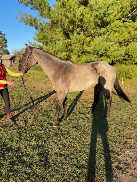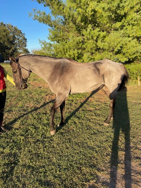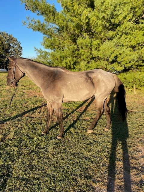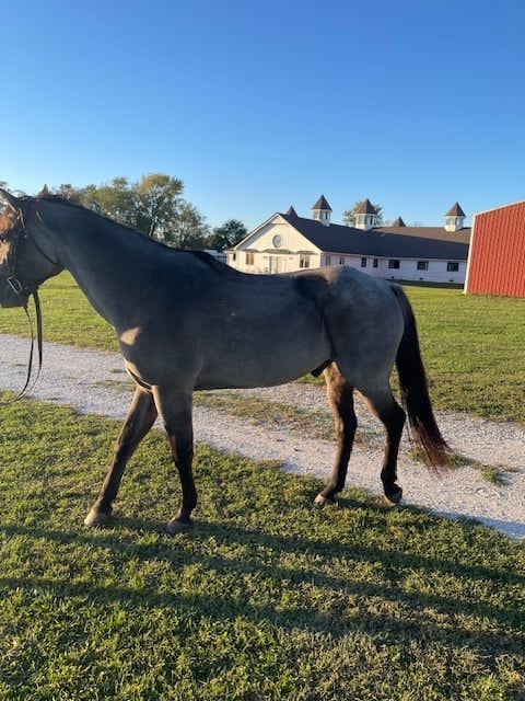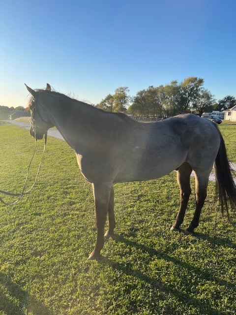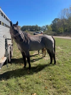 Up for grabs is Big Blue, a handsome 5-year-old true blue roan draft cross gelding standing 16 hands tall – the kind of horse that’s built tough and ready for whatever you throw at him. With his striking blue roan color and sturdy draft cross frame and fine head, he’s got the looks and the muscle to handle trails, ranch work, the show arena, or just fun easy riding. He’s as straightforward and dependable as they come. Big Blue’s got a calm, easy-going personality – he stands quietly for all the things from farrier work to tacking and vet work, and he loads real easy as shown in the video. Out on the trails, he’s steady as can be and crosses scary old bridges (see video), etc., with ease. He has a comfortable trot and a very smooth, comfortable, easy lope. Nice stop and back. He’s gentle enough for the kids, grandparents, and neighbors that you like, but also has the drive for more experienced riders looking to put miles on him. He’s built stocky and sound with good bone. Big blue is a versatile horse that’s fun to own and easy to get along with. Located exactly in the middle of the country in the Ozark mountains in Springfield, Missouri. For more info contact Scott Montgomery 417-827-3866