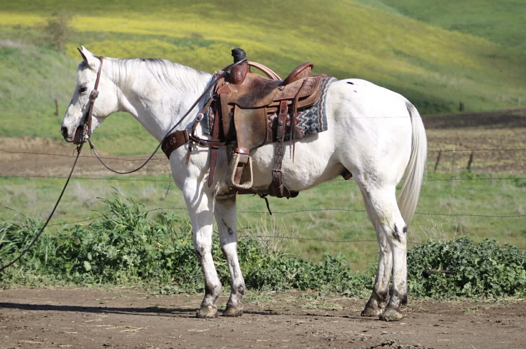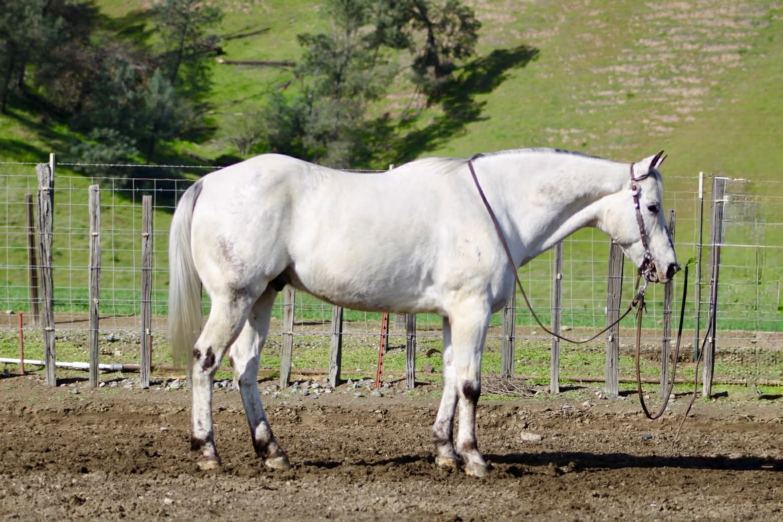 Big Chief-The one you have been searching for If you’ve been searching high and low for your dream horse but haven’t found the one yet, look no further — Big Chief is it. This handsome grey Appaloosa has it all: eye-catching looks, a gentle nature, and an exceptional mind. He’s truly the kind of horse every barn needs. Big Chief is an 10-year-old, solid 14.3 hand gelding who is extremely correct and balanced. His striking grey Appaloosa coat catches the light beautifully. He’s the kind of horse that turns heads wherever he goes, yet stays quiet and humble about it. Anyone can ride Big Chief — he has a way of making every rider look good. He’s calm, slow, and collected, with absolutely no spook. He lopes easy, picks up his leads effortlessly, and has a smooth, correct way of going. In the arena, he’s capable and stylish without ever feeling busy or demanding. Outside, Big Chief is just as impressive. He’s been ridden on trails, through rocky terrain, and while gathering cattle, confidently navigating hills, trees, and uneven ground. Wildlife doesn’t bother him, and he stays relaxed whether riding alone or in a group. Roads, traffic, and town environments are no issue — cars going by don’t faze him one bit. Big Chief has been roped on in branding pens and is started nicely out of the box. Obstacles like bridges, tires, and flags don’t concern him — he handles them quietly and willingly. He’s been hauled, paraded through town, and ridden by children, always staying calm and dependable. He handles time off well, is current on vaccinations and Coggins, and is great for the farrier and veterinarian. Big Chief is happy in a stall on rainy days and enjoys pasture turnout just as much. He’s friendly, enjoys being groomed and pampered, loves his cookies, and stands patiently for grooming and tacking. He is an absolute pleasure to be around, and we’ve enjoyed every minute with this special horse. Longhorn Ranch Dina Cabral: 831-537-1915 Located in Paicines, California Call or text to come meet Big Chief