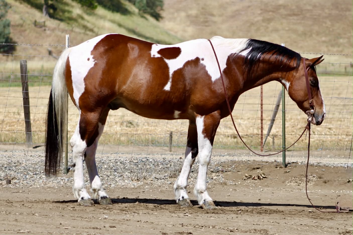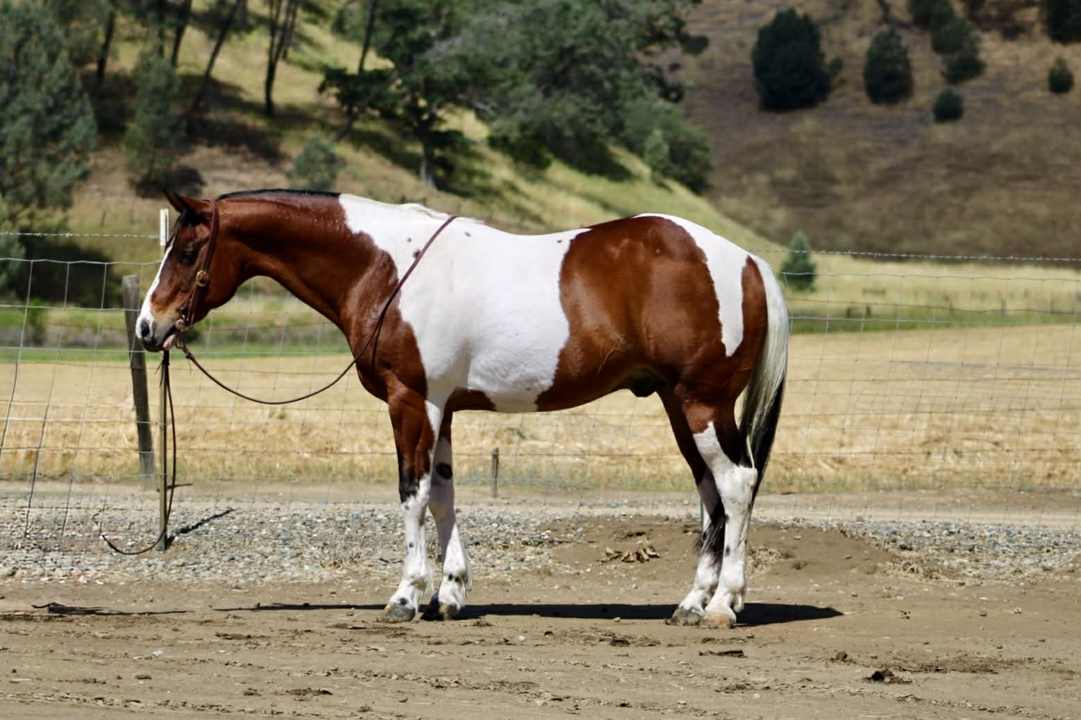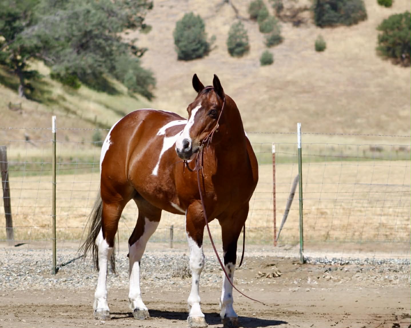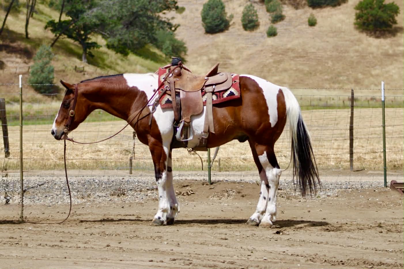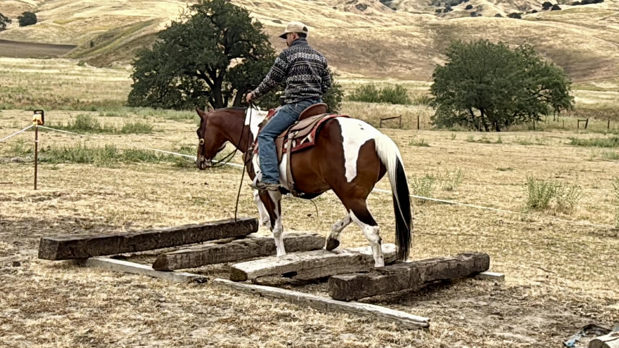Some horses you ride… and some horses just feel right from the start. Big Mac is one of those. 11 Years old and Standing just under 15.1 hands and made stout, this tri-color paint has the kind of look that gets noticed, but it’s the way he rides that really sets him apart. He’s steady, straightforward, and easy to get along with from the moment you step on. In the arena, he keeps things simple and consistent. He has a comfortable, easy pace, picks up his leads clean, and responds without needing much effort. He stops when asked, turns correct, and backs soft. Everything feels smooth and natural. Ride him with others or take him out by himself—he stays the same either way. He’s easy to keep, does well stalled or turned out, stands tied quietly, and is simple to tack up. Outside, he handles the kind of country most horses have to think about. Logs, trees, narrow trails—it doesn’t change him. He’s seen wildlife and everyday commotion and takes it in stride without getting bothered. He’s been used checking cows and moving pairs, and he’s comfortable around livestock and other animals. Obstacles like bridges, tires, and pool noodles are nothing new to him—he goes through them quiet and willing. Big Mac is a gelding you can count on to be consistent, kind, and enjoyable every time you ride him. He’s the kind that fits into your program without skipping a beat and quickly becomes one you reach for. Dina at Longhorn Ranch 831:537:1915 Paicines ca Nationwide shipping available with reputable haulers. Come see him in person or give us a call—he’s an easy one to appreciate.