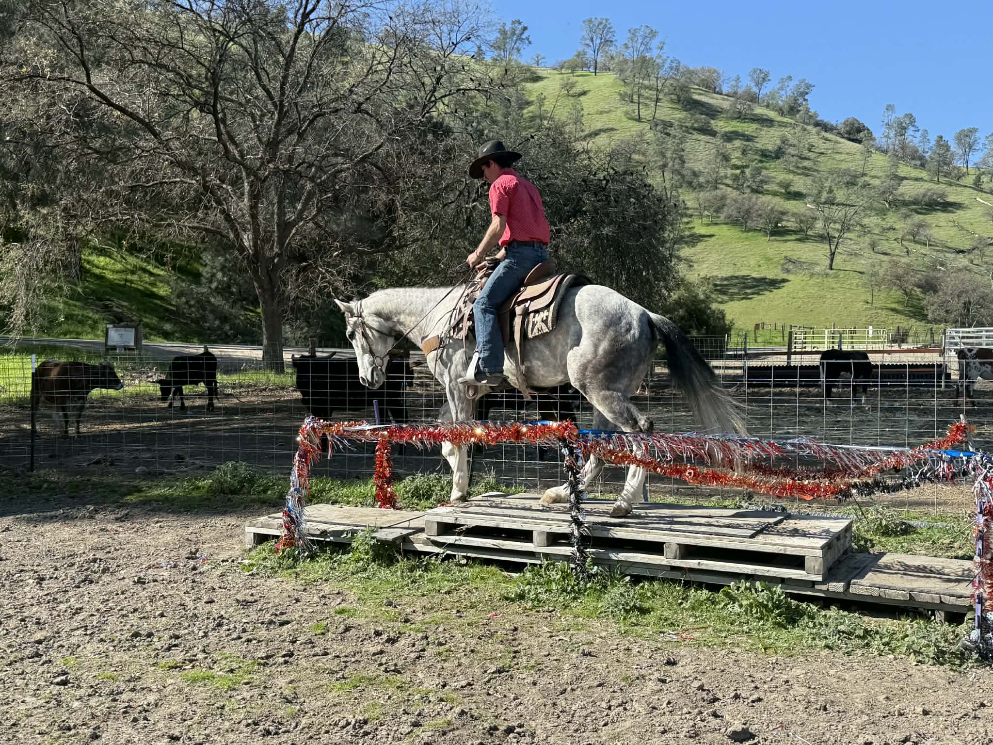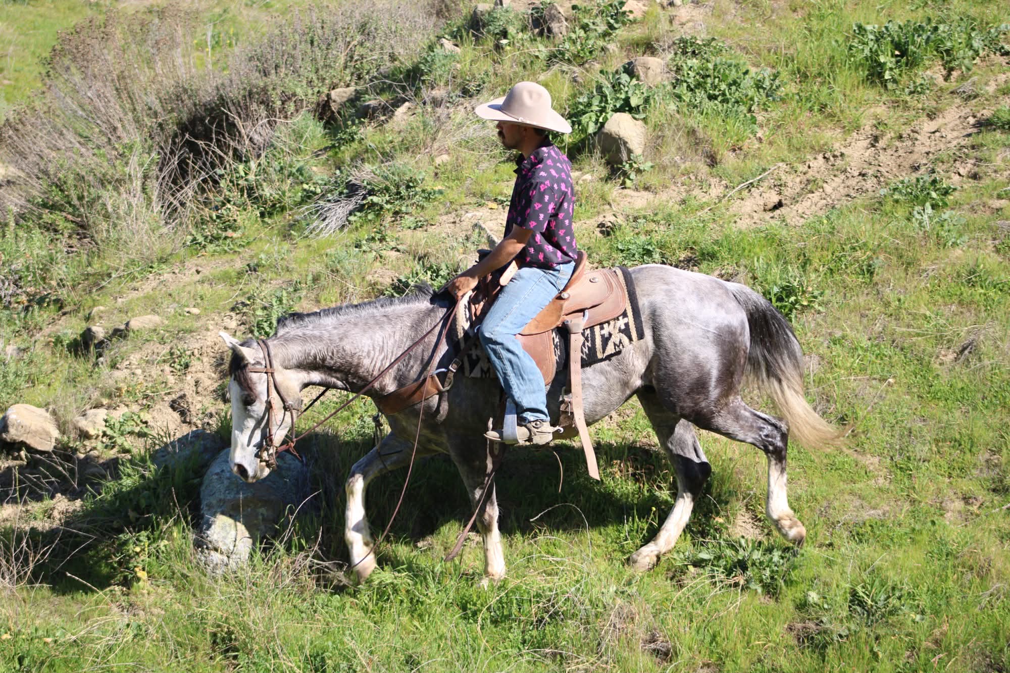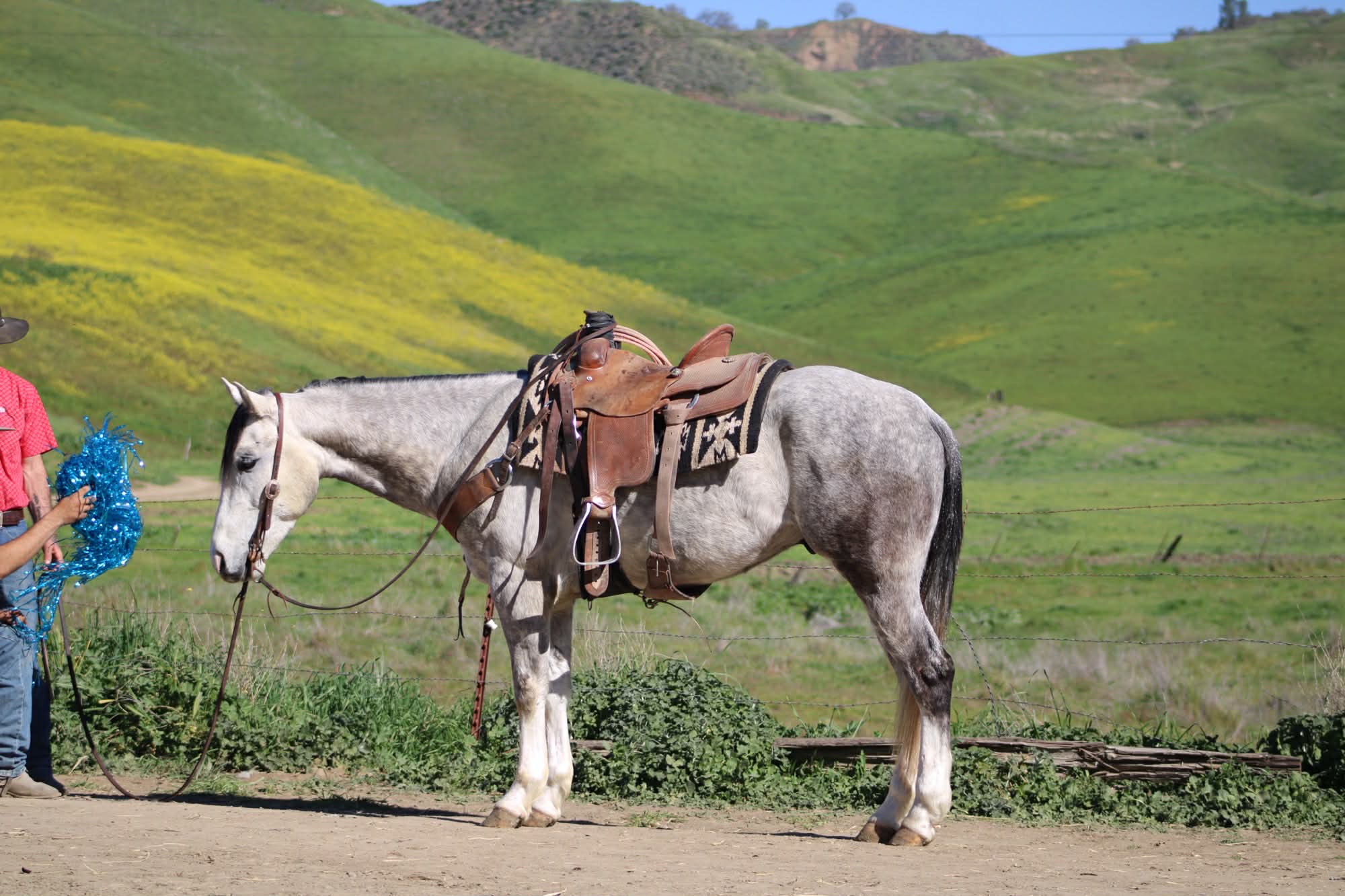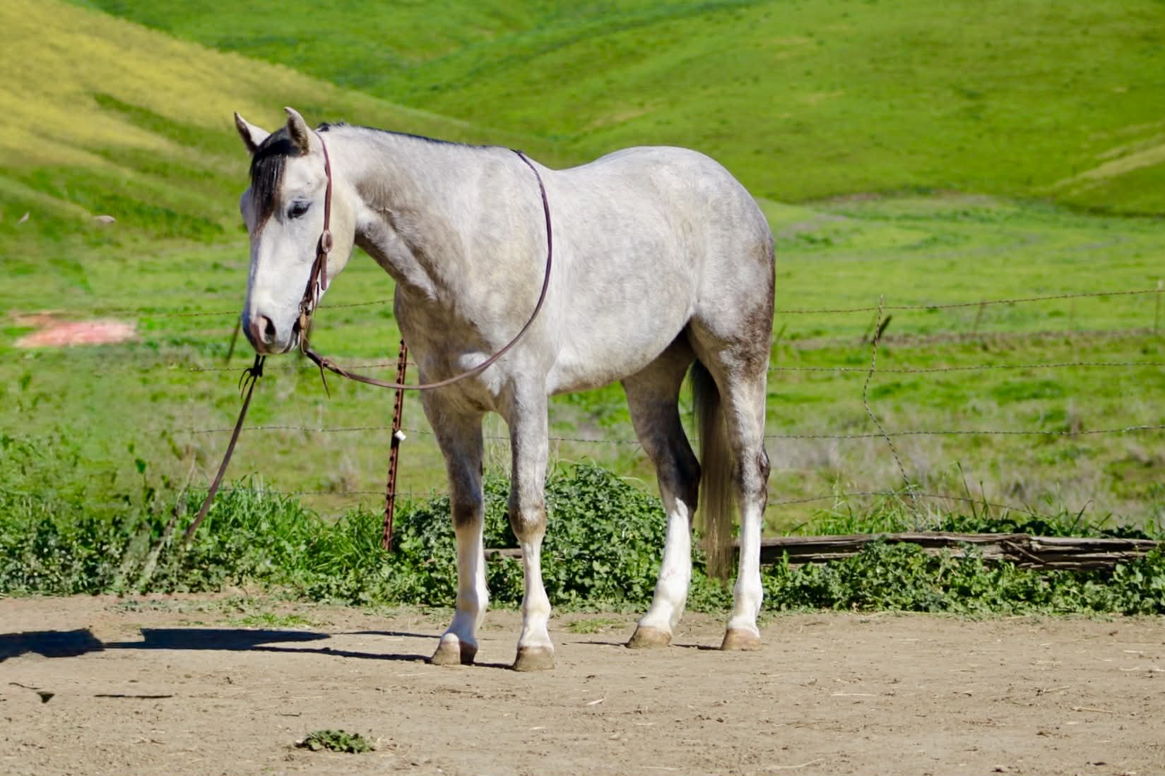 If you appreciate a young horse with a big heart, a great mind, and a foundation that’s already heading in the right direction, Booties is one you’ll want to meet. This classy grey gelding with four white socks is the kind that makes you smile every time you ride him. He is extremely friendly, people-oriented, and a true pleasure to be around both in and out of the saddle. Booties has a solid start and works off a correct, uncomplicated foundation. He walks, trots, and lopes willingly, stays relaxed, and travels in nice, balanced circles. He carries himself with confidence and composure and feels more like a seasoned horse than one his age. Out on the trail, Booties is quiet, steady, and sensible. He goes along handling new surroundings with ease. He has been exposed to obstacles, flags, and tarps, and approaches everything with a calm, willing attitude. Nothing seems to worry this gelding — no buck, no bolt, and absolutely no silliness. Booties has been used to gather cattle and shows a lot of interest in them. We have roped the sled on him, and he is taking to it nicely, showing good try and a great attitude about his work. What truly sets Booties apart is his mind. He is level-headed, honest, and always tries to do the right thing. We feel he is gentle enough for beginners and would make a great youth horse with his willing, people-pleasing attitude, while seasoned riders will enjoy him just as much. Booties is such a pleasure to be around and ride, and truly feels like a special one in the making. Whether you’re looking for a solid trail partner, a nice arena horse, or a young horse to continue developing, Booties checks all the right boxes. Longhorn Ranch Paicines, California Dina – 831-537-1915 Shipping assistance available nationwide.