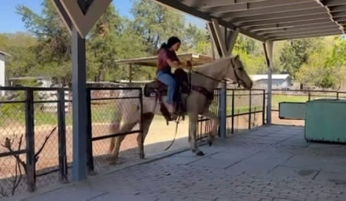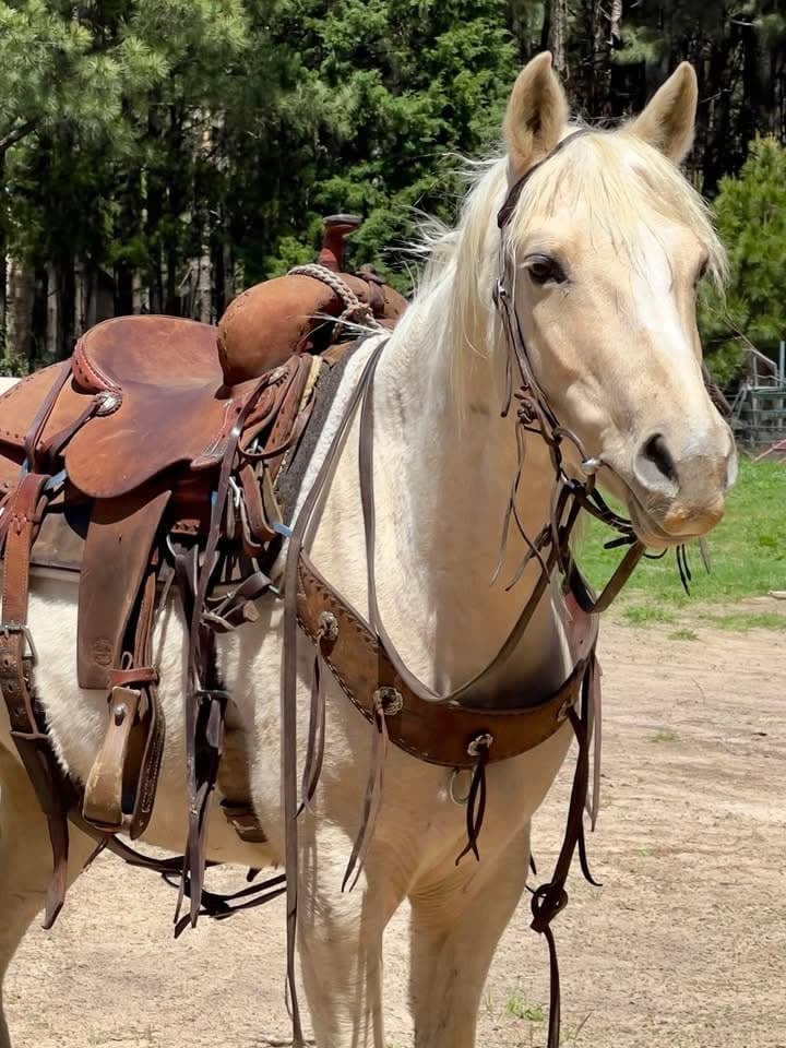 Bumble is the gentle 14.1-14.2H, 9 yr old GORGEOUS palomino gelding that everyone is looking for. He has the best “Curious George” personality and aims to please! He’s been a trail horse for an older lady the majority of his life. Bumble has been turned out for the last bit due to her health and sadly that forced his sale. He saddled right up and rode off like he’s never skipped a day! He’s very gentle, safe and more whoa than go. He’s not spooky and takes to all things on the trail with ease. Bumble is gentle in all aspects to handle and has the ability to go any direction. As he is now, he’d be the perfect trail/pleasure horse, first horse or lesson horse. He doesn’t have any “fancy” confusing buttons and would get along well with beginner hands/body cues. He also could be taken as a performance prospect if someone wanted to put some time into his ability, he sure has the build and brain to make a nice one! Bumble loads, leads, bathes and ties good. He has ZERO buck, bolt, bite, rear or take off. He would be a really easy one to hop on and enjoy! More pics and videos on his website page at northtexashorsecompany.com/bumble. Please call Blair with North Texas Horse Company for more info at 817-757-3046. We are located in Weatherford, TX and can help arrange affordable shipping to anyone!!