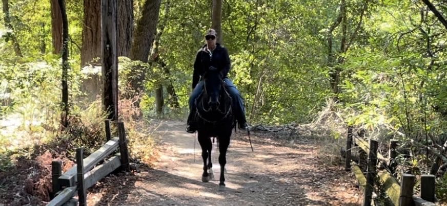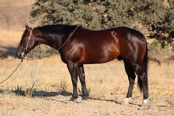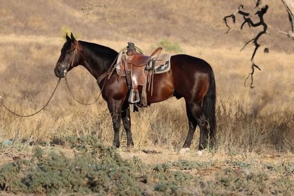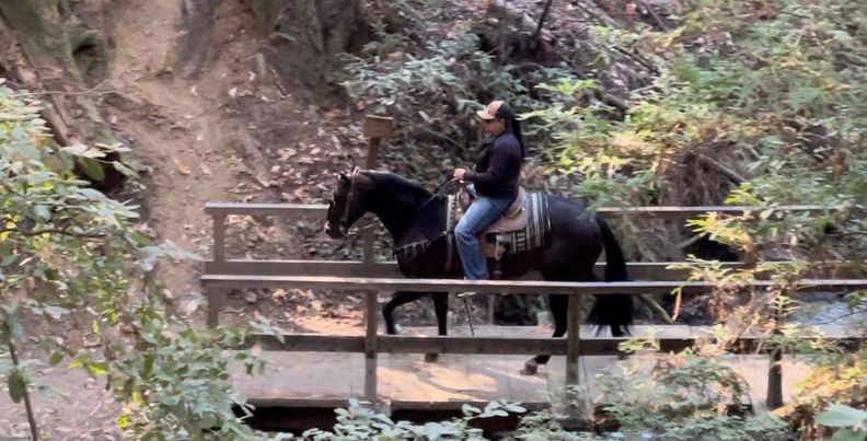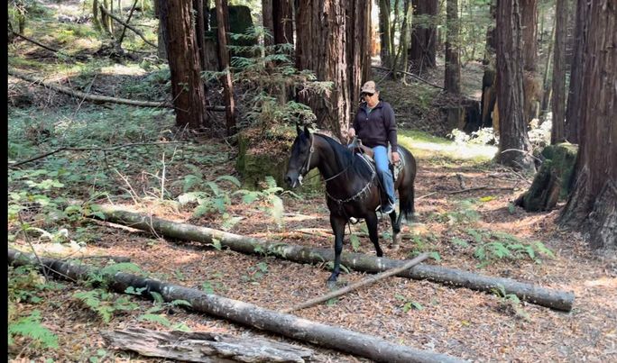 We are proud to offer Cali, This beautiful 6 year-old dark bay gelding standing 14.3 hands who embodies everything you could wish for in a horse he’s as gentle as a kitten and wonderfully easy-going! With his calm disposition, this boy can navigate tarps, blowing tape, and even car washes without batting an eye. Picture him gliding over teetering bridges and calmly handling traffic with cars, trucks, and bicycles zooming by—no problem at all! Whether you’re looking to saddle up or go bareback, Cali is your guy; he rides beautifully either way. Started out of the box on the heel side? He’s already excelling there too! This gentle soul has gathered cows during branding season in the corral and exhibits perfect smoothness in both arenas and trails. His lope is dreamy, boasting traditional transitions between gaits with impressive stops and easy backup that makes riding feel effortless. Trail riding is a breeze; he maneuvers steep hills, crosses logs effortlessly, and loves exploring state parks while discovering new places with enthusiasm. Forget about stress because when it comes to trail adventures crossing deep water or tackling treacherous terrains Cali excels at keeping riders safe above all else. You won’t find a more laid-back yet reliable companion than this stunning dark bay treasure; whether it’s outings around town or nature spots alike the experience is always pleasant and free of drama! He ties like a champ and bathes hassle-free to a true gem waiting for someone special to create lasting memories with him. Cali has been a pleasure to have and we will be sad to see him leave. We know he will make his new owners proud to own a magnificent gelding like him. Please contact Longhorn Ranch Dina 831-537-1915. Located in Paicines, CA.