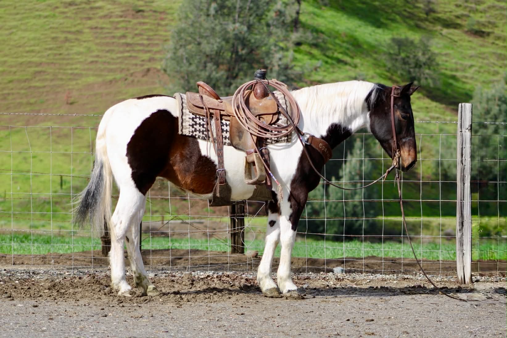 If sweetness, style, and personality could be wrapped into one very pretty package, you’d get Chanel. Chanel is a strictly gorgeous 9-year-old paint mare standing 14.3 hands, and calling her “just a doll” honestly doesn’t do her justice. She has that kind, soft expression, a beautiful coat that turns heads everywhere she goes, and the type of gentle presence that makes people fall in love fast. This mare is the definition of pretty and practical — the rare combination everyone hopes to find. Chanel has been enjoyed on the trails, used for ranch riding, and ridden down the road. She is steady, relaxed, and carries herself with that calm, confident attitude that makes every ride feel easy. The kind you can saddle up without a second thought and know you’re going to have a good day. Obstacles? She’s been there, done that. Tires, pool noodles, and the usual “let’s see what she thinks of this” challenges are all in her resume. Chanel approaches new things with curiosity instead of concern, handling it all with a quiet, willing mindset. Out on the trail, she’s sure-footed and happy to go wherever you point her. Rocks, different terrain, new places — Chanel stays honest, relaxed, and dependable. Down the road, she rides along like it’s just another stroll. In the arena, Chanel is soft, smooth, and correct through her gaits. She rides willingly, stays uncomplicated, and has that easy, forgiving feel that makes her suitable for a variety of riders. Whether you’re riding to unwind, improve your skills, or simply enjoy a beautiful mare, Chanel fits right in. And let’s talk about her personality — because it’s hard not to. Chanel is gentle, kind-minded, and an absolute pleasure to be around. She’s the type that’s easy to catch, easy to saddle, and easy to enjoy. Great for the farrier and currently barefoot . No drama, no attitude, no nonsense — just a genuinely nice mare. Pretty enough to admire, good enough to ride every day Brains, beauty, and a sweetheart disposition The kind that quietly becomes everyone’s favorite Chanel ties, hauls well, and handles everyday life like a lady. She’s the kind of mare that fits easily into a barn and makes herself right at home. If you’ve been searching for a paint mare that checks the “pretty,” “sweet,” and “fun to ride” boxes all at once, Chanel may be exactly what you’ve been waiting for. Longhorn Ranch Dina 831-537-1915 Located in Paicines, California Nationwide Shipping Available We’re happy to assist in arranging safe, reliable transportation anywhere in the United States.