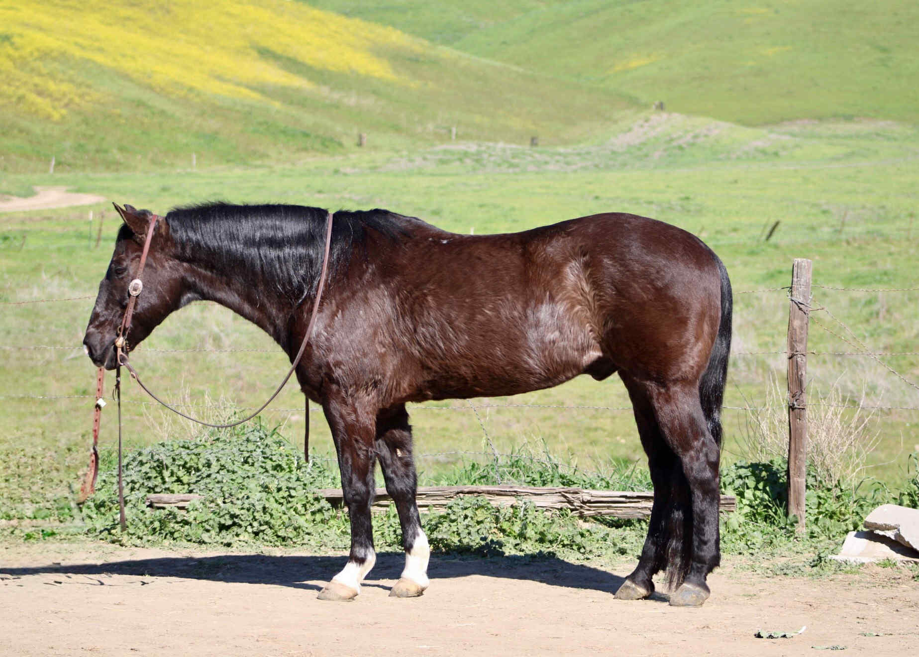 Cole is a 13-year-old Black Quarter Horse, standing 14.2HH, and he truly embodies what it means to be a safe, reliable, and gentle partner. He has an old soul and a heart of gold, making him the perfect fit for families, beginners, and experienced riders alike. From toddlers to grandparents, Cole has safely and happily carried them all. He is calm, steady, and rides at a slow, easy pace. He has no spook, bolt, or buck—just consistency and confidence every time you saddle up. Cole has been ridden down long trails, roads, and courses without a single fuss. He takes every new environment in stride and stays relaxed in every scenario. Whether you want to head out alone or ride in a group, he’s equally content and dependable. In the arena, Cole shines just as much. He has a natural low headset, neck reins beautifully, and responds willingly, making him easy and enjoyable for riders of any level. He’s soft, smooth, and a pleasure to ride. Nothing phases this horse. Cole has carried flags, tarps, and ropes draped all over him and never misses a beat. He remains calm, trusting, and level-headed no matter what you throw his way. More than anything, Cole is kind, gentle, and honest. He’s the kind of horse you look forward to riding every day—the one you never worry about. If you’re searching for a true babysitter horse, a confidence builder, or a partner you can rely on every single time, Cole checks every box. If you want a horse you can trust with your family and cherish for years to come, Cole is waiting for you. He is located in Bitterwater, CA. For more info contact Cheyenne at 8315378746.