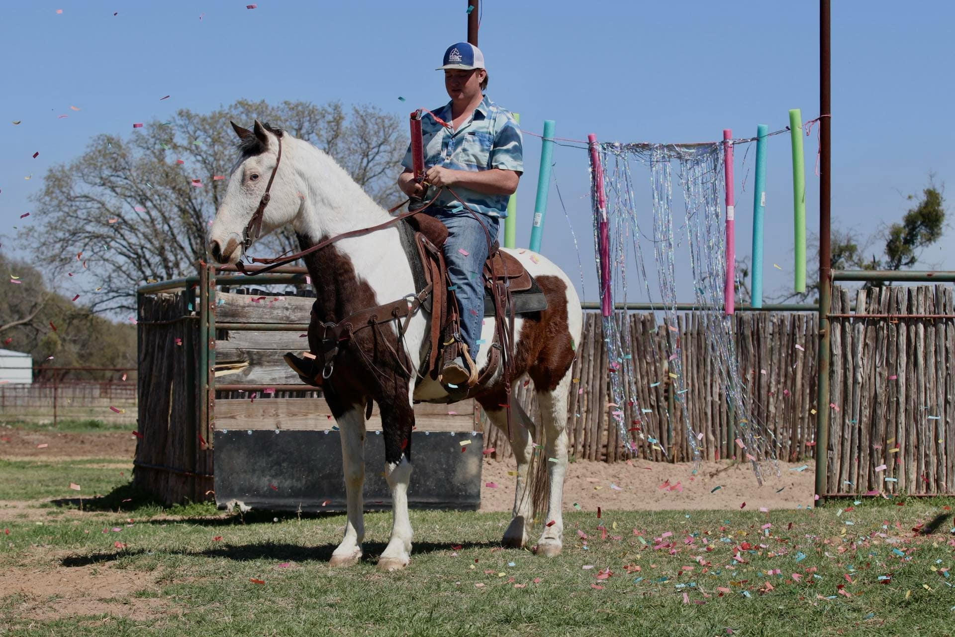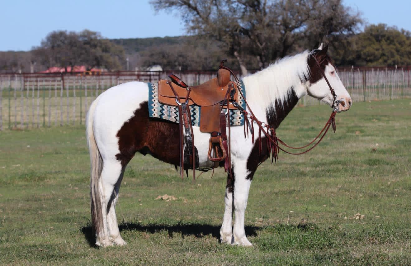 Crumpet has a heart of gold and is as quiet one could hope to find. Crumpy always wants to be your best friend, and is sucker for love and attention. He is a grade 12 year old gelding standing at 14.3hh tall. Crumpet is quiet to be around, good with his feet, and a gentleman on the ground. He’s been exposed to almost anything you can imagine including guns, whips, tarps, flags, ropes, or whatever else might look strange to a horse. He wants to ride slow, and relaxed. He picks up both leads nicely and lopes off with ease. Above all Crumpet really shines, and excels being out on the trails and in the arena. He’s calm, steady, and quiet handling himself in rough country, maneuvering with ease over bridges, bogs, crossing water, etc… Crump has been ridden by all levels of riders, and is forgiving of mistakes made by those who are new, helping to build their confidence. He would really go far in trail versatility classes or would help you to capture the eyes emotions carrying a flag. Whether you’re on the ranch, and in the arena, everyone notices him by his looks, and quiet demeanor. Crumpet is a seasoned heel horse and would be great for someone to learn on! Crumpet is located in Lipan, TX. We are more than willing to help with all shipping needs, we ship all over the country as well as Hawaii and Canada. For more information please call Makenna Hartzell 817-659-3778