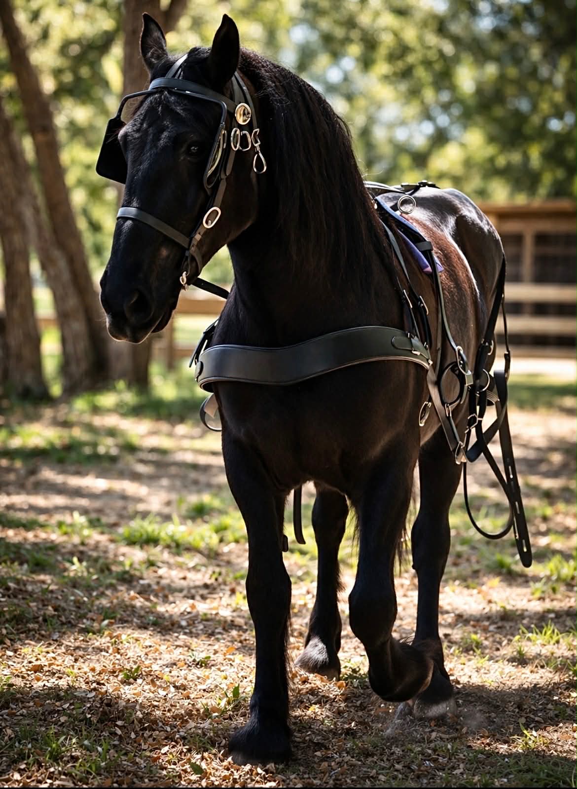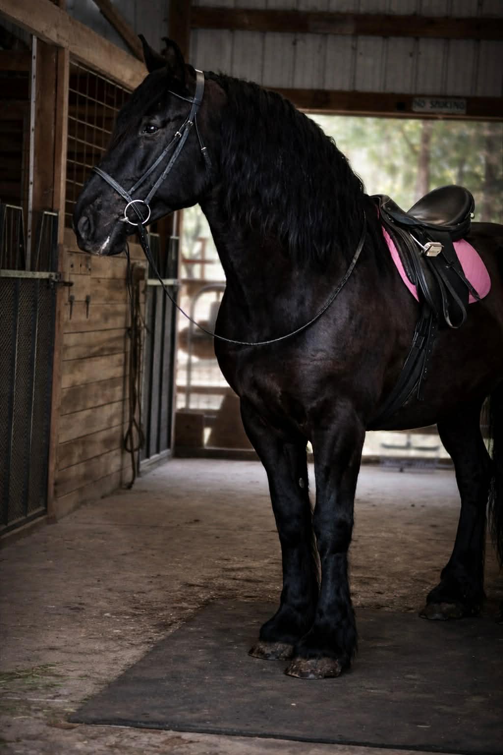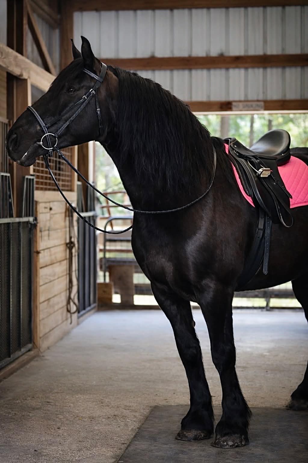 Diva is a registered 13 year old black Percheron mare standing 16.1 hands. Diva is a gentle, sweet girl that loves people and loves to please. Diva has been all over driving and riding . She has done sleigh rides up north in the winter along with parades and weddings. She has been ridden on trails, hunter paces, fox hunts and has done some low level dressage. She has done weddings and events as well. She has even popped over some small jumps on the hunter paces and fox hunts. She is sound: no maintenance, no lumps or bumps, no side bone, no cpl, no scratches. She stands great for the farrier, bathes, clipping and trailering . She respects all fencing . She has had 2 foals and is a great mom no complications.