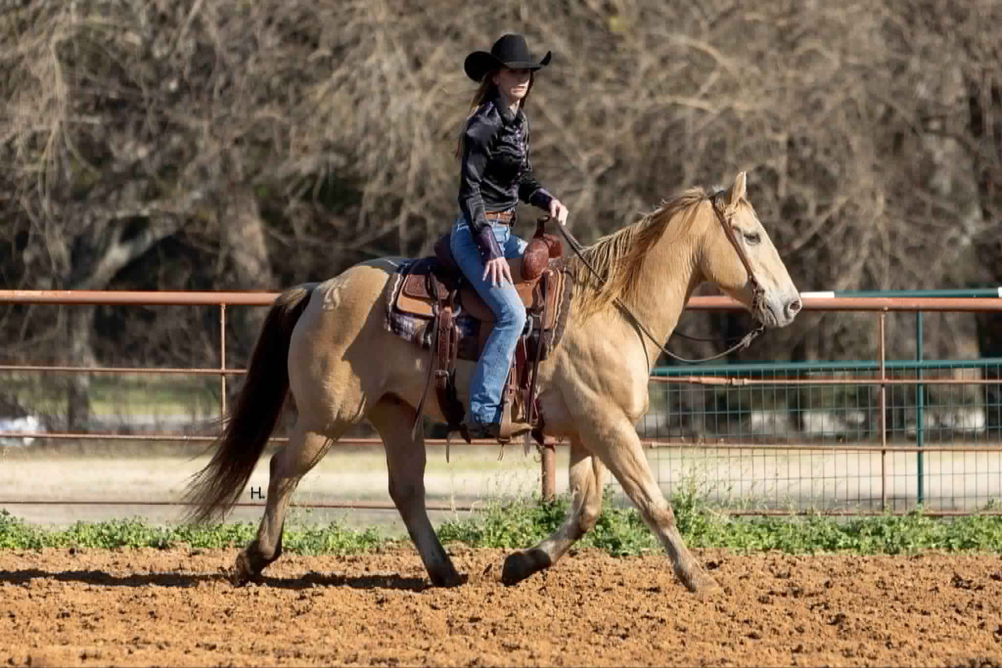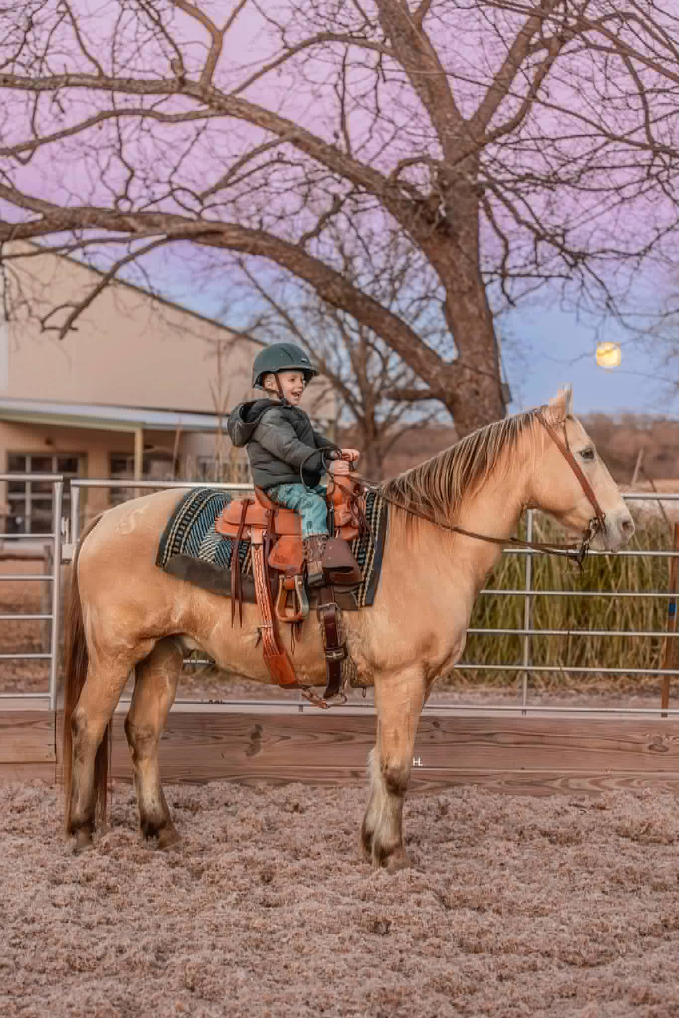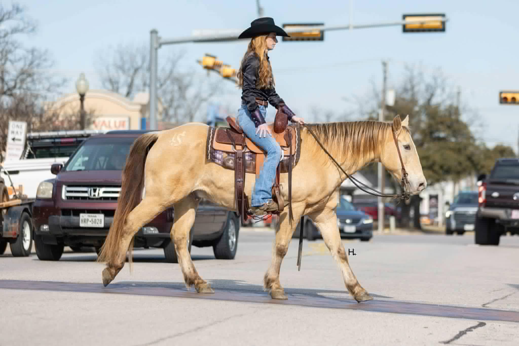 Let’s start the new year off with some champagne that’s safe and legal for everyone to enjoy and can be enjoyed on a budget! If you’re needing as close to an insurance policy in horse form as you can get, this is the guy. Dorado is 16yr old, 14.3hh, amber champagne gelding that’s the type you can throw anyone on and know they will be safe. From the trails to the arena he is unflappable, straightforward to ride, and will always be one of if not the most unique looking horse in the group. He’s the type that you can’t wipe the smile off your face when you’re riding him because he’s that fun. Dorado came across the southern border in 2018 and has been with the same family since here in Texas. He’s been used for basic ranch work (gathering/sorting/pasture roping) from south Texas to east Texas, used up at the sale barns, been trail rode everywhere in between, and has been the mount for the grandkids to ride around the ranch. Out on the ranch, Dorado makes even a long day enjoyable and go by quickly with his ground covering walk, his smooth trot, and his rocking chair type lope. He’s easy to use in the pens to sort some off and won’t object to the extra work if one needs roped. In the arena, Dorado won’t be the fanciest horse there but does everything with ease. He’s one hand broke, comes to a stop easily, will step right into a lope, picks up the correct leads, and won’t go faster than what’s asked of him. On the trails he’s the point and shoot type. There is nothing this gelding won’t cross and he has no problem making his own trail if you feel like going off the beaten path. Dorado is great with traffic, crosses all types of bridges, handles uneven terrain well, crosses water, and is pedestrian friendly. You can ride him bareback in a halter with no problems or ride him in any bit you want, ride him when it’s sunny and 75° or ride him in the freezing sleet and Dorado is going to be the exact same for it all. Our 3yr old little boy, who isn’t a super confident kiddo, has ridden Dorado a ton and Dorado has never made us question our boy’s safety no matter the conditions or where Stetson has ridden him at; whether it’s just above freezing with 20mph wind gusts, riding out in the open, or riding in a brand new location. Dorado has always been patient with Stetson and has always taken care of him. When it comes to how he handles time off, we know for a fact you can leave Dorado off for 2yrs, saddle him up, and he will ride off like he’s been being ridden everyday as the first time we rode him he had been off that long for no other reason than his owner wasn’t able to ride. Dorado is gentle to be around, stands tied like a gentleman for everything, will ground tie for the farrier, doesn’t object if you want to ride him double with a friend, will let you crawl all over, around, and under him without so much as shifting his weight, and loads right up in a trailer like one should. He’s as tried and true as they get in our opinion. Dorado has no bumps or scars on any legs, passed his recent health and lameness exam with flying colors, has never required any type of maintenance care, and has had no previous health or lameness issues. He has a ton of bone with fantastic, hard feet that he’s always been barefoot on with no issues no matter the terrain as well. Dorado is UTD on all care from teeth to feet and has a recent health exam on file that can be viewed on his page on our website. This is a nice, solid gelding ready to give someone confidence in the saddle or just be the horse you can always rely on. We invite you to come see and try Dorado at our place in Weatherford, Tx. PPEs are always welcome and we can help set up hauling to wherever you call home. For any questions and to talk about if Dorado is right for you, you can contact H Spur Performance & Versatility Horses Sarah 817-366-6123. To see more pictures, nearly an hour’s worth of videos, and to view Dorado’s Health Exam you can visit his page on our website at www.hspurhorses.com/dorado