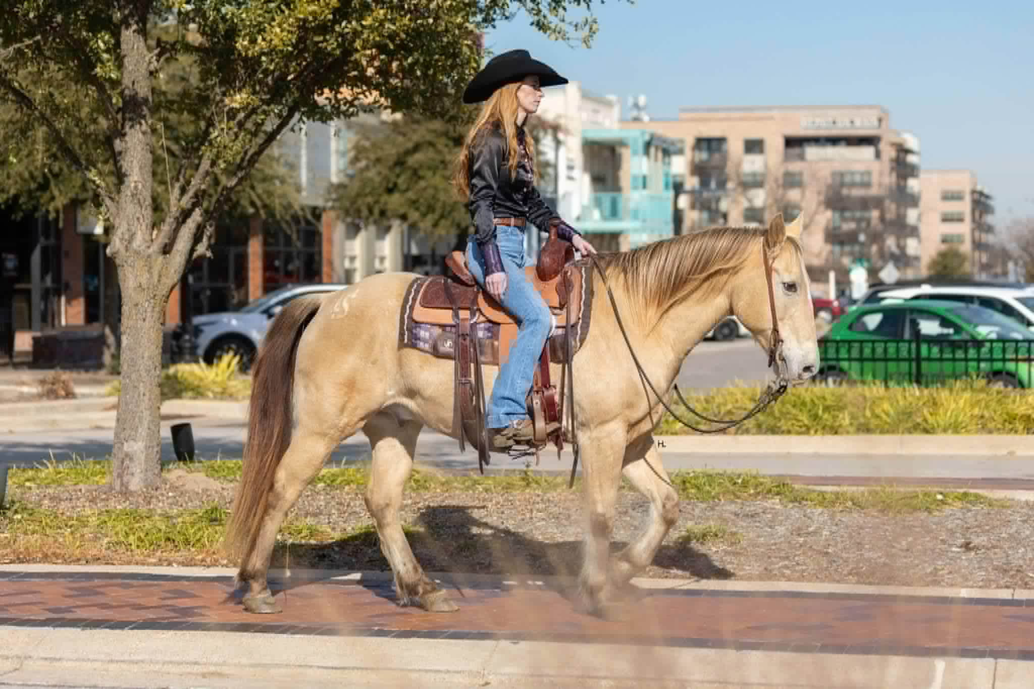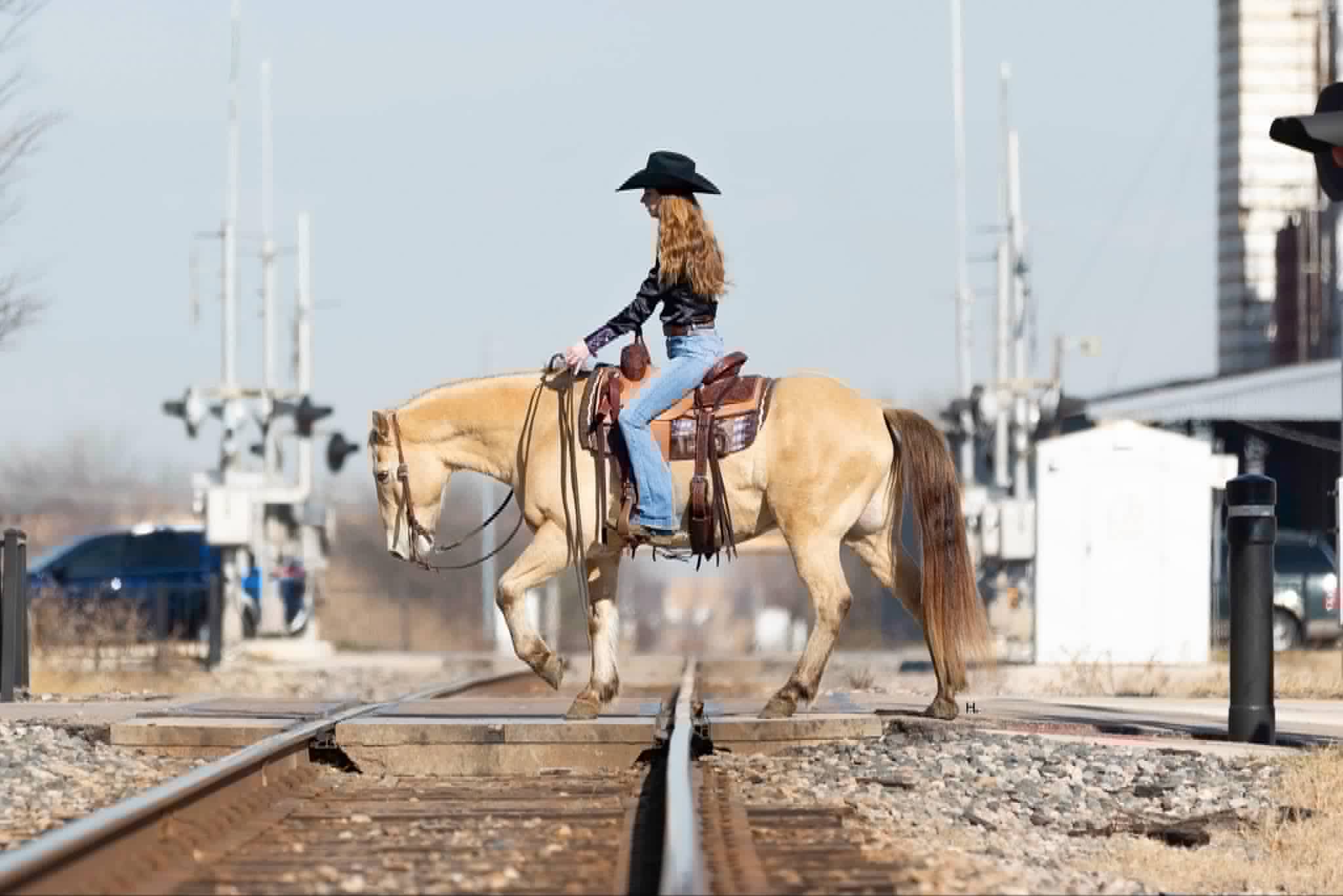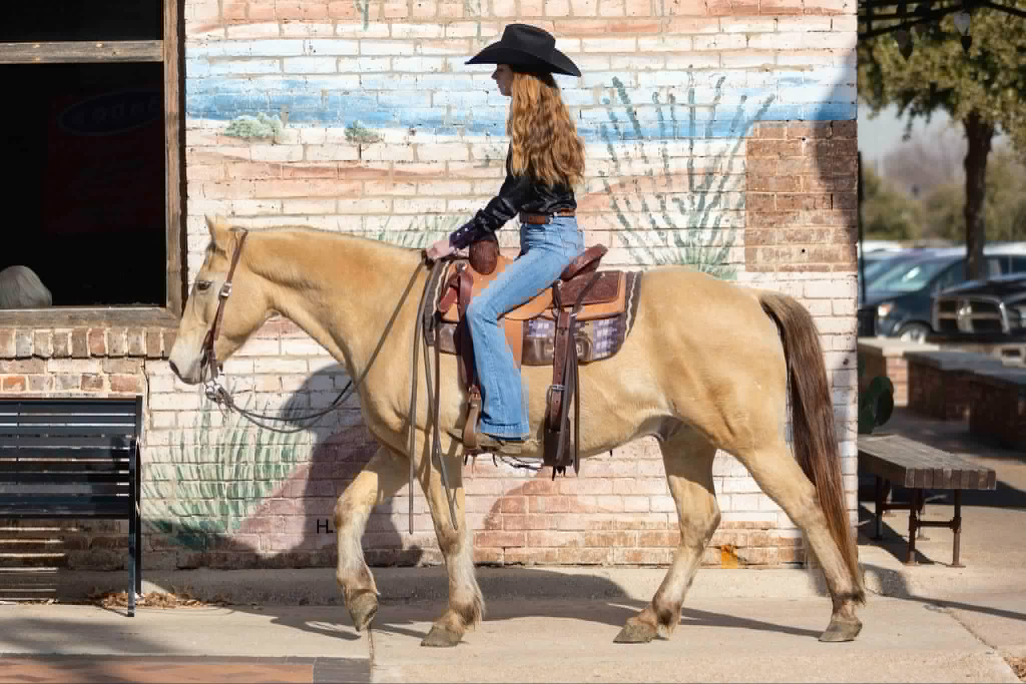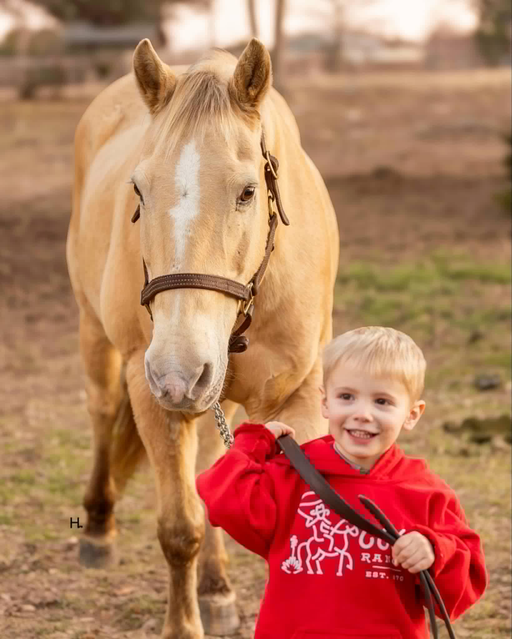 Let’s start the new year off with some champagne that’s safe and legal for everyone to enjoy and can be enjoyed on a budget! If you’re needing as close to an insurance policy in horse form as you can get, this is the guy. Dorado is 16yr old, 14.3hh, amber champagne gelding that’s the type you can throw anyone on and know they will be safe. From the trails to the arena he is unflappable, straightforward to ride, and will always be one of if not the most unique looking horse in the group. He’s the type that you can’t wipe the smile off your face when you’re riding him because he’s that fun. Dorado came across the southern border in 2018 and has been with the same family since here in Texas. He’s been used for basic ranch work (gathering/sorting/pasture roping) from south Texas to east Texas, used up at the sale barns, been trail rode everywhere in between, and has been the mount for the grandkids to ride around the ranch. Out on the ranch, Dorado makes even a long day enjoyable and go by quickly with his ground covering walk, his smooth trot, and his rocking chair type lope. He’s easy to use in the pens to sort some off and won’t object to the extra work if one needs roped. In the arena, Dorado won’t be the fanciest horse there but does everything with ease. He’s one hand broke, comes to a stop easily, will step right into a lope, picks up the correct leads, and won’t go faster than what’s asked of him. On the trails he’s the point and shoot type. There is nothing this gelding won’t cross and he has no problem making his own trail if you feel like going off the beaten path. Dorado is great with traffic, crosses all types of bridges, handles uneven terrain well, crosses water, and is pedestrian friendly. You can ride him bareback in a halter with no problems or ride him in any bit you want, ride him when it’s sunny and 75° or ride him in the freezing sleet and Dorado is going to be the exact same for it all. Our 3yr old little boy, who isn’t a super confident kiddo, has ridden Dorado a ton and Dorado has never made us question our boy’s safety no matter the conditions or where Stetson has ridden him at; whether it’s just above freezing with 20mph wind gusts, riding out in the open, or riding in a brand new location. Dorado has always been patient with Stetson and has always taken care of him. When it comes to how he handles time off, we know for a fact you can leave Dorado off for 2yrs, saddle him up, and he will ride off like he’s been being ridden everyday as the first time we rode him he had been off that long for no other reason than his owner wasn’t able to ride. Dorado is gentle to be around, stands tied like a gentleman for everything, will ground tie for the farrier, doesn’t object if you want to ride him double with a friend, will let you crawl all over, around, and under him without so much as shifting his weight, and loads right up in a trailer like one should. He’s as tried and true as they get in our opinion. Dorado has no bumps or scars on any legs, passed his recent health and lameness exam with flying colors, has never required any type of maintenance care, and has had no previous health or lameness issues. He has a ton of bone with fantastic, hard feet that he’s always been barefoot on with no issues no matter the terrain as well. Dorado is UTD on all care from teeth to feet and has a recent health exam on file that can be viewed on his page on our website. This is a nice, solid gelding ready to give someone confidence in the saddle or just be the horse you can always rely on. We invite you to come see and try Dorado at our place in Weatherford, Tx. PPEs are always welcome and we can help set up hauling to wherever you call home. For any questions and to talk about if Dorado is right for you, you can contact H Spur Performance & Versatility Horses Sarah 817-366-6123. To see more pictures, nearly an hour’s worth of videos, and to view Dorado’s Health Exam you can visit his page on our website at www.hspurhorses.com/dorado