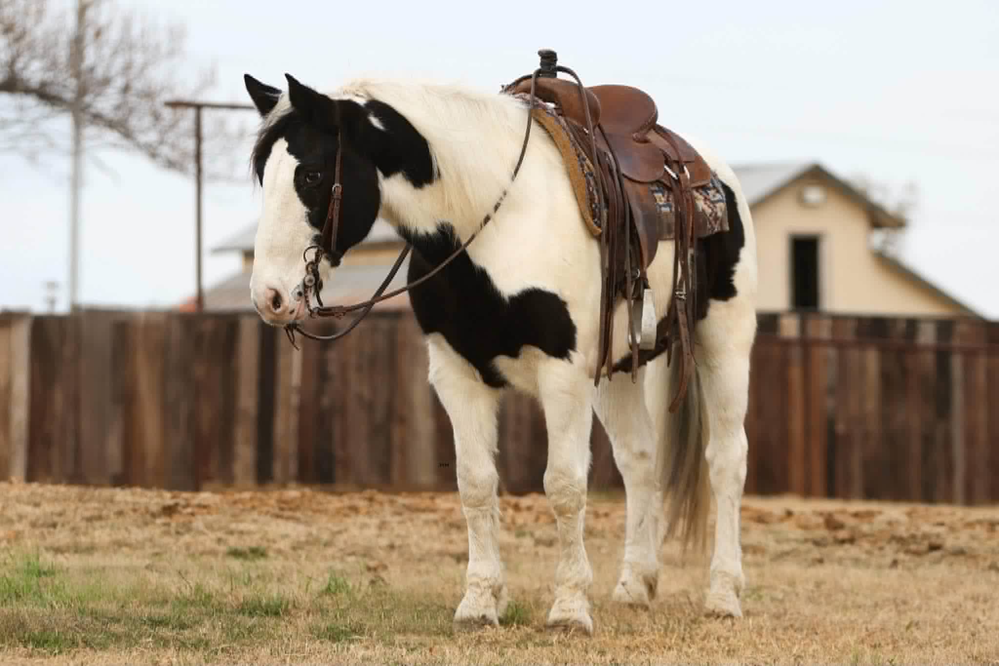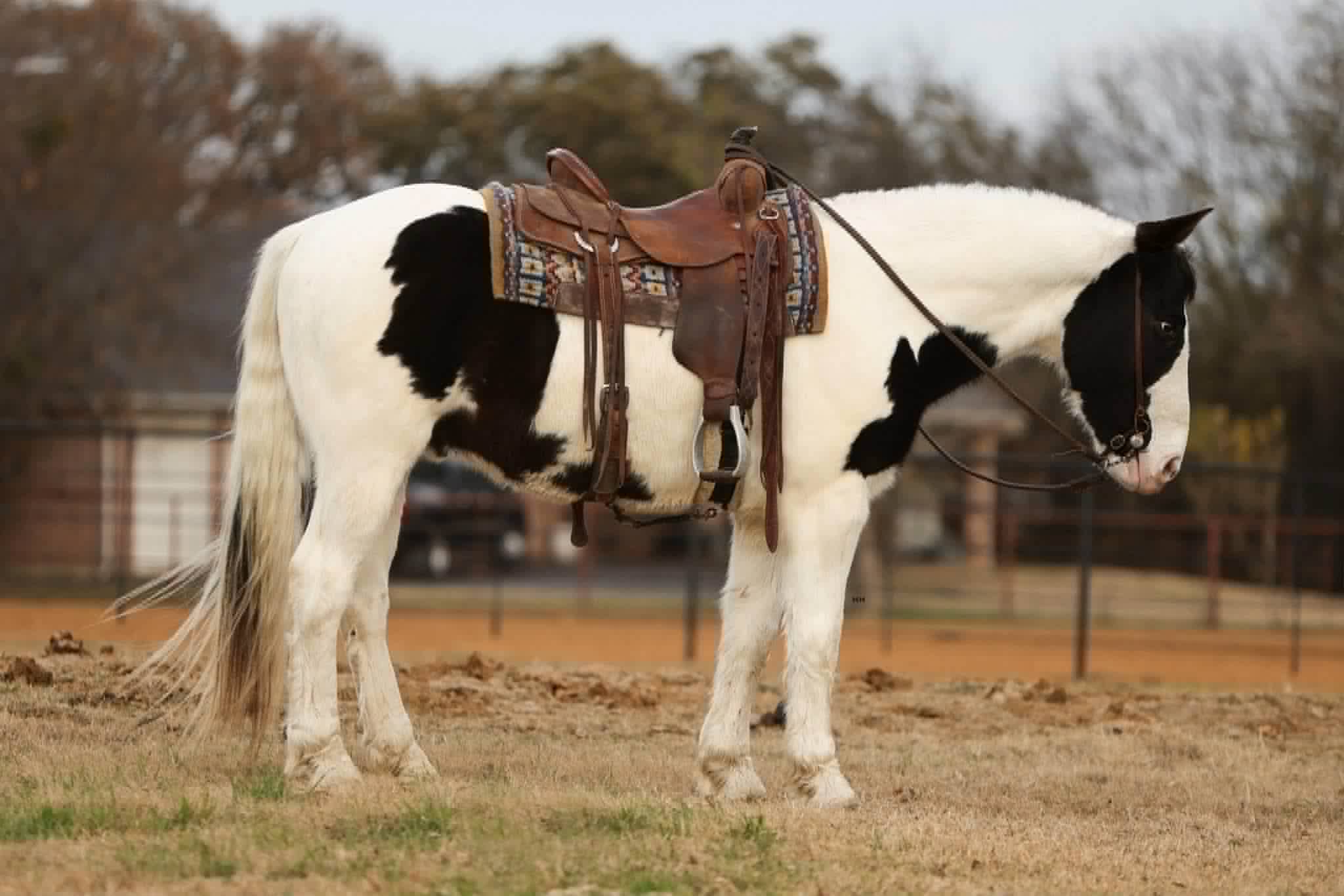 Introducing Duke — a 7-year-old Gypsy cross paint gelding standing a solid 15.0 hands, and the kind of horse that rarely comes available. Striking, one-of-a-kind looks paired with a flowing mane and tail make him impossible to overlook, but it’s his mind and talent that truly set him apart.