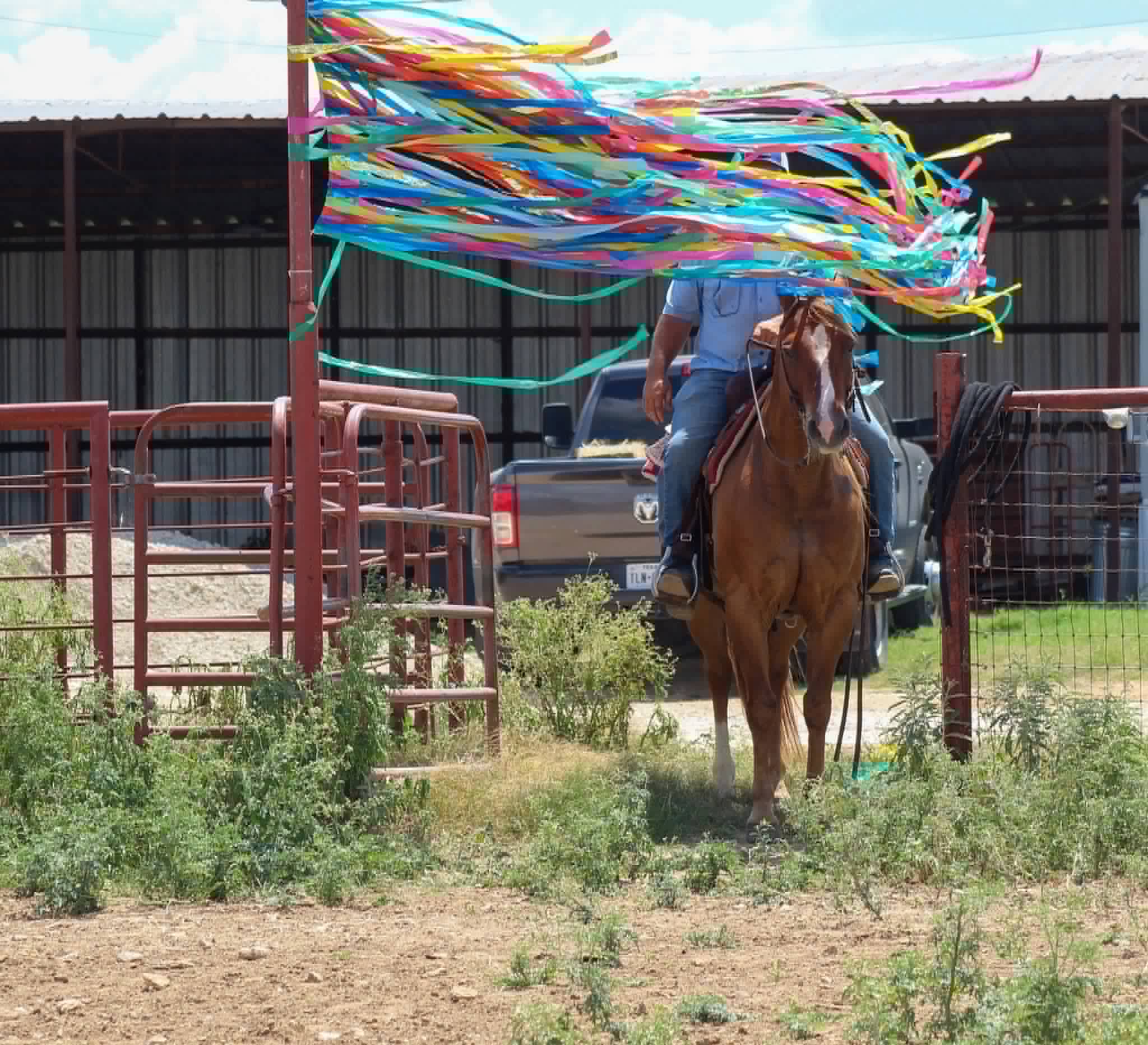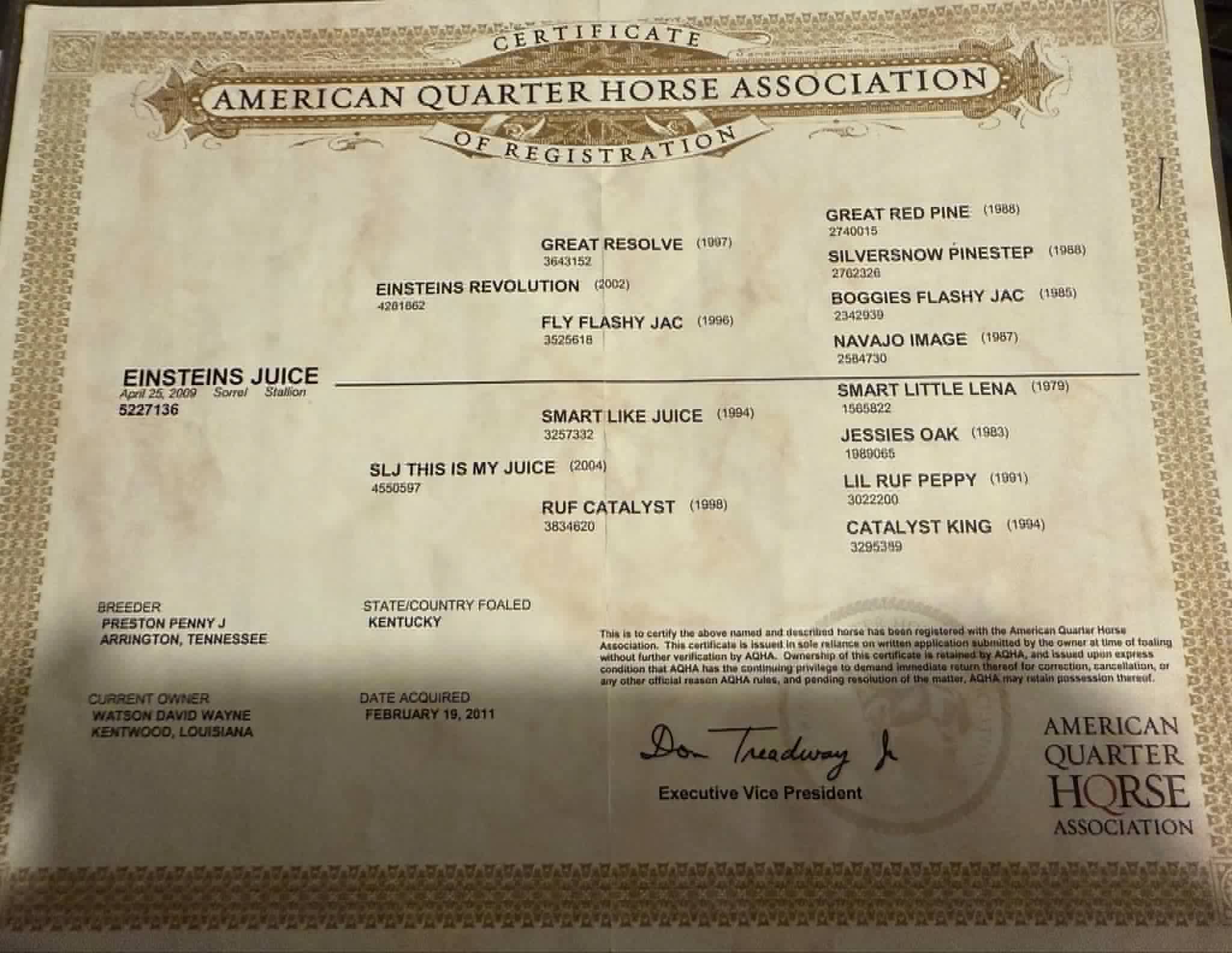 Meet Einsteins Juice, affectionately known as Clyde! This 2009 AQHA gelding stands at a sturdy 14.2 hands tall, and don’t let his age fool you—he’s got plenty of adventures left in him! Clyde is truly the complete package, boasting a pedigree filled with champions. He’s an own son of Einsteins Revolution, a renowned NRHA million-dollar sire. Clyde is a seasoned veteran with a heart of gold. He’s a finished heel and breakaway horse who has traveled all over the country for rodeos and jackpots, and he’s seen it all! I don’t often use the term “bombproof,” but Clyde truly deserves that title. Whether you’re ranching or just enjoying a day out, he’s got you covered. He’s great for all ranch chores and rides out anywhere with a nice, easy stride. Clyde loves hitting the trails and has no hesitation when it comes to swimming—he’ll walk right into any water! He’s confident on various terrains, and will cross logs, bridges, or tarps. You can even ride him bridle-less down the trails or through the pasture, which speaks volumes about his trustworthiness and training! Clyde has proudly carried flags at multiple rodeo grand entries, showcasing his calm demeanor and versatility. He’s the perfect addition to any family—gentle enough for everyone, from kids to adults. While he might not have a flashy color, being a plain sorrel, Clyde is the horse that 95% of horse seekers are looking for. He’s an absolute gentleman and the sweetest guy around. If you’re looking for a reliable and fun partner, Clyde is ready to steal your heart! Come meet him and see for yourself what a wonderful companion he can be! He does have a cosmetic wire scar on his right front leg. It does not bother him at all it’s just there. We are open to anyone interested in him to schedule a time to come see him or if you can’t make it schedule a FaceTime showing to see him. If you need help with transport don’t hesitate to ask we have a list of reputable haulers that can get him safely to your doorstep WORLD WIDE including, Alaska , Mexico, Hawaii, Canada and anywhere in between. Contact M$ Performance Horses Michelle 661-817-9120 with nay questions.
