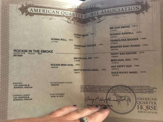 Rockin In The Smoke aka “Fiona” is a cute 6 yr old AQHA mare. She stands 14-14.1 hands tall and is stout built. She is a GREEN horse with about 60 rides on her. She is willing and athletic and would make a strong prospect for multiple different disciplines. She has been hauled, exposed to different places, and rode outside. She has handled it all extremely well and with an eager attitude. Extremely smooth ride with a low headset, Fiona is quite the pleasure to cruise around or to spend time training on. Located in Scottsdale, AZ. If you have any questions feel free to call Cardon Livestock Casey 661-747-6555