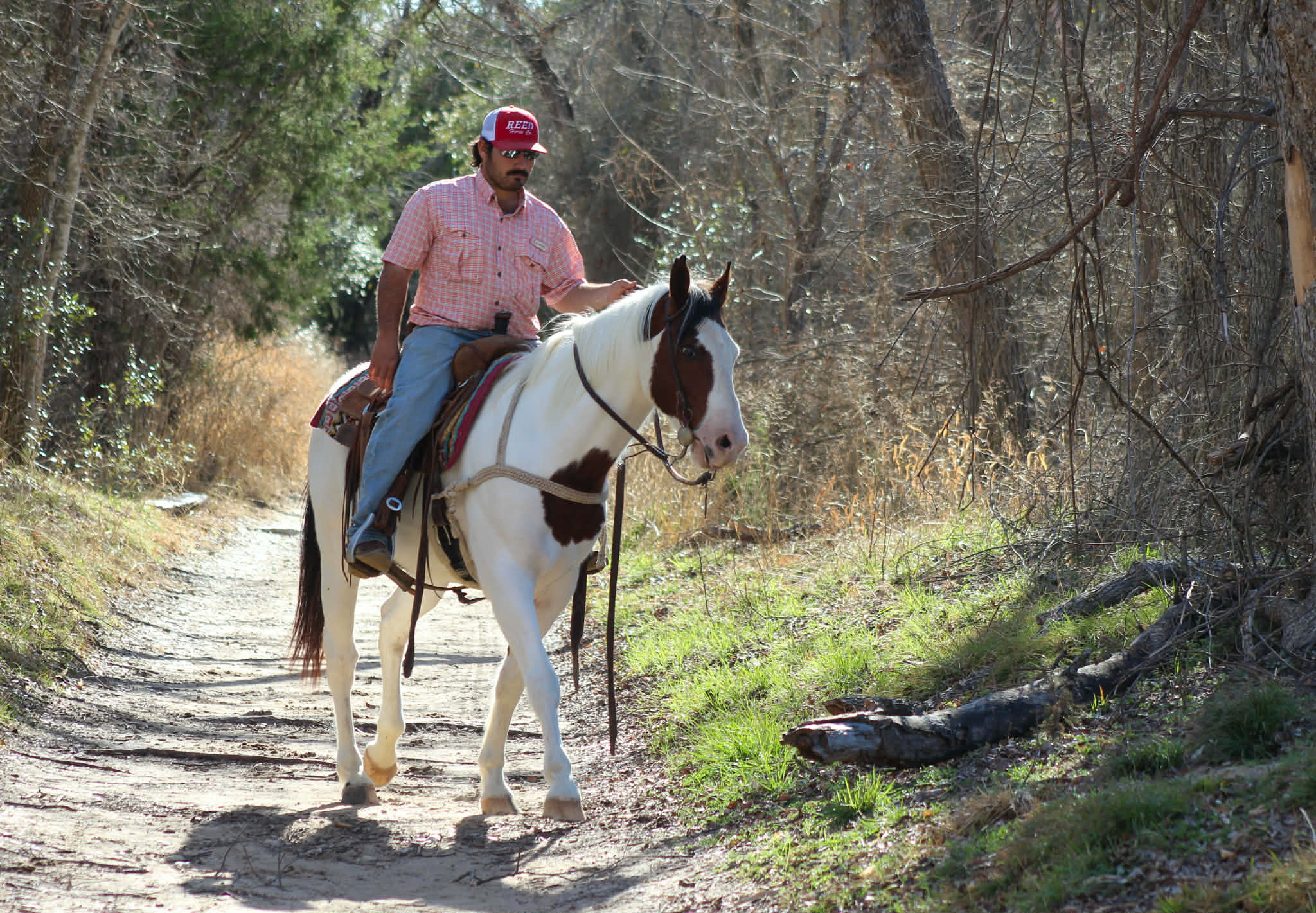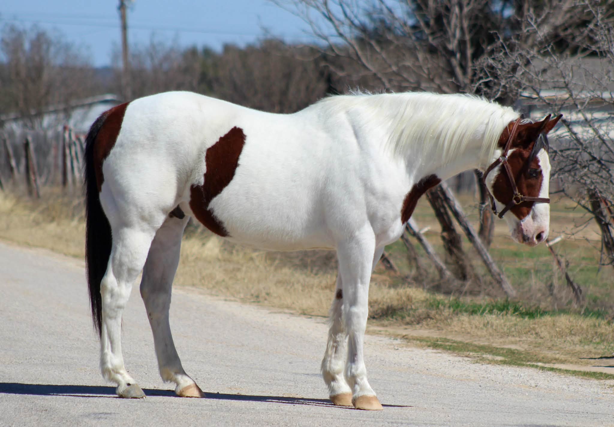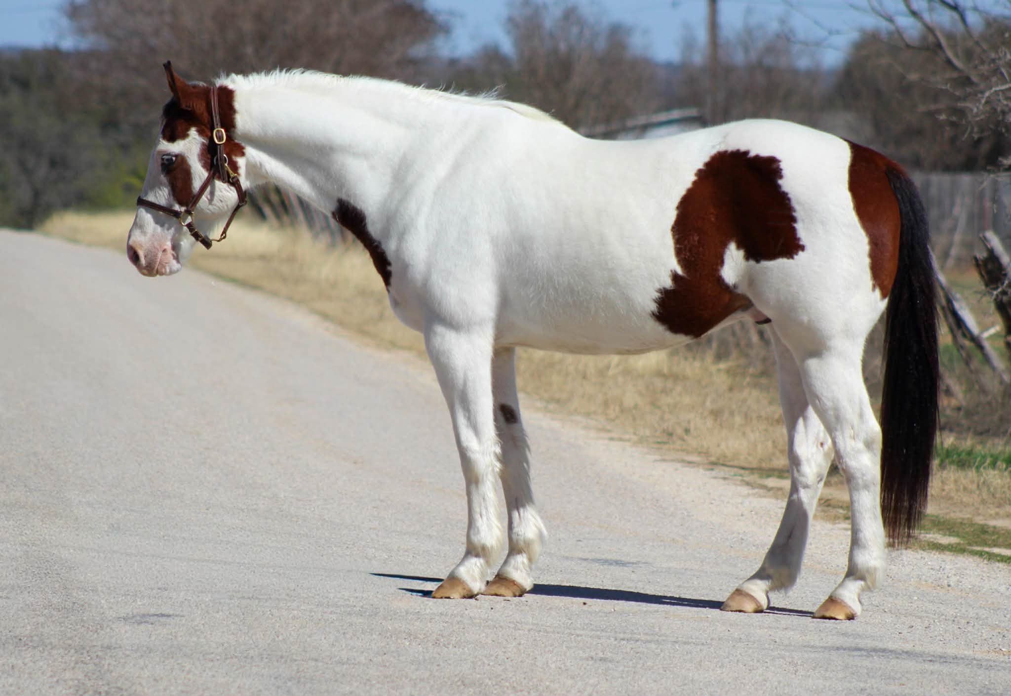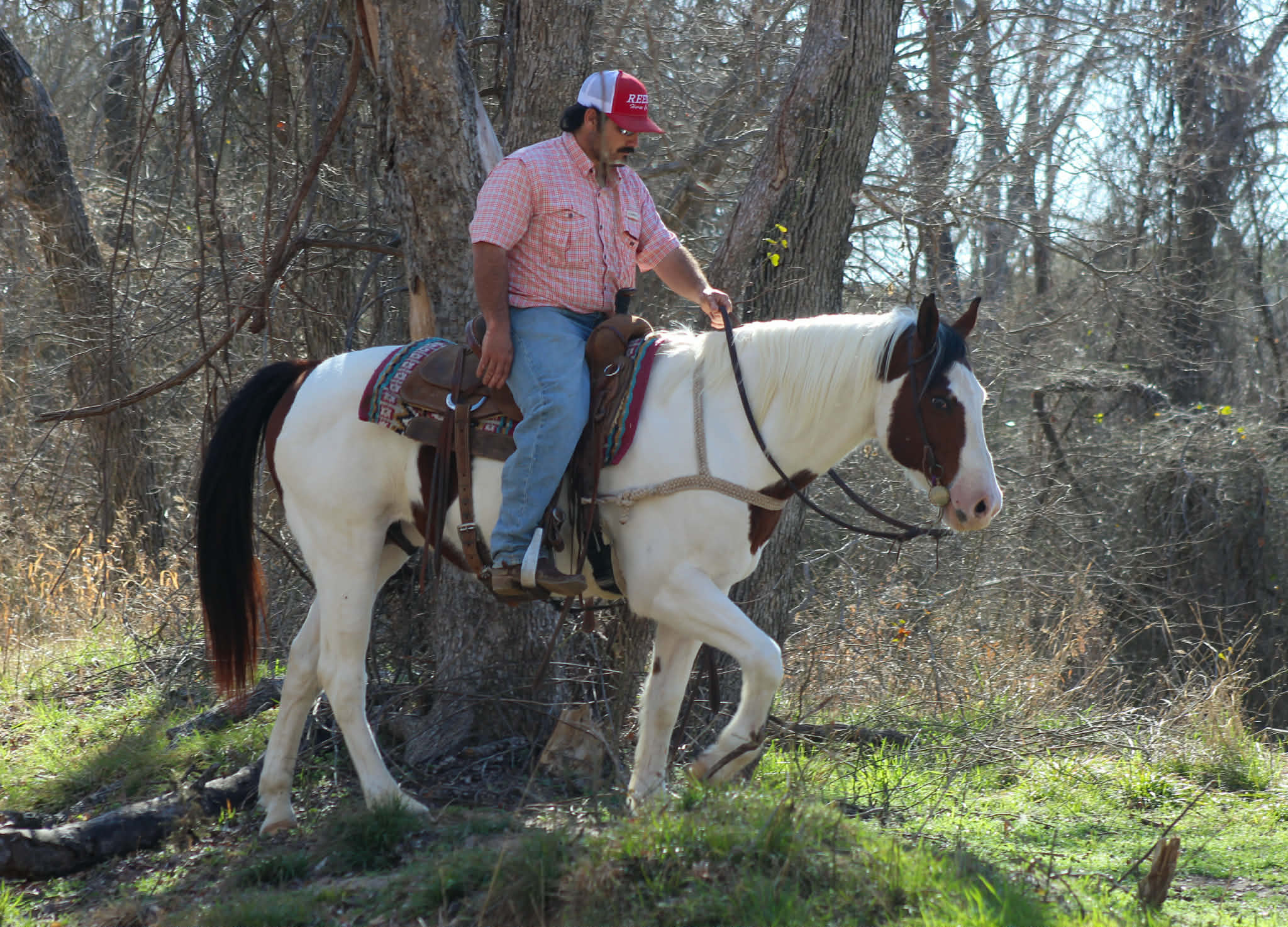 Gunner is a 15 year old paint gelding standing 15 hds tall and boy is he flashy with his unique markings. He is one that’s going to stand out! Gunner has covered serious country — miles and miles of trails, different states, camping trips, rough terrain, water crossings, rocky climbs, thick brush — you name it. He’ll ease along on a loose rein, happily walk all day, or step into a trot or lope if you want to cover ground. He crosses water without hesitation (he loves to splash around in the water), steps over logs, crosses bridges, and handles new places with a steady mind. He’s even taken in the sights and sounds of the historic Fort Worth Stockyards without missing a beat. In the arena, he keeps it simple and solid — easy neck rein, smooth transitions, and a stop that’s dependable. Nothing fancy, just broke the way one should be. He’s user friendly and easy to ride not one you need a handbook on. He stands tied, good for the farrier (currently barefoot ), loads and unloads easy, and is content turned out or stalled. He currently lives turned out, he’s easy to catch. We are open to anyone interested in him to schedule a time to come see him or if you can’t make it schedule a FaceTime showing to see him. Contact Michelle at M$ Performance Horses & Ponies LLC 661-817-9120 with any questions. Located in Whitesboro,Tx If you need help with transport don’t hesitate to ask we have a list of reputable haulers that can get him safely to your doorstep WORLD WIDE including, Alaska , Mexico, Hawaii, Canada and anywhere in between.