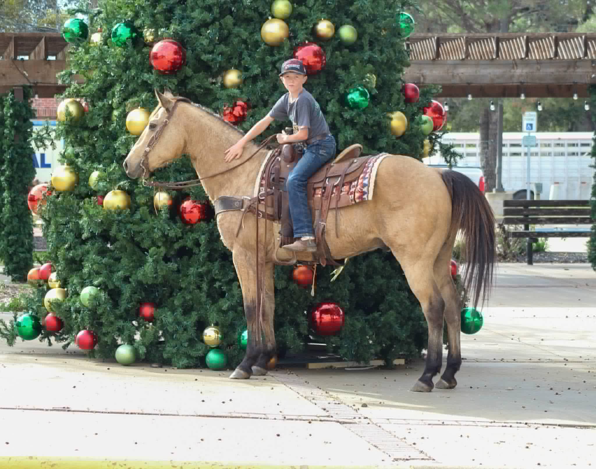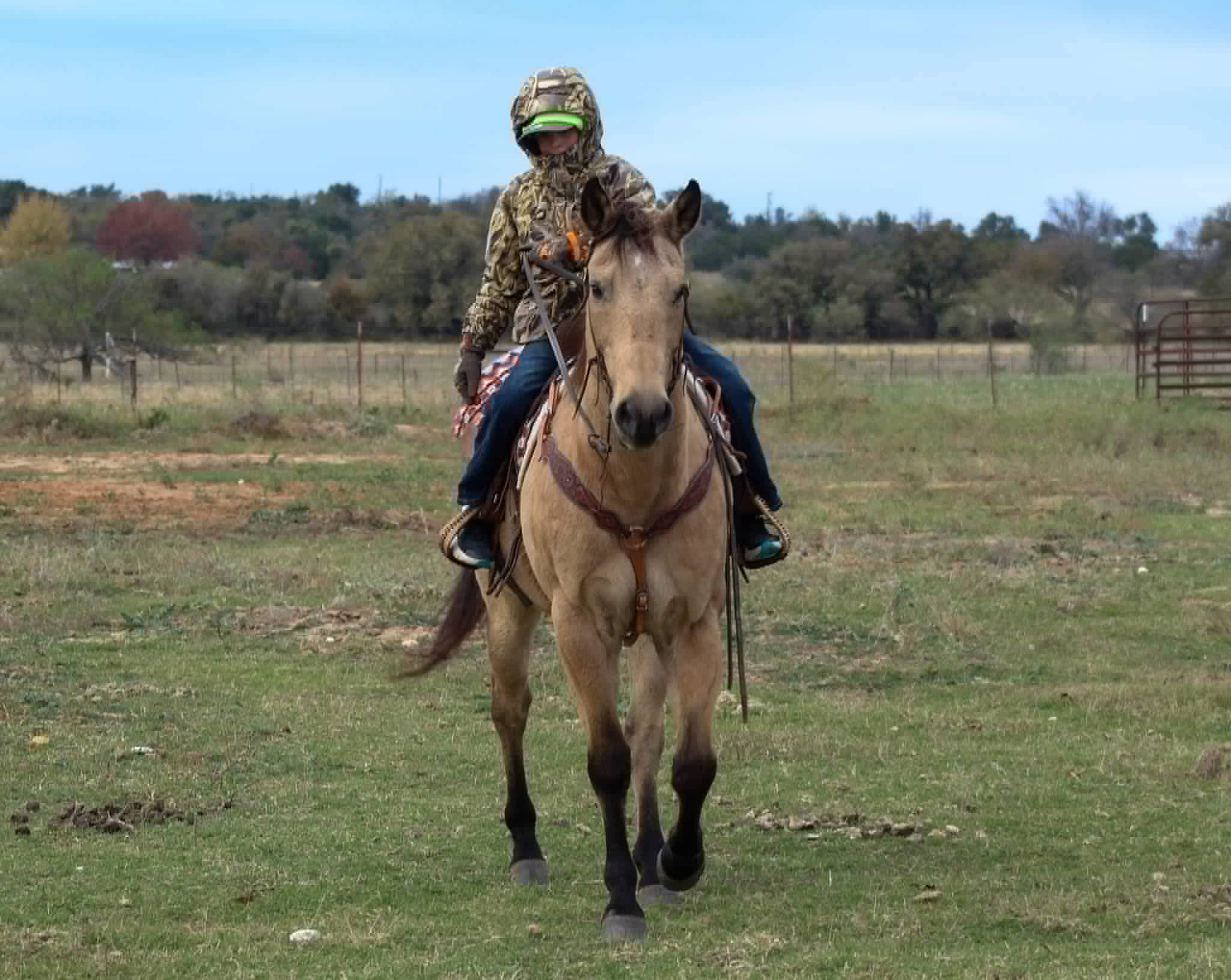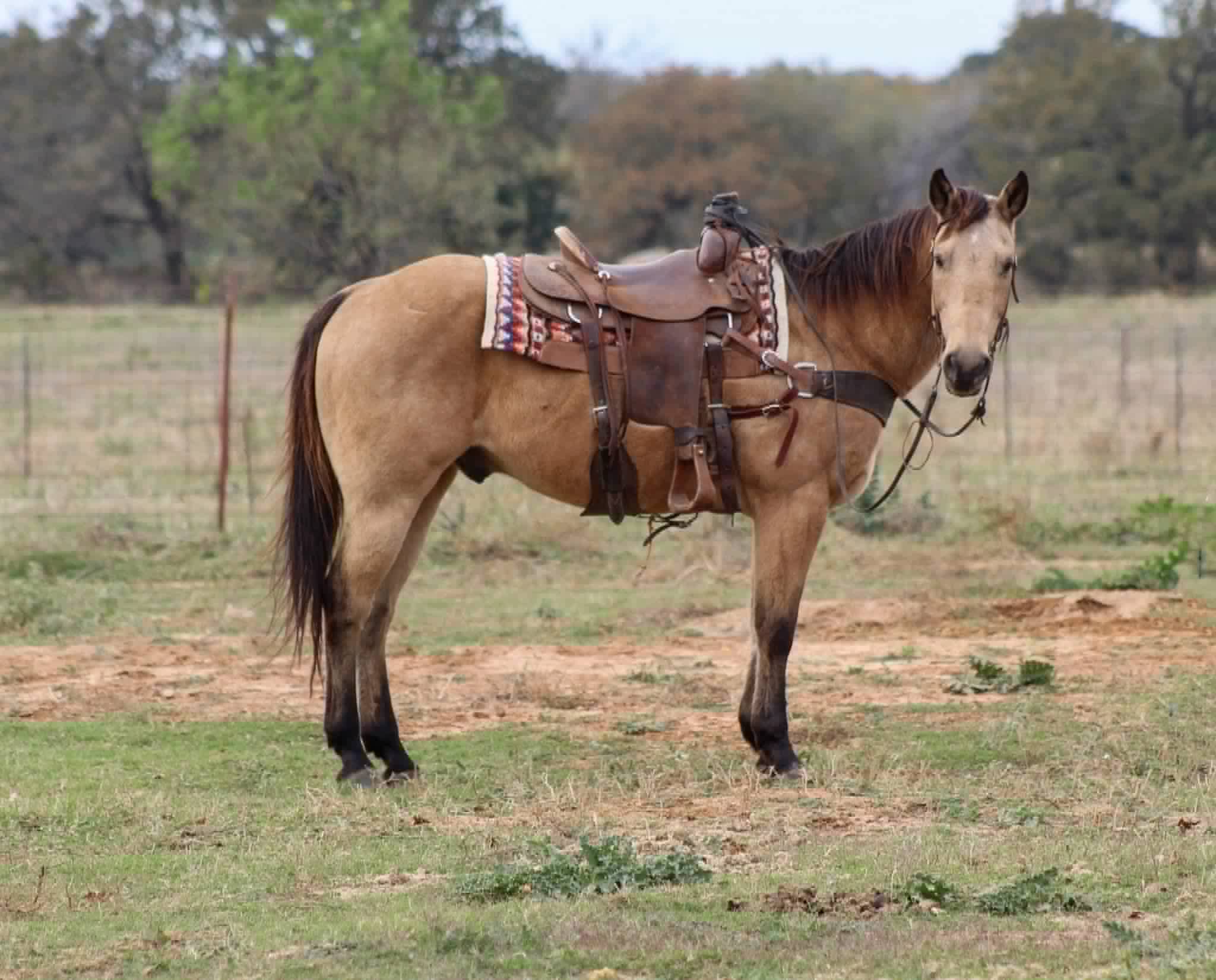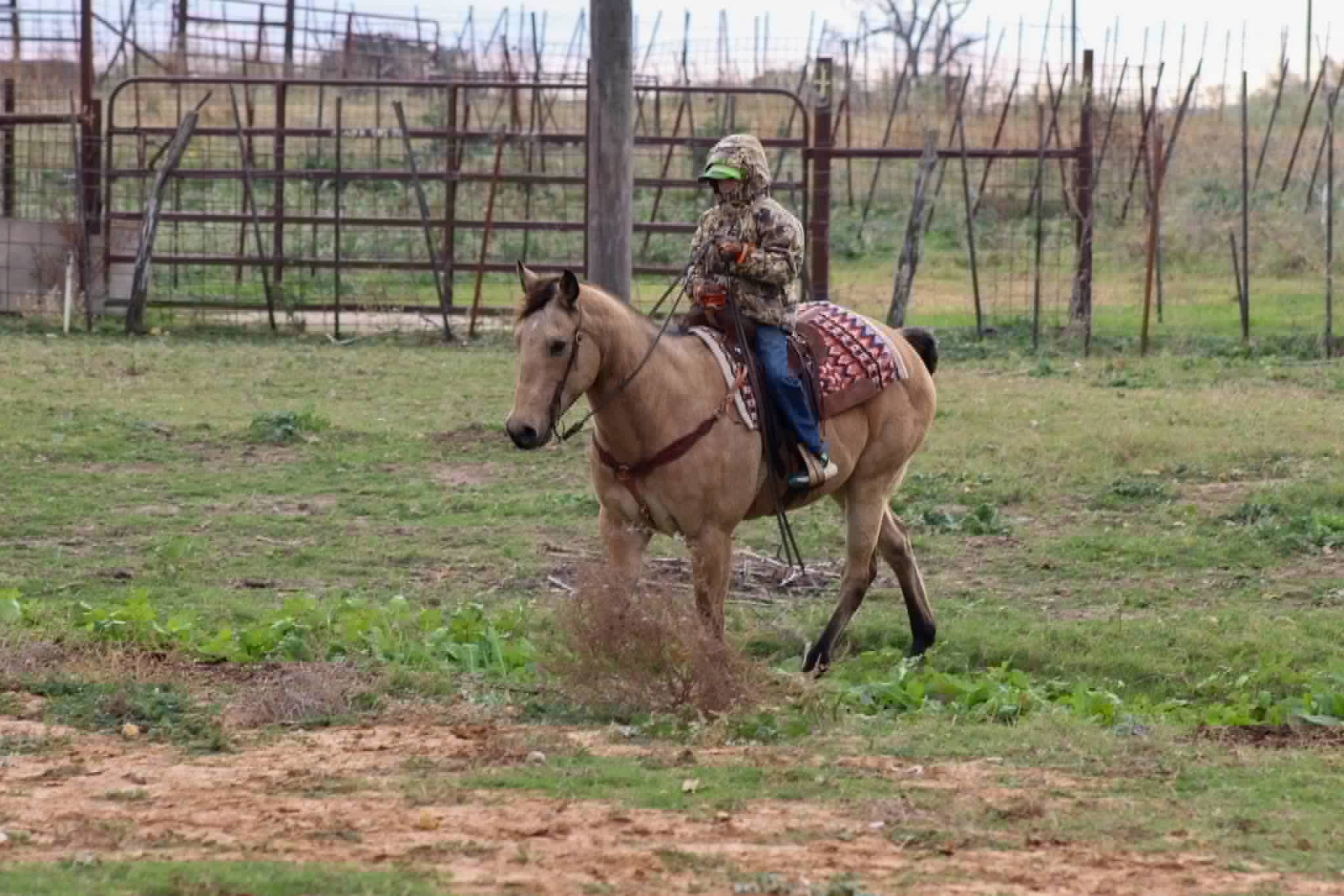 Gunsmoke is a 14 year old buckskin gelding standing 15 hds tall . Gunsmoke is Americas favorite color and SAFE for the whole family . He has spent many miles checking fences on the ranch. Gunsmoke has been a ranch horse all of his life he has sorted pairs, roped and doctored sick cattle outside . He is a joy to ride out on the ranch from checking your cattle to fences. We use him weekly penning back cattle at our cow sale. Gunsmoke is absolutely GENTLE for the whole family . He has been rode by our kids daily and is use to just about everything you can imagine. We rode him in our 4th of July parade this year and he was fantastic! Gunsmoke is happy to do anything you ask. He will happily do a days work out on the ranch or just an easy day riding down the trails . He is a point and go type of guy he goes wherever you point him. He’s absolutely user friendly to ride and any level of rider will get along with him. Gunsmoke is one the WHOLE family can enjoy from the adults to the kids. Ones like him don’t come around often . Gunsmoke would sure look great under your Christmas Tree! Contact us with questions you may have about our fabulous guy we will be happy to answer any of them or if you’d like to facetime and meet Gunsmoke. Shipping is available worldwide. Located in Stephenville,TX. Contact Stephenville Cattle Co. Chris 254-459-1046