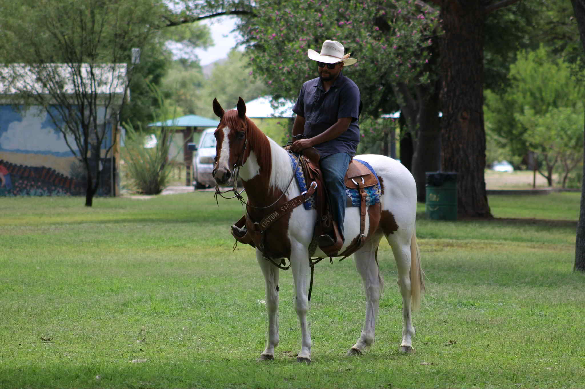 Hard On The Rocks aka Rip is a Beautiful, Seasoned Sorrel Tobiano Paint, that is a 2015 model, reg APHA, gelding that is standing 15.1hh. Rip is a handsome paint gelding with all the experience and heart you could ask for. Rip has been used extensively on the ranch and trails. He’s gathered cattle in big mountain country, crossed rivers, navigated rocky terrain, and he’s no stranger to a long day’s work. He’s also been ridden through town — traffic-safe, calm, and steady no matter the situation. One of Rip’s best qualities? He’s easy to leave off and easy to bring back. Whether it’s been a week or a month, he saddles up quiet and rides off like a gentleman. He’s smooth, easy to ride, and gets along well with other horses in the pasture or on the trail. While he’s good for anyone, Rip does seem to have a soft spot for the ladies — he’s happiest with a kind, quiet rider. If you want a horse that’s been there, done that, and still has plenty of good years ahead of him, Rip is your guy. He is located in Nogales, AZ. Contact Kyle with Thunder Valley Ranch 402-910-6476 with any questions. Shipping is available anywhere in the US.