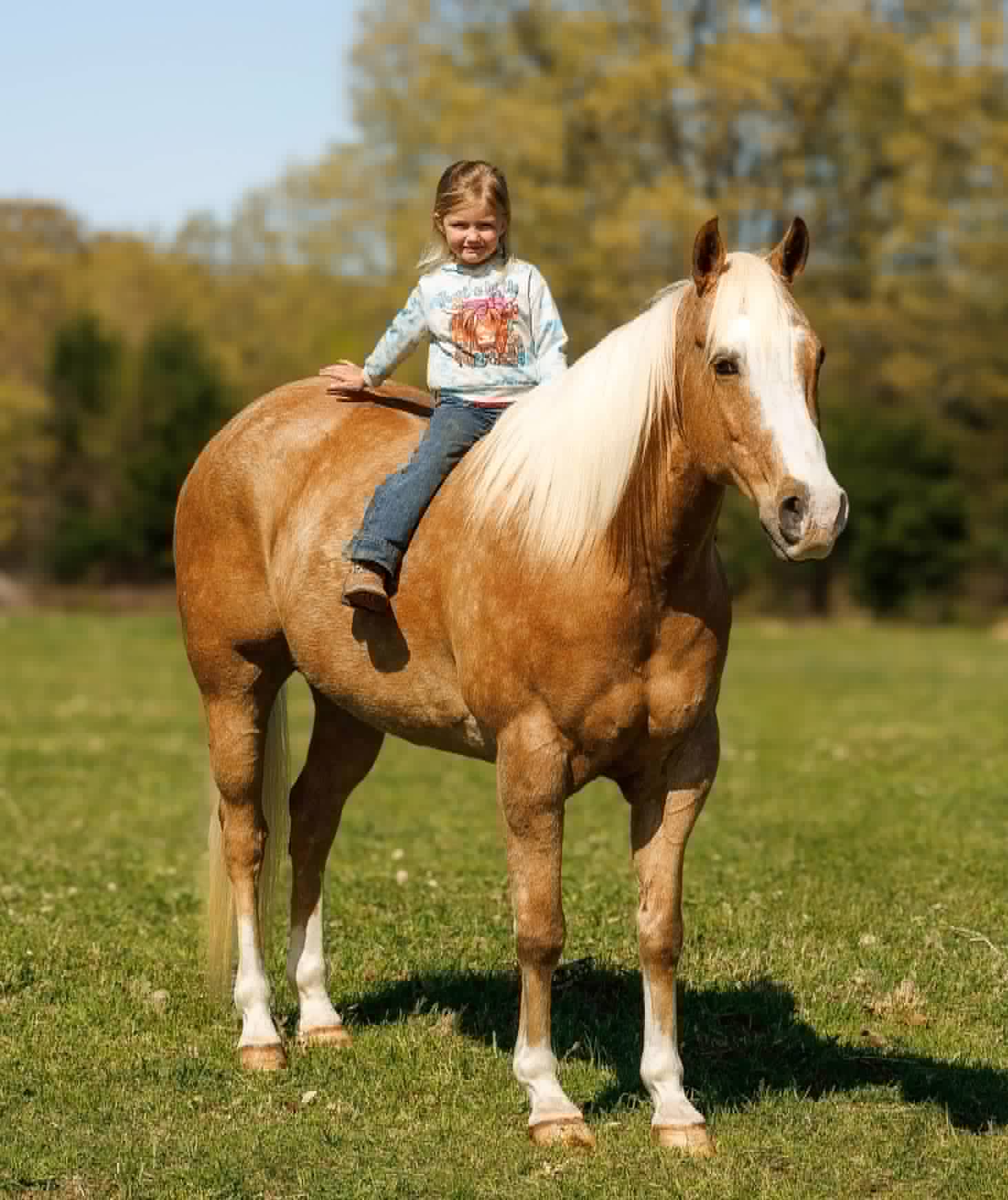 They say blondes have more fun and this palomino proves it. Meet Taxi, a 14-year-old registered AQHA gelding standing 15.1 hands and truly the definition of “the perfect package.” He has chrome, shape, substance, and a wonderful disposition. Taxi is the ideal size for riders big or small and has a genuine heart of gold. He has an outgoing personality, impeccable ground manners, and absolutely loves everyone he meets. Taxi is a phenomenal trail partner and isn’t bothered by creeks, logs, ditches, wildlife, or any other obstacle you may encounter. He’s been to town, seen the bright lights, and handled every situation with confidence. Taxi has a rocking-chair lope and the most comfortable jog. He is easy to ride, respects the bridle, neck reins one-handed, and responds well to leg cues. He has seen every aspect of ranch work and is no stranger to cattle. Taxi has been used to push, gather, sort, and load. He’s the first to greet you at the gate and an absolute dream to groom, saddle, bathe, clip, load, and shoe. Taxi is truly a joy to own and ride. If you’re searching for a one-in-a-million unicorn, Taxi is your guy. Watch his full YouTube video, feel free to reach out with any questions, or arrange a visit!