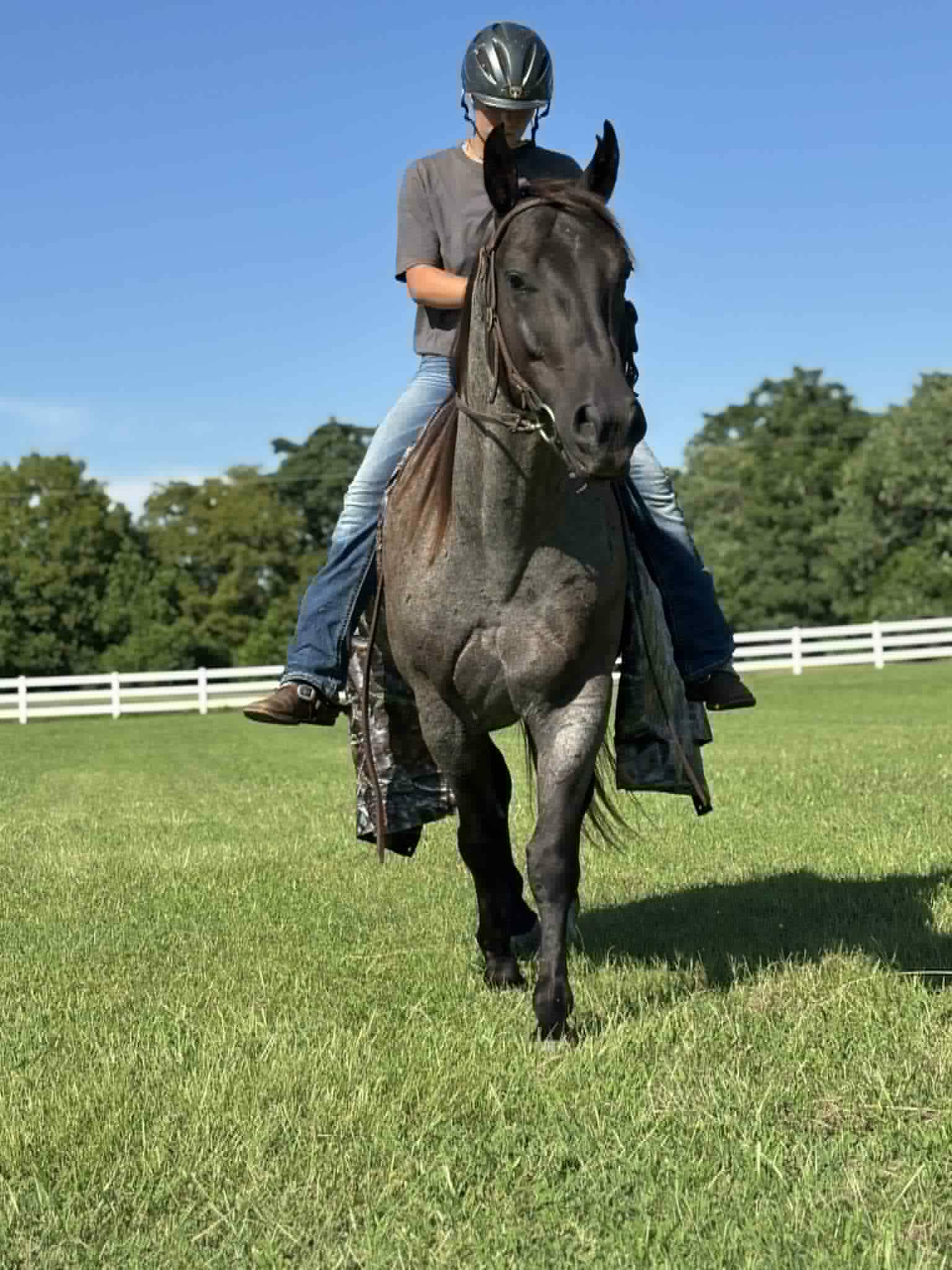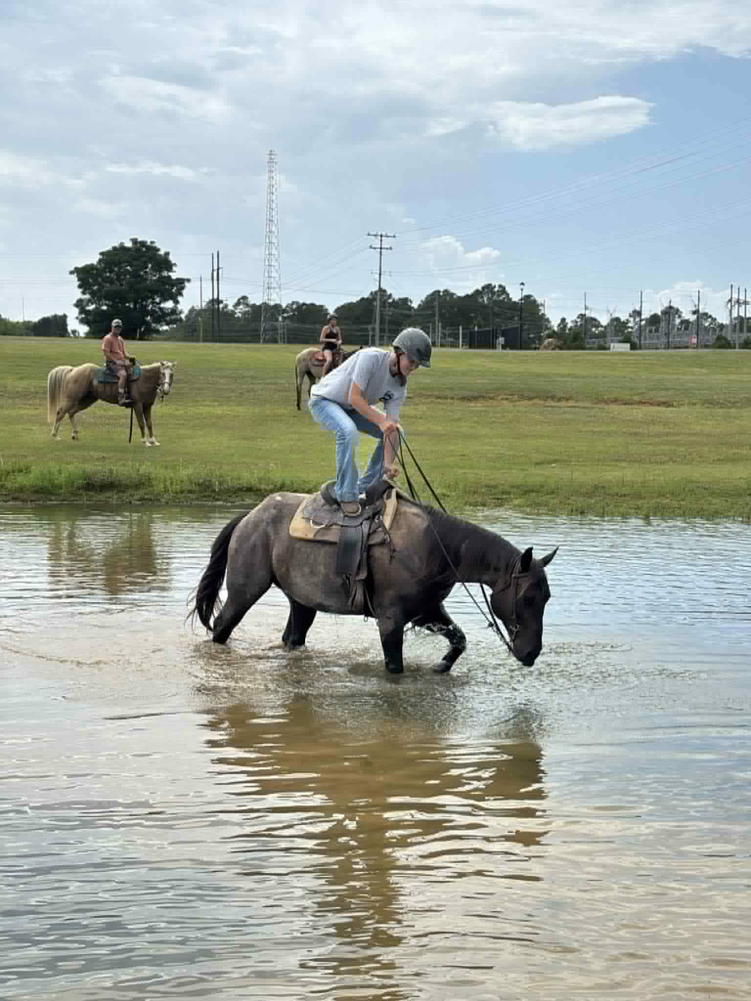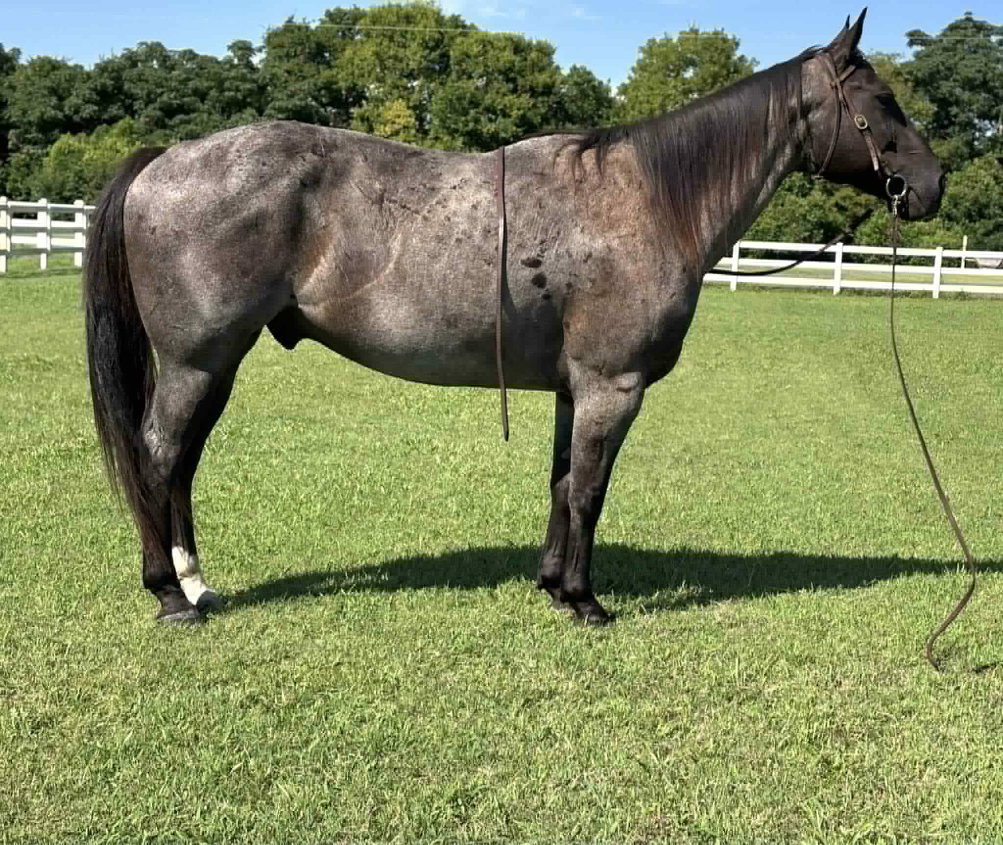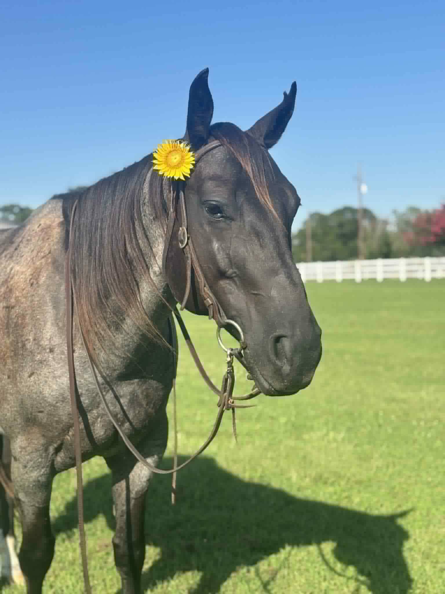 Hollywood is a 2018 model blue roan quarter horse gelding. He stands 15 hands tall and is built like a tank. Hollywood has been ridden all over South Georgia and is an absolute blast. He will walk through water and over logs and anything else in his path without hesitation. He will ride off alone, or with a herd. He will walk into water and over obstacles before thinking twice. He is super broke and always willing to please. Hollywood would make a great kids horse as he is extremely gentle. He is the most level headed I’ve ever owned and doesn’t spook at anything. Hollywood can be ridden bareback or with a saddle. He stands for the farrier and to be saddled and takes a bit with ease. UTD on coggins and vaccines. Contact Andrew Dismuke 229-347-7687 with any questions. Located in Dawson, GA.