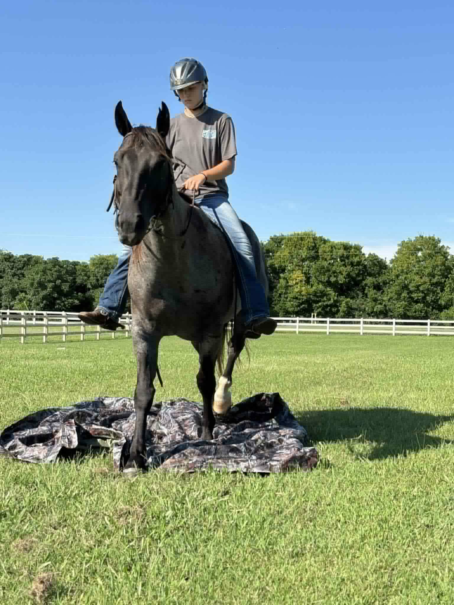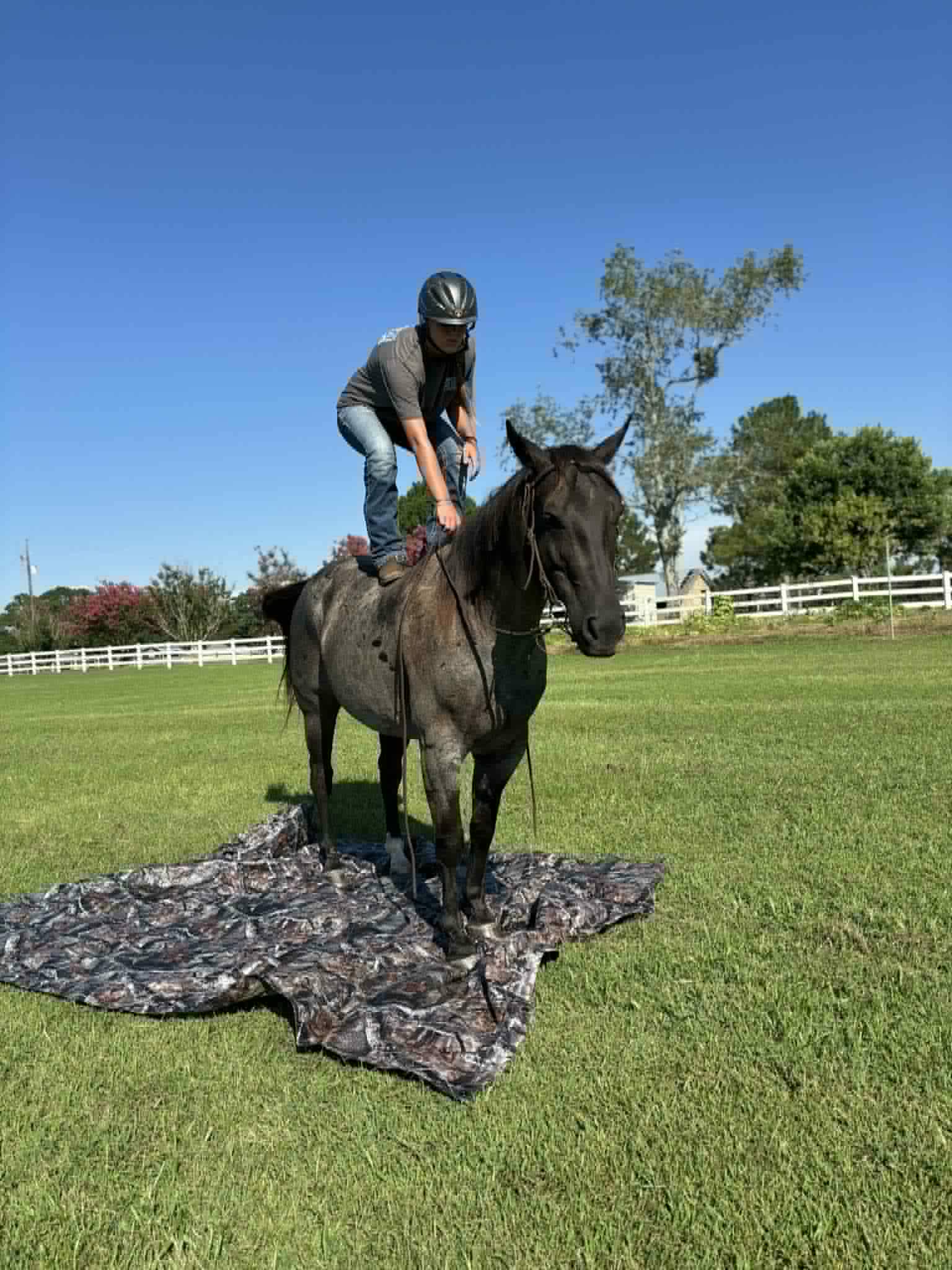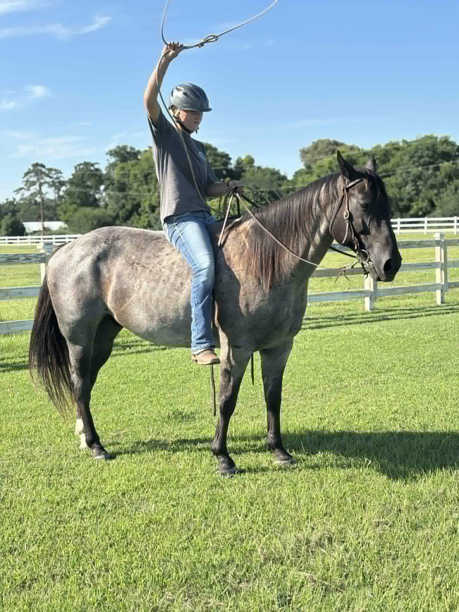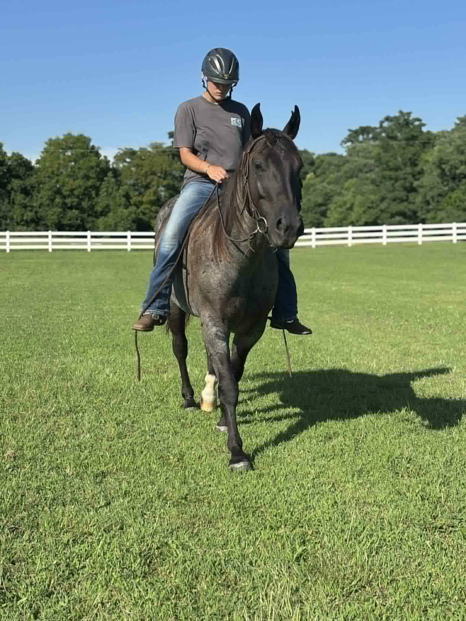 Hollywood is a 2018 model blue roan quarter horse gelding. He stands 15 hands tall and is built like a tank. Hollywood has been ridden all over South Georgia and is an absolute blast. He will walk through water and over logs and anything else in his path without hesitation. He will ride off alone, or with a herd. He will walk into water and over obstacles before thinking twice. He is super broke and always willing to please. Hollywood would make a great kids horse as he is extremely gentle. He is the most level headed I’ve ever owned and doesn’t spook at anything. Hollywood can be ridden bareback or with a saddle. He stands for the farrier and to be saddled and takes a bit with ease. UTD on coggins and vaccines. Contact Andrew Dismuke 229-347-7687 with any questions. Located in Dawson, GA.
