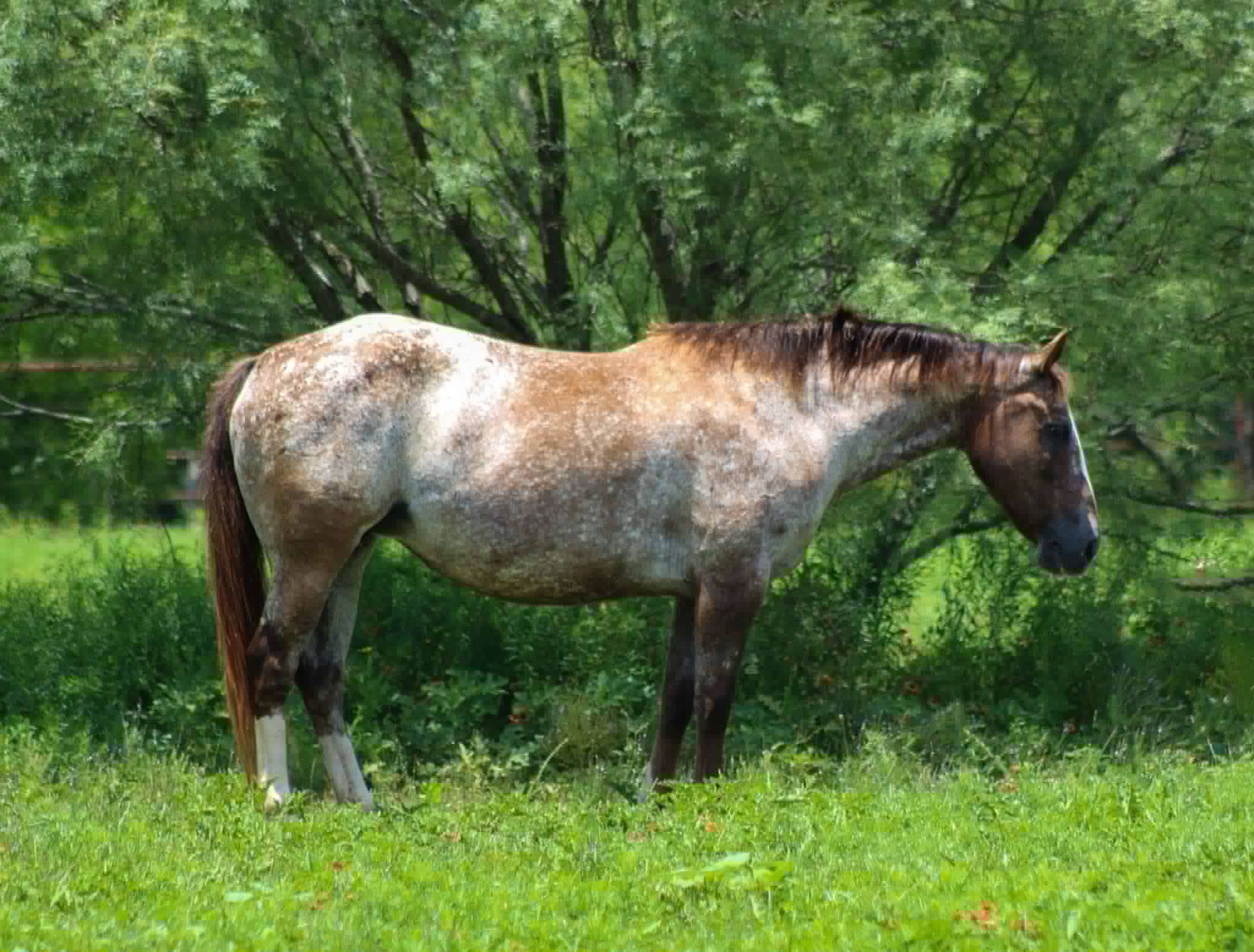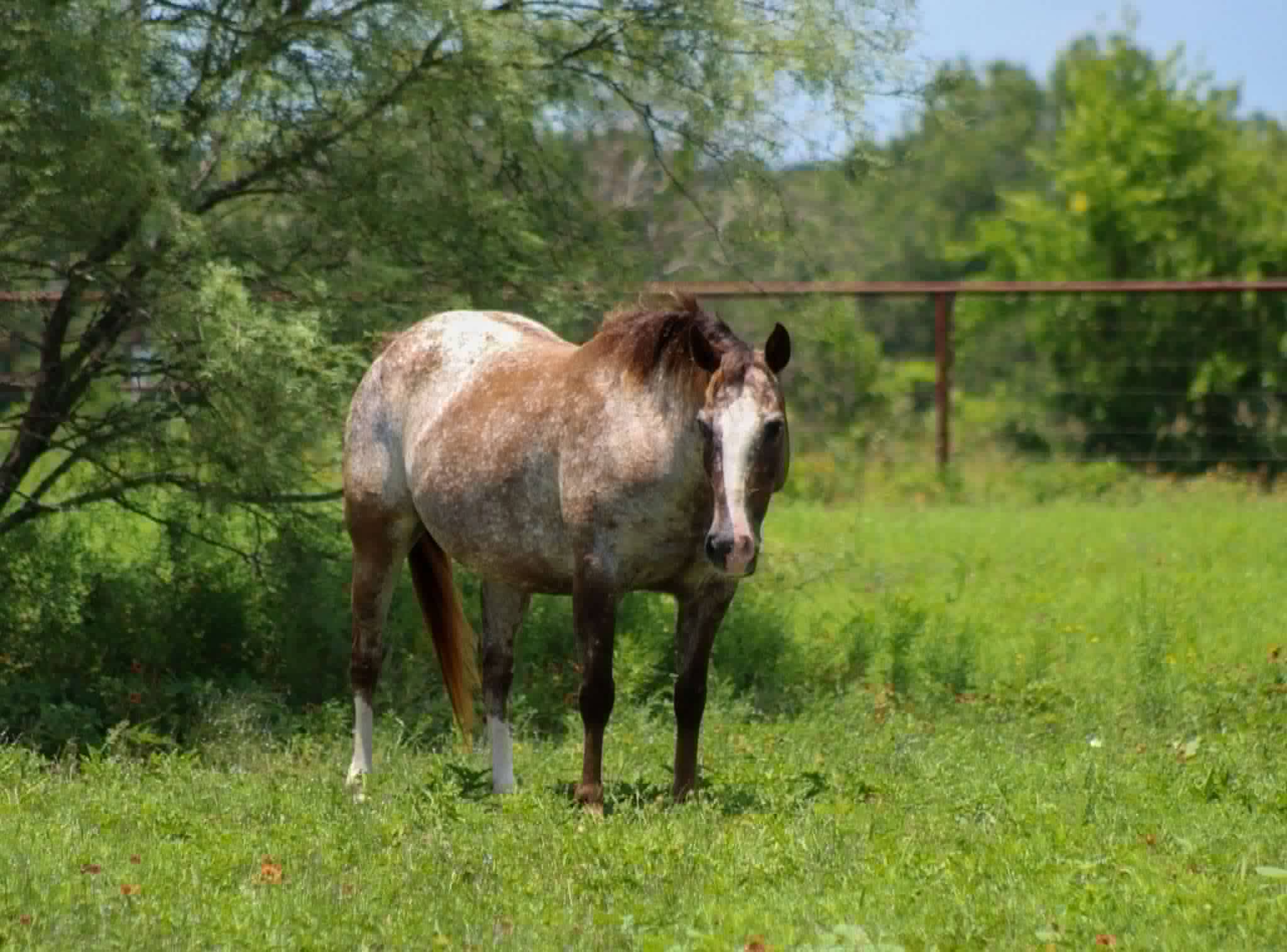 Meet Jane, the adorable 7-year-old Appaloosa mare who’s ready to steal your heart! Standing at 13.2 hands tall and as wide as she is tall, Jane is the perfect blend of charm and gentleness. She’s been a star in lessons and play days, and her easy-going nature makes her a fantastic companion for riders of all levels. If you’re not looking for a speed demon, Jane is your gal! With more whoa than go, she’s all about enjoying the ride at a comfortable pace. In the arena, she’s happy to walk, trot, and lope circles, making her a great choice for those looking to build confidence or just have a leisurely ride. Jane has also been a real trooper, carrying flags in parades and navigating trails like a pro. She’ll happily cross water, logs, and bridges, and she’s unfazed by the hustle and bustle of the highway, even with cars and semi-trucks zooming by. She’s seen it all and takes it in stride! This chunky little lady has a heart of gold and is used to a variety of experiences, making her a wonderful addition to any family. Plus, she’s been a fantastic momma to a few colts in the past. If you love a fun, reliable Appy mare, then Jane is the perfect match for you! Come meet her and see for yourself how special she is! We are open to anyone interested in her to schedule a time to come see her or if you can’t make it schedule a FaceTime showing. If you need help with transport don’t hesitate to ask we have a list of reputable haulers that can get her safely to your doorstep WORLD WIDE including, Alaska , Mexico, Hawaii, Canada and anywhere in between. Located in Stephenville, TX. Contact M $ Performance Horses Michelle 661-817-9120