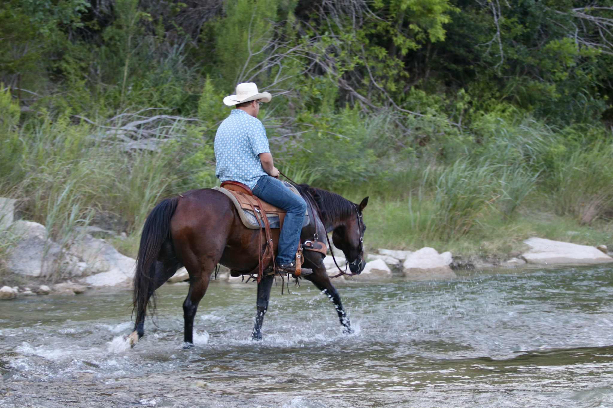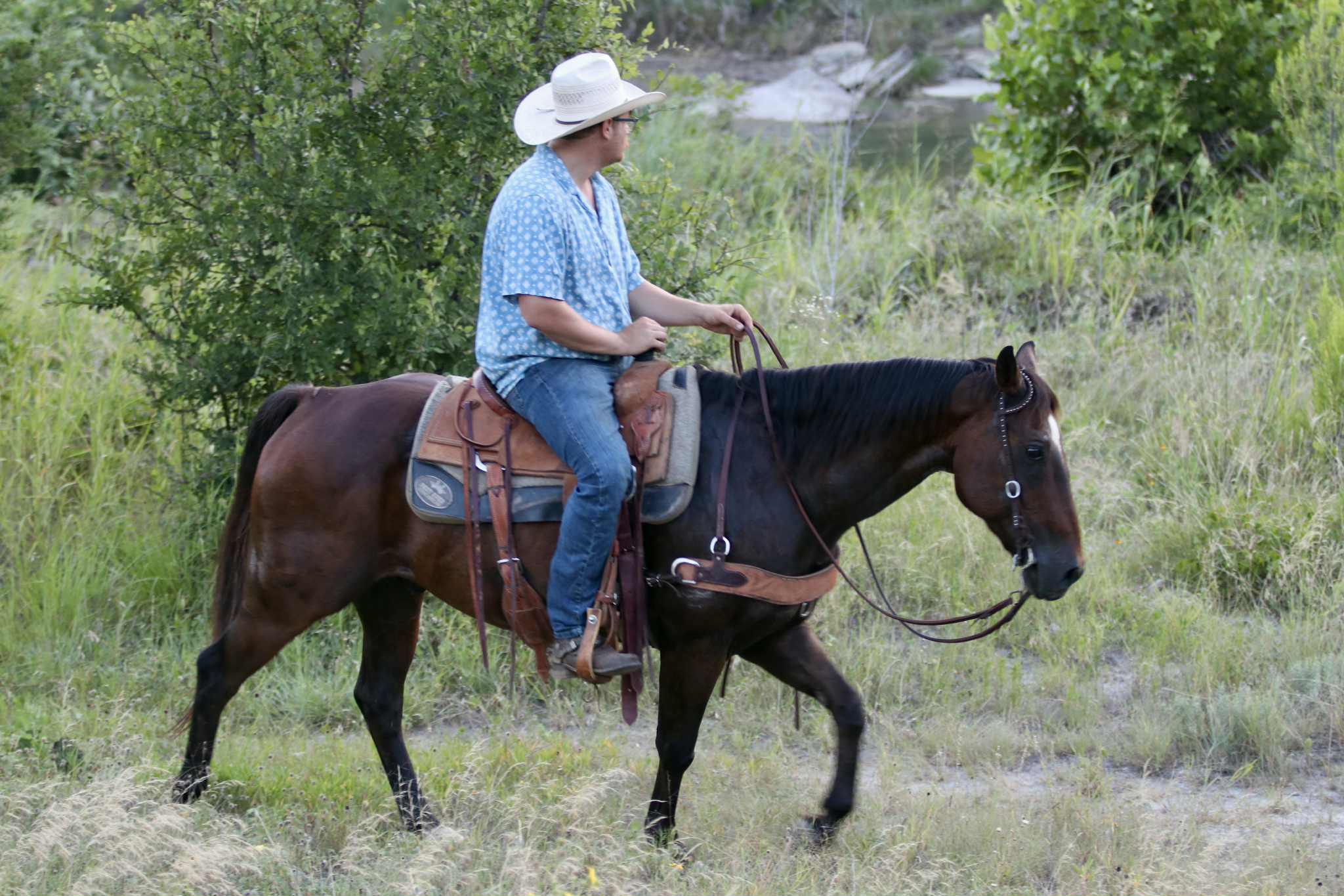 Kasey is the kind of gelding everyone wants in their barn. At 13 years old, standing 15 hands tall, and built correctly with a sharp bay coat, he’s not only easy on the eyes but also dependable, kind, and full of heart. This horse has more try and desire to please than most, and he will give you 110% every single ride. He is honest, reliable, and the type that never quits. Kasey is extremely easy to handle on the ground and under saddle. He stands quietly for saddling, grooming, and the farrier, and has excellent manners in every situation. He’s gentle, respectful, and truly a joy to be around. On the trail, Kasey is an absolute dream. He will go anywhere you point him and doesn’t hesitate when asked to cross water—he jumps right in like a fish! He’s sure-footed in rough terrain, confident in new environments, and level-headed whether you’re out alone or with a group. He’s also been day worked on, so he knows what a full day’s job is and will handle cattle and ranch work with ease. Kasey is just as easy to travel with as he is to ride. He loads and unloads without issue, hauls quietly alongside other horses or cattle, and ties to the trailer with patience while taking in new sights and sounds. At home, he gets along well in the pasture with geldings, mares, and even a mini pony, but he’s also content in a stall. Kasey is the total package—safe, seasoned, dependable, and versatile. Whether you’re looking for a trustworthy trail partner, a reliable ranch mount, or simply a well-broke gelding with a good mind, he is the kind you can trust and enjoy for years to come. Located in Lipan, TX. Nationwide shipping available – from Hawaii to Canada and anywhere in the U.S. Call or text Allan Morse 270-963-5491 for serious inquiries