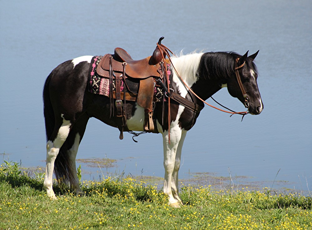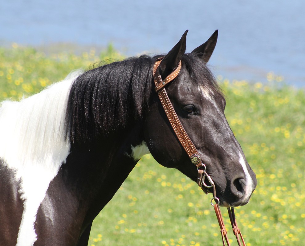 Magnums Warcry Chief is a stout built 14.3hh, 8 year old, Black Tobiano Registered Paint Gelding. Chief has earned his living mostly as a trail horse where he has been trail ridden in several states and he has been used on a small cattle ranch. He will cross creeks, ditches, logs and navigate rough rocky areas. Chief has been used to sort and doctor cattle. He is safe riding in traffic safe. He has a smooth jog, a nice lope, reins around and backs with ease! Chief is a confident horse on the trails and will lead the crew, head out alone or follow behind with no issues! He has been exposed to all kinds of wildlife such as deer or turkey or other animals like cows or dogs and will go anywhere that he is asked too. He has been rode many miles in the mountains of Eastern Kentucky and encountered every obstacle possible on the trail. He will go up or down even the steepest slopes, across deep creeks, over downed trees, and over all types of rough terrain while still being sure footed. If you’ve got cows to attend too or just need a good calm trail horse, Chief will do the job! Feel free to call Korey with any questions at 606-310-6341. Located in Whitley City, KY.