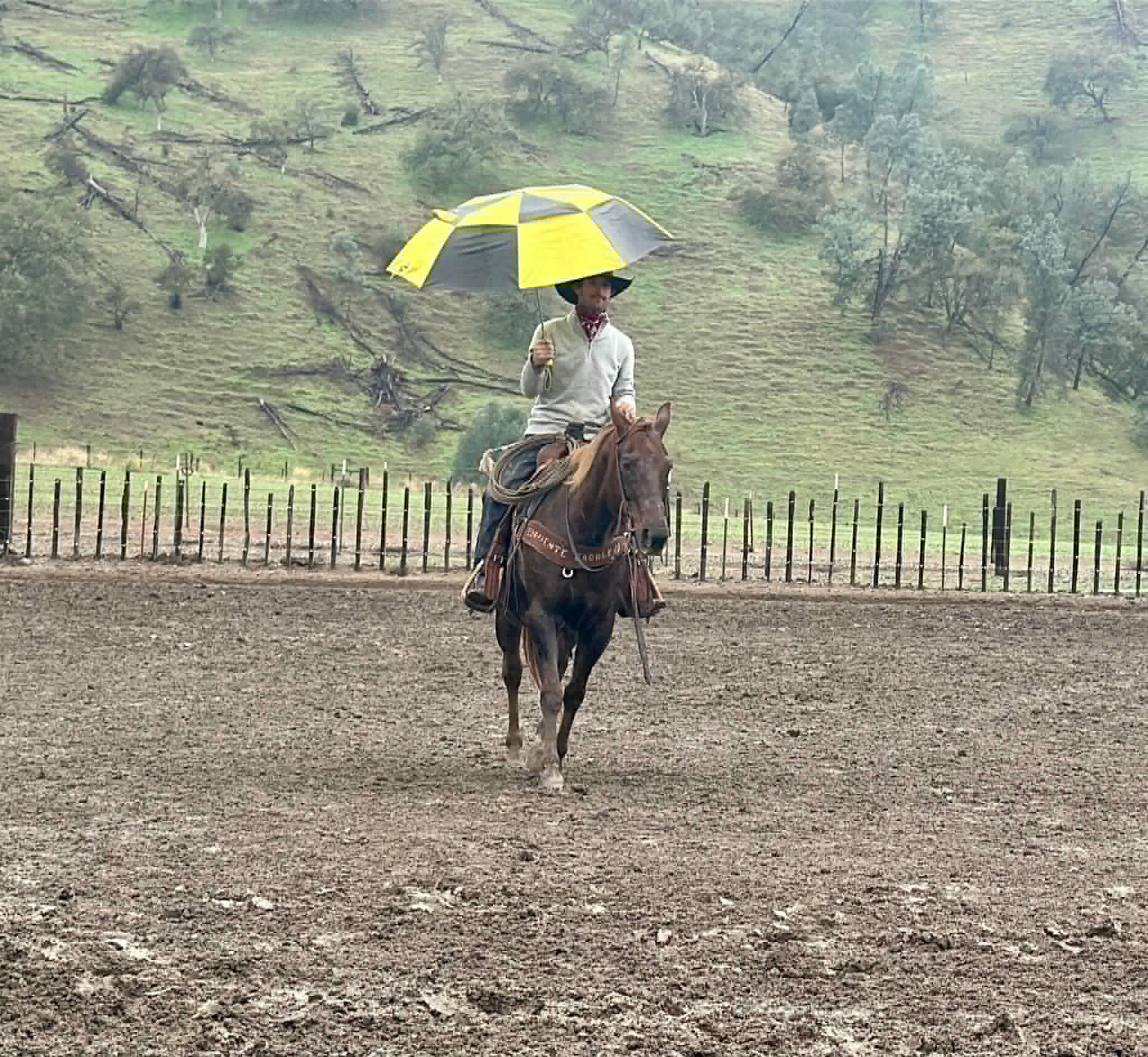 Safety is her superpower. Mary Poppins works around cattle without batting an eye and stands quietly at branding like she’s been nannying cowboys her whole life. On the trail, she’s confident and relaxed. Narrow paths, brush, water crossings, uneven ground—no fuss, no spook, no opinions. Just point her umbrella… we mean reins… and go.