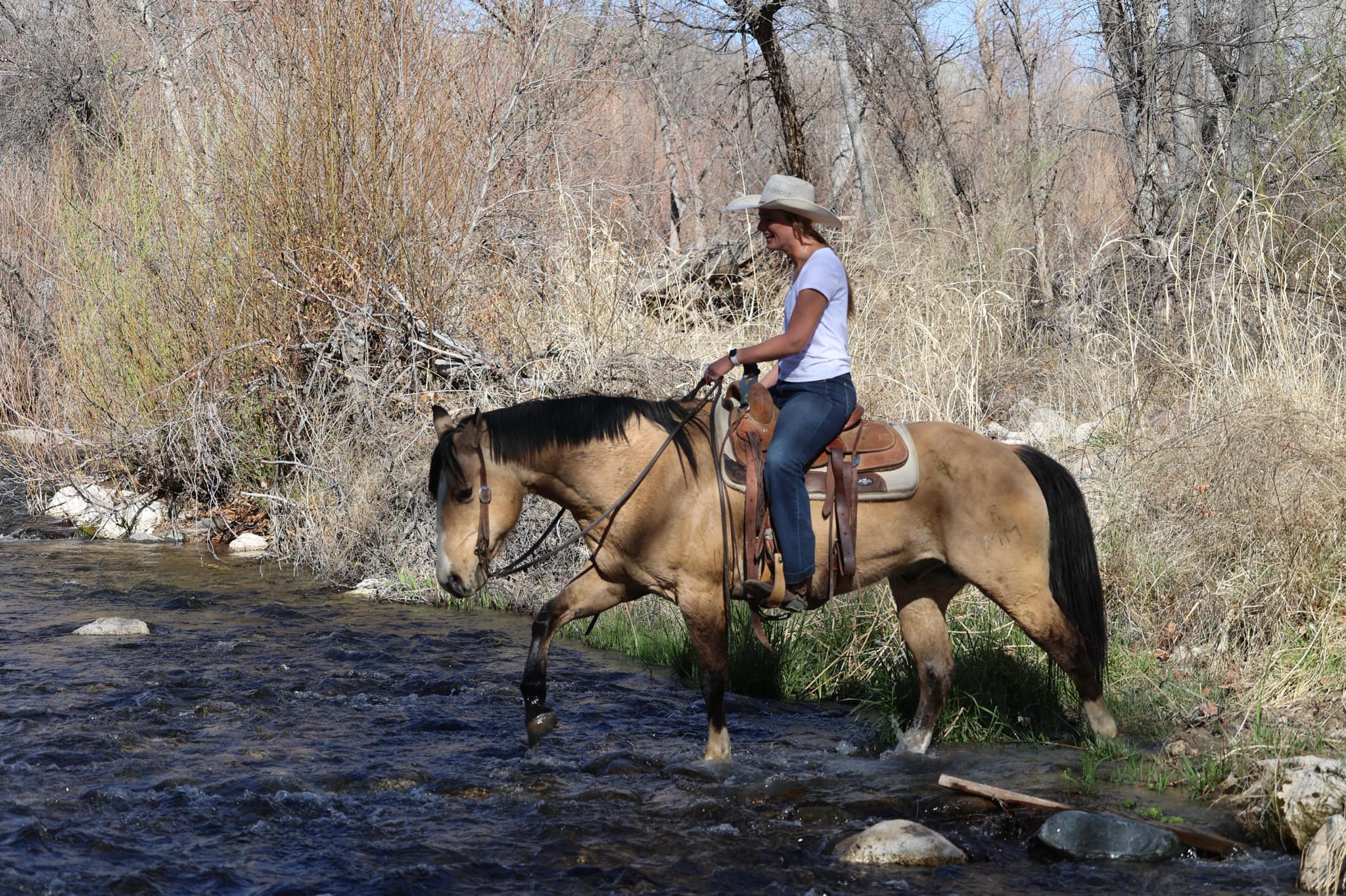 MQH Leo Command aka Commander is a 2015 model gelding standing 15hh. Commander is as gentle as he is handsome! If you’re looking for a flashy, stout made, surefooted gelding to hit the trails then look no further, Commander is your guy! Commander will cruise on down the trail never in a rush, trek through rough country, cross flowing waters, over fallen logs, up and down steep terrain, and mosey on through town without batting an eye and absolutely no spook. He will also walk, trot, and lope both ways in the arena. Commander is easy to catch and good to groom, saddle, bridle, bathe, and shoe. Will come with a clean coggins and health! Transport can easily be arranged anywhere in the US!! D/C Equine Services Dallas 804-822-2233 or Natasha 928-460-2625 Located in Camp Verde, AZ.