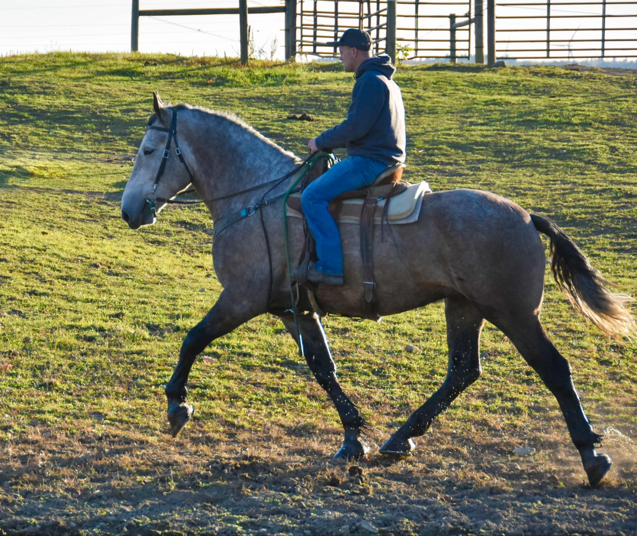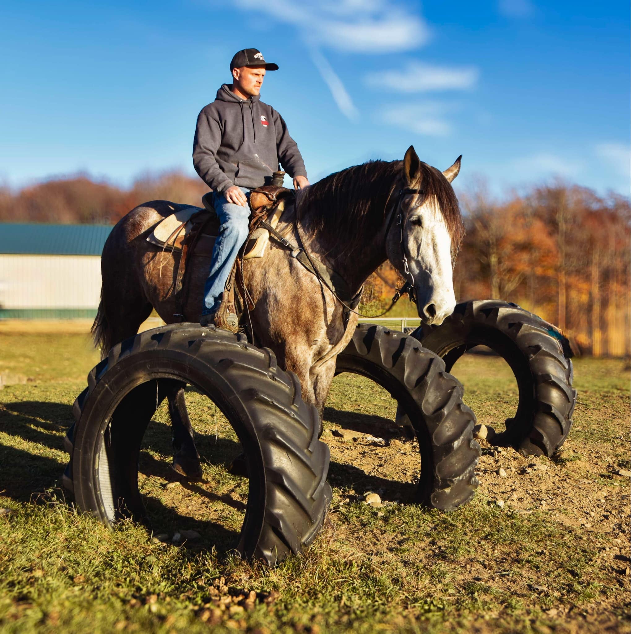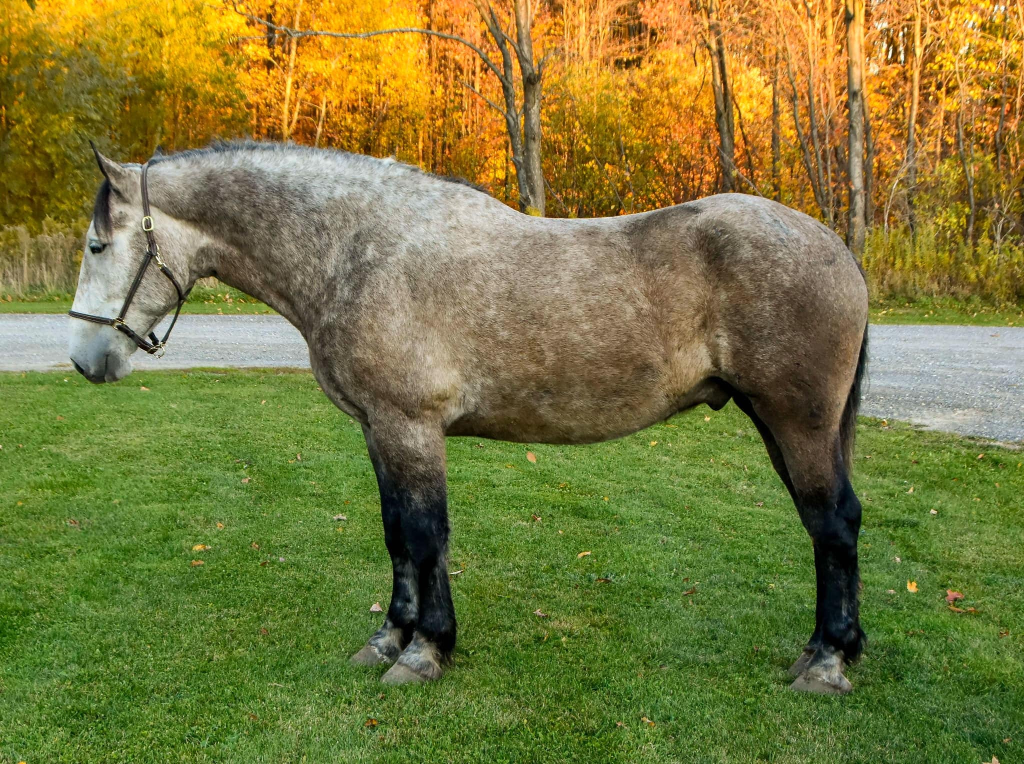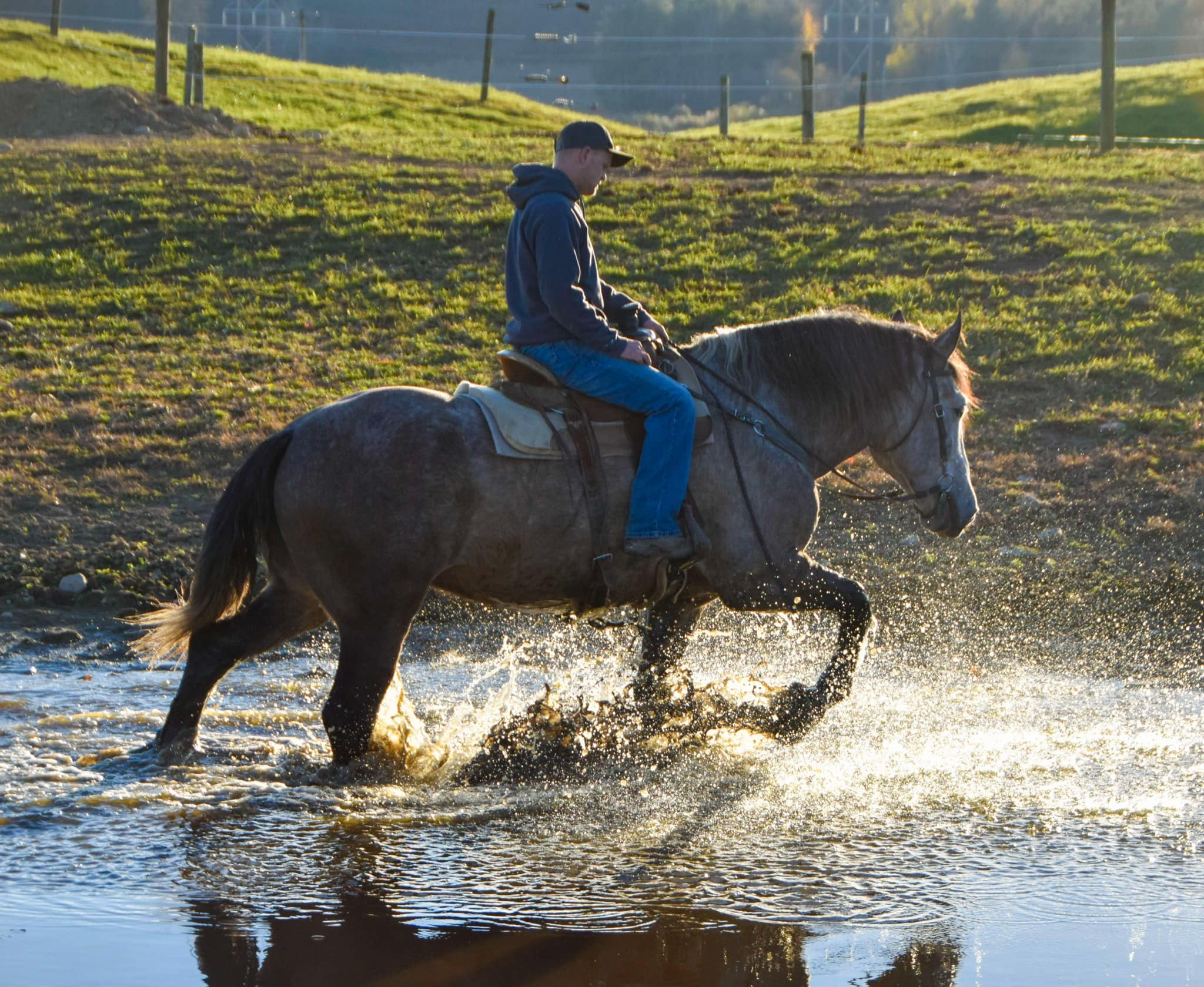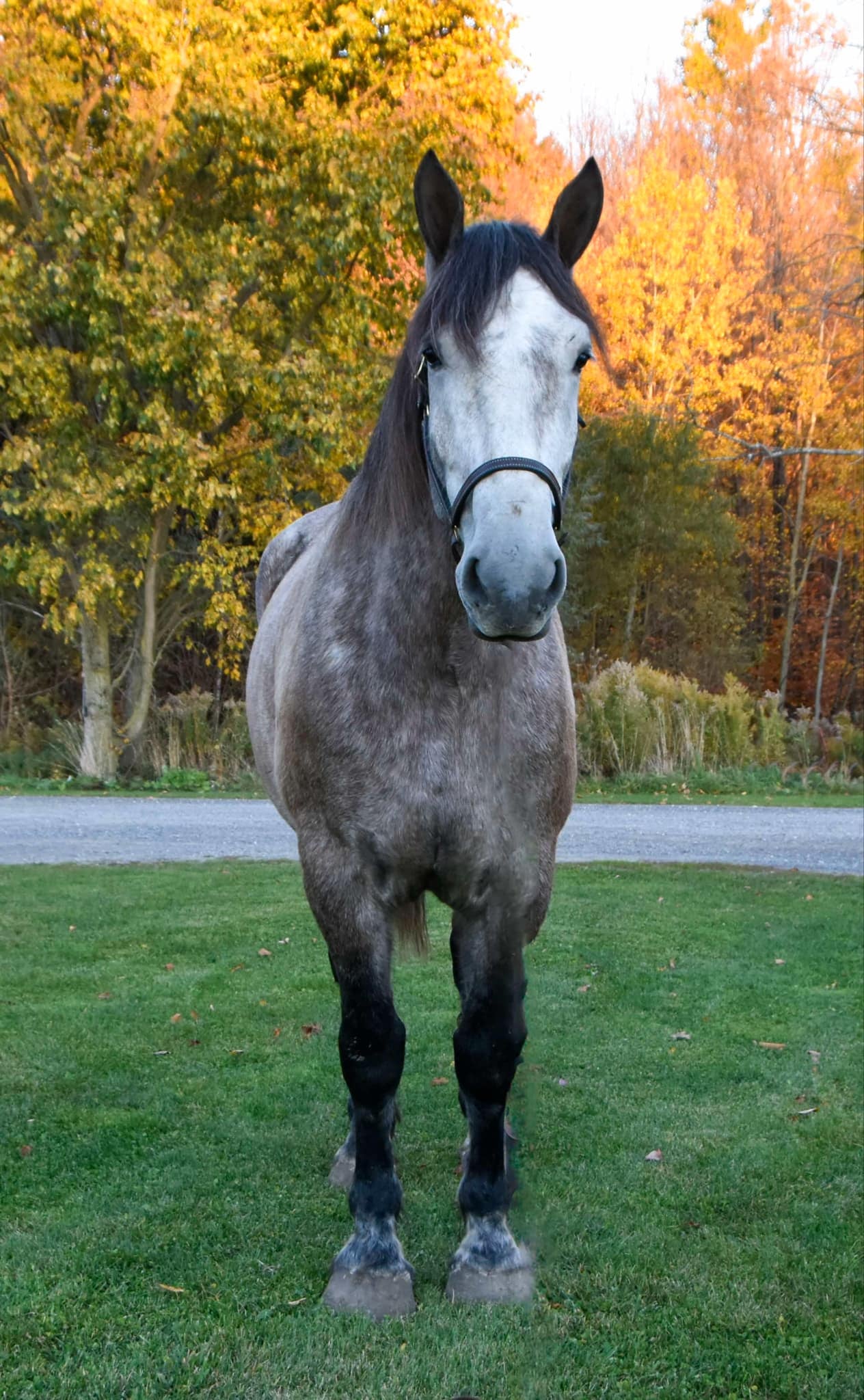 Noah is a 6-year-old draft cross gelding standing 17.3 hands. Being a big guy, he walks, trots, and canters with poise. He knows his leads and can canter a nice circle in the arena. He is easy to mount and dismount and stands perfectly still for the mounting block! Noah clips well, easily loads in the trailer, and stands like a gentleman for the vet. His ground manners are excellent; he will stand all day tied with no fuss. He has been exposed to various farm animals and gets along with everyone. Noah will cross logs, bridges, water, and anything else you may encounter on the trail without hesitation. He will trail ride alone or in a group; traffic doesn’t phase him. He will go Western or English. Noah can ride all day on the trail or stand around and be loved. He is a big puppy and loves attention. He is not a bully in the pasture and gets along with mares and geldings. We have put him through our obstacle course, and he does great with all the obstacles. Tarps, bull whips, hills, or pulling objects, nothing bothers him. Under saddle, Noah will side pass and back with ease. He is wearing shoes all the way around due to the rocky conditions around the farm. He easily picks up his feet, but we use a stock to shoe him. Noah sells a 100% sound with No vices! Visit our Facebook page, Wolcott’s Versatility Horses and Training, for more information on our horses. Contact Dayton at 585-734-0169 for more info on Noah! Located in Warsaw, NY.