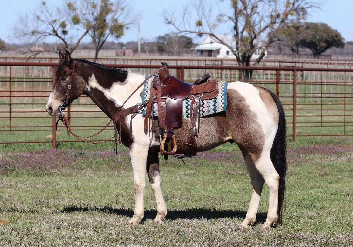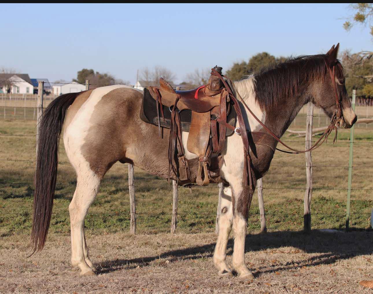 If you are looking for a good, solid, affordable gelding to add to your barn check out this one! Raja is a very solid grade paint gelding and stands at 15.1 hands tall and is 9 years old! Raja is built to last and has all the ability in the world. He is a blast to ride and has the smoothest gates ever! This guy will go absolutely anywhere you point him. Raja has been ridden outside on the ranch most of his life making him super fun and safe out on trail. Very easy to control, super fun ride! He has been around wildlife, blowing tarps, heavy equipment, barking dogs, and lots of other crazy! He loves getting attention, to be groomed and he loves his baths. This gelding loads/unloads in the trailer with ease and will stand tied up all day like a gentleman. This gelding is a pleasure to be around making him very desirable. He’s gonna turn heads and he will keep you safe! Located in Lipan Texas We can help arrange shipping anywhere in the US, Hawaii, Canada Please call or text Makenna Hartzell 817-659-3778 for more information