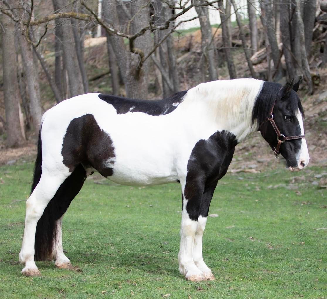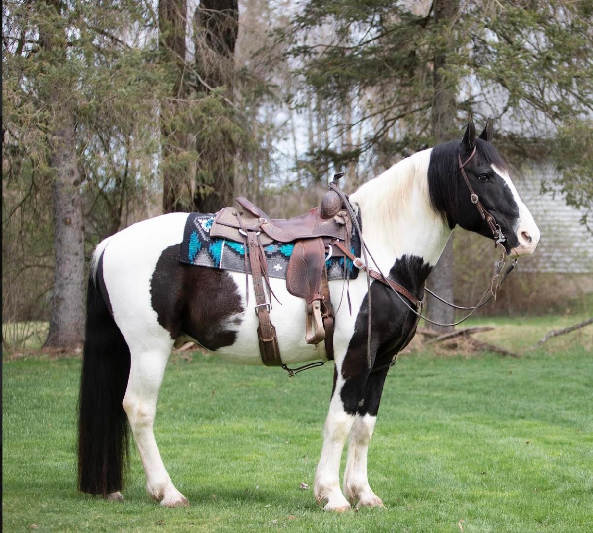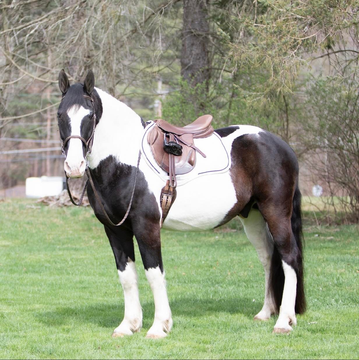 Rico is a 12 year old crossbred gelding standing 15 hands tall and wide that you won’t want to miss! This handsome gelding is truly the full package from head to toe! Rico has great conformation, clean legs, big boned and big hooves. He doesn’t have a single bump or blemish on him. He is kid tested and mother approved, if you can sit in the saddle you can enjoy this handsome gelding! Rico is a gentleman to work on and be around, stands quietly for the vet and farrier and is happy to stand patiently tied while you brush and saddle him up. Rico loads easily and rides calmly in the trailer, he unloads quietly at new places and doesn’t need to be lunged, just saddle up and ride off! He is easy to bathe/clip and pamper and is content in a stall and quiet in turnout- he is also very easy to catch. Under saddle Rico is a very uncomplicated ride, and undoubtedly one of the smoothest moving horses I’ve ever ridden. He is soft laterally, has an excellent “whoa” and moves off your leg nicely. He has been used in my lesson program for kids as young as 9 and my teen and adult rides have really enjoyed him too, he can take a joke and will try anything you ask! We have been riding him both english and western and have found he is versatile and happy in both disciplines. Out on trail he is quiet and confident and will go anywhere you point him. Rico is absolutely the easiest most safe beginner/husband/grandma safe trail horses I have ever put my leg over, quiet uncomplicated and bombproof and safe all day long. He easily navigates rough terrain up and down grades, through water, over downed trees and trail blazing through the woods. He has been exposed to cows and is naturally brave and curious to track them around. Rico will trot poles and takes a jump with ease. I believe this gelding would make a great mount for anyone looking for a quiet and simple horse to take front the arena to out on the trail and even into the show pen, his willing mind and calm demeanor make him a super adaptable and easy horse to get along with no matter the level of rider/handler. He sells sound without vices or limitations. Located in Everett, PA. Call Ben Hall 814-979-2046 with any questions.