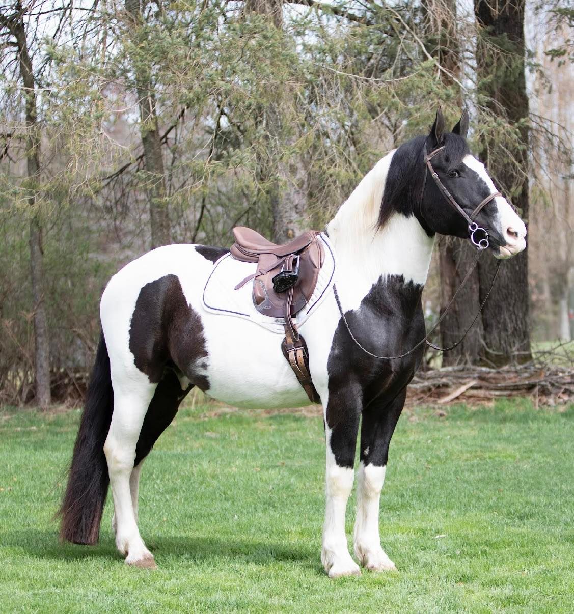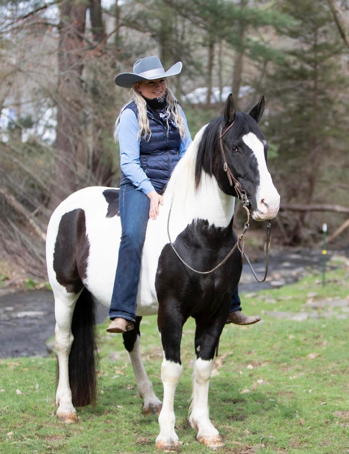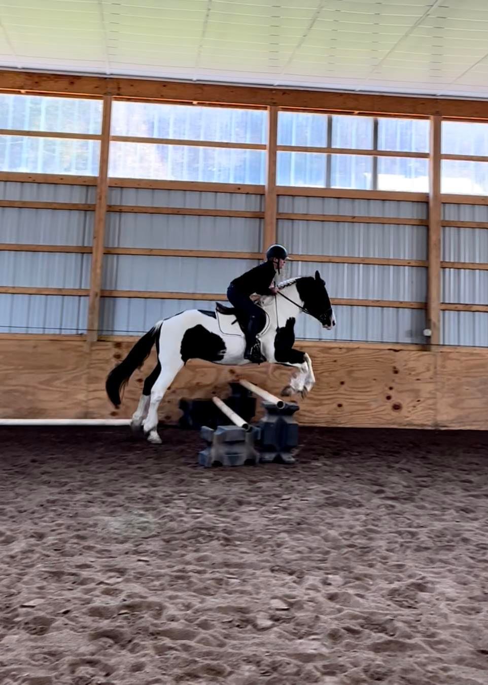 Rico is a 12 year old crossbred gelding standing 15 hands tall and wide that you won’t want to miss! This handsome gelding is truly the full package from head to toe! Rico has great conformation, clean legs, big boned and big hooves. He doesn’t have a single bump or blemish on him. He is kid tested and mother approved, if you can sit in the saddle you can enjoy this handsome gelding! Rico is a gentleman to work on and be around, stands quietly for the vet and farrier and is happy to stand patiently tied while you brush and saddle him up. Rico loads easily and rides calmly in the trailer, he unloads quietly at new places and doesn’t need to be lunged, just saddle up and ride off! He is easy to bathe/clip and pamper and is content in a stall and quiet in turnout- he is also very easy to catch. Under saddle Rico is a very uncomplicated ride, and undoubtedly one of the smoothest moving horses I’ve ever ridden. He is soft laterally, has an excellent “whoa” and moves off your leg nicely. He has been used in my lesson program for kids as young as 9 and my teen and adult rides have really enjoyed him too, he can take a joke and will try anything you ask! We have been riding him both english and western and have found he is versatile and happy in both disciplines. Out on trail he is quiet and confident and will go anywhere you point him. Rico is absolutely the easiest most safe beginner/husband/grandma safe trail horses I have ever put my leg over, quiet uncomplicated and bombproof and safe all day long. He easily navigates rough terrain up and down grades, through water, over downed trees and trail blazing through the woods. He has been exposed to cows and is naturally brave and curious to track them around. Rico will trot poles and takes a jump with ease. I believe this gelding would make a great mount for anyone looking for a quiet and simple horse to take front the arena to out on the trail and even into the show pen, his willing mind and calm demeanor make him a super adaptable and easy horse to get along with no matter the level of rider/handler. He sells sound without vices or limitations. Located in Everett, PA. Call Ben Hall 814-979-2046 with any questions.