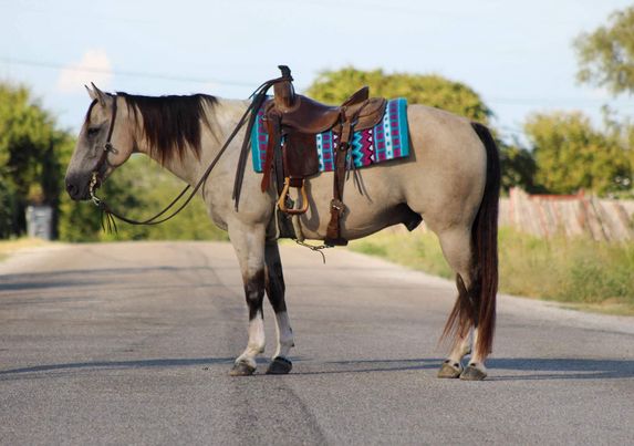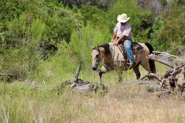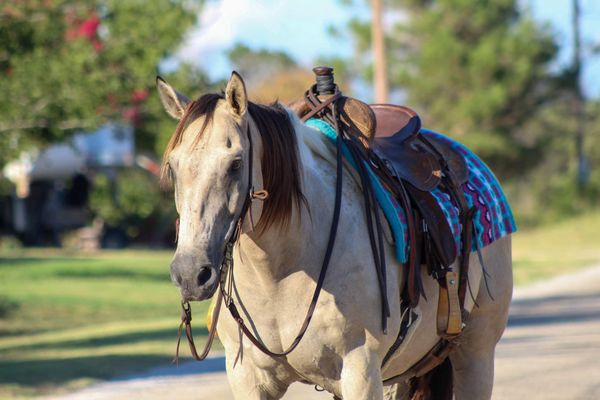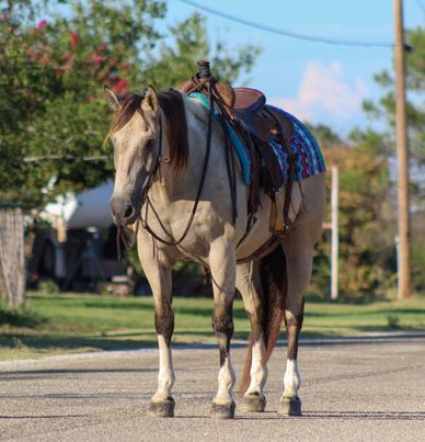 Everyone meet “Rio” this guy has a heart of gold! Rio is a 12 year old buckskin paint gelding standing 15 hds tall . Rio will check all your boxes when looking for your next forever partner . He’s stout made , gorgeous color and is always ready to go out and get the job done . Rio has been used around the ranch to gather cows , check fences and load trucks on . He loves to hit the trails and will go all day long for you . He is a very confident guy and always willing to please. Rio goes wherever you point him , he’s been hauled on many over night camping trips to the national parks. He will go up and down hills , cross logs , bridges , and from the smallest creeks to the deepest water he will walk right in every time with zero hesitation. He is not bothered by campers and wildlife he handles it all with ease . Rio rides out in a group or alone , he will go wherever you place him in the group front , middle or the end . He will ride out down the busy hwy for you with heavy traffic including semi trucks flying by. In the arena he will walk , trot and lope circles always picking up the correct leads . He is very user friendly and always stays gentle taking care of his rider . Rio speaks for himself , he’s a super sweet gelding with a heart the size of Texas . Rio is the complete package that doesn’t disappoint. He is easy to catch , stands tied quietly , stands for the farrier , loads and unloads off the trailer like a perfect gentleman. He stands to be mounted, easy to saddle and bridle never giving you any issues. Contact us to come try him, or we can set up a FaceTime also. If you need help with transport don’t hesitate to ask we have a list of reputable haulers that can get him safely to your doorstep world wide. Located in Stephenville, TX. Contact M $ Performance Horses Michelle 661-817-9120 with any questions.
