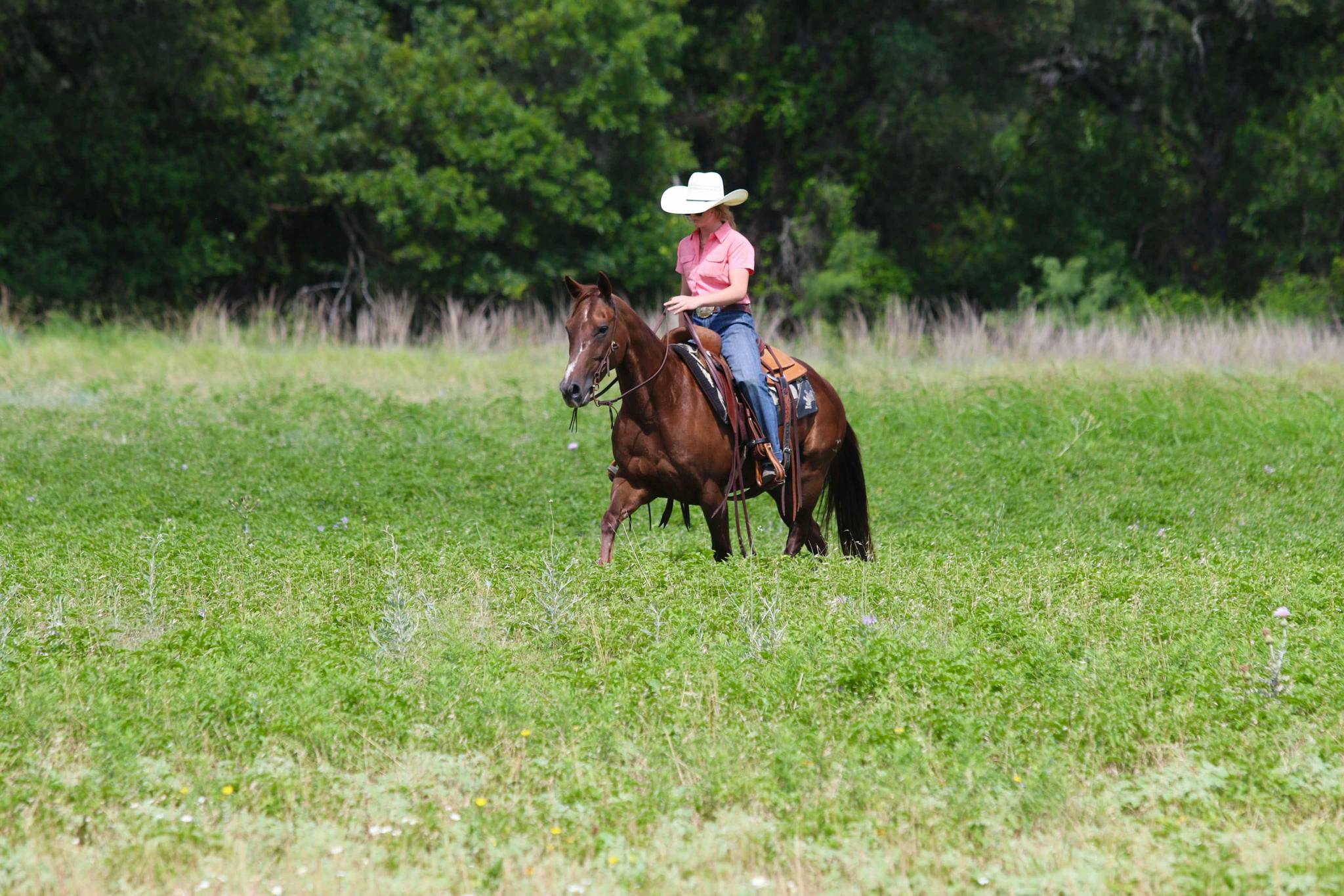Tina is very handy broke, has a nice turn around, big stop and super light in the face! She moves off your legs and lopes around smooth as butter right out of her tracks.
