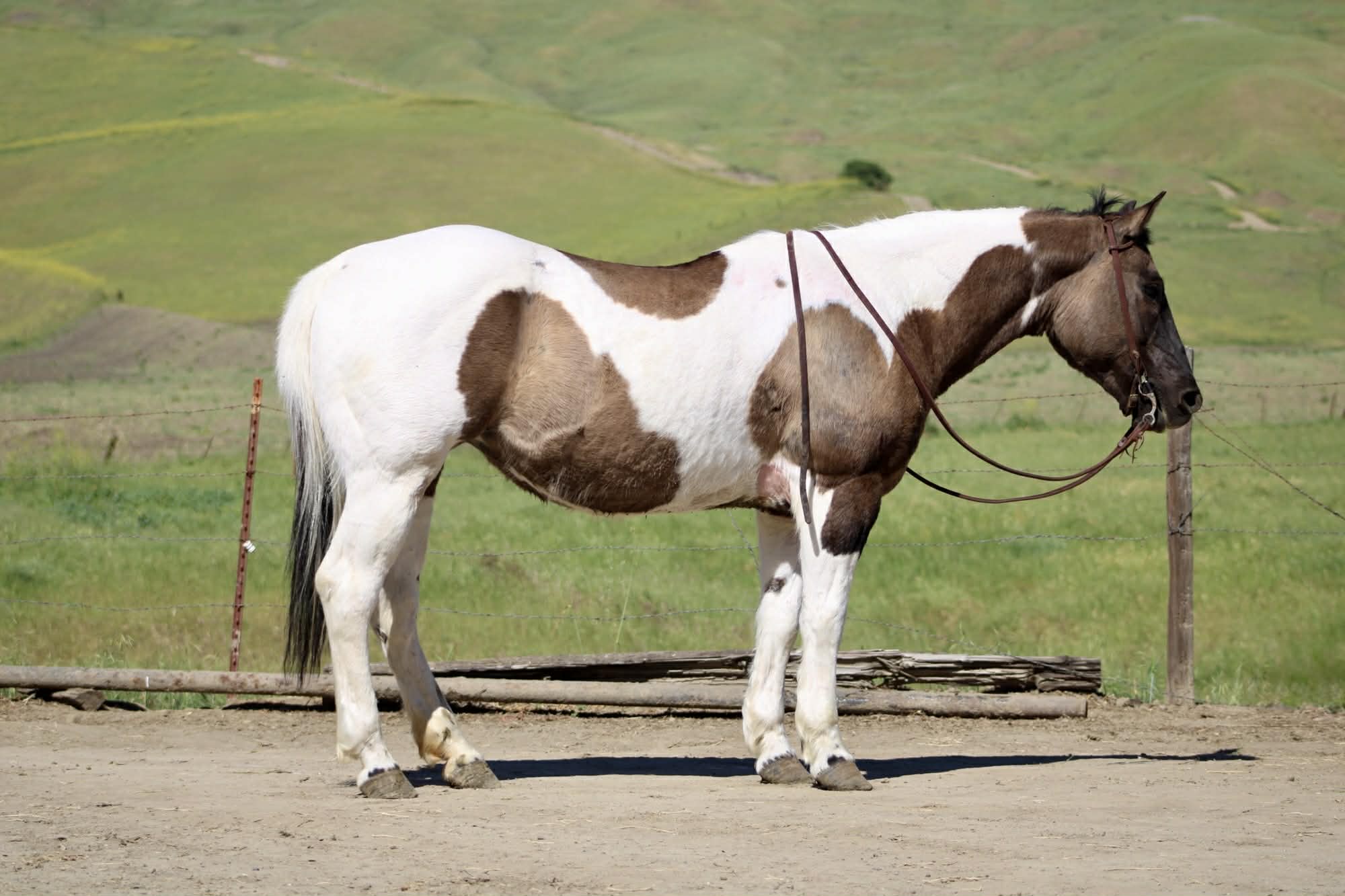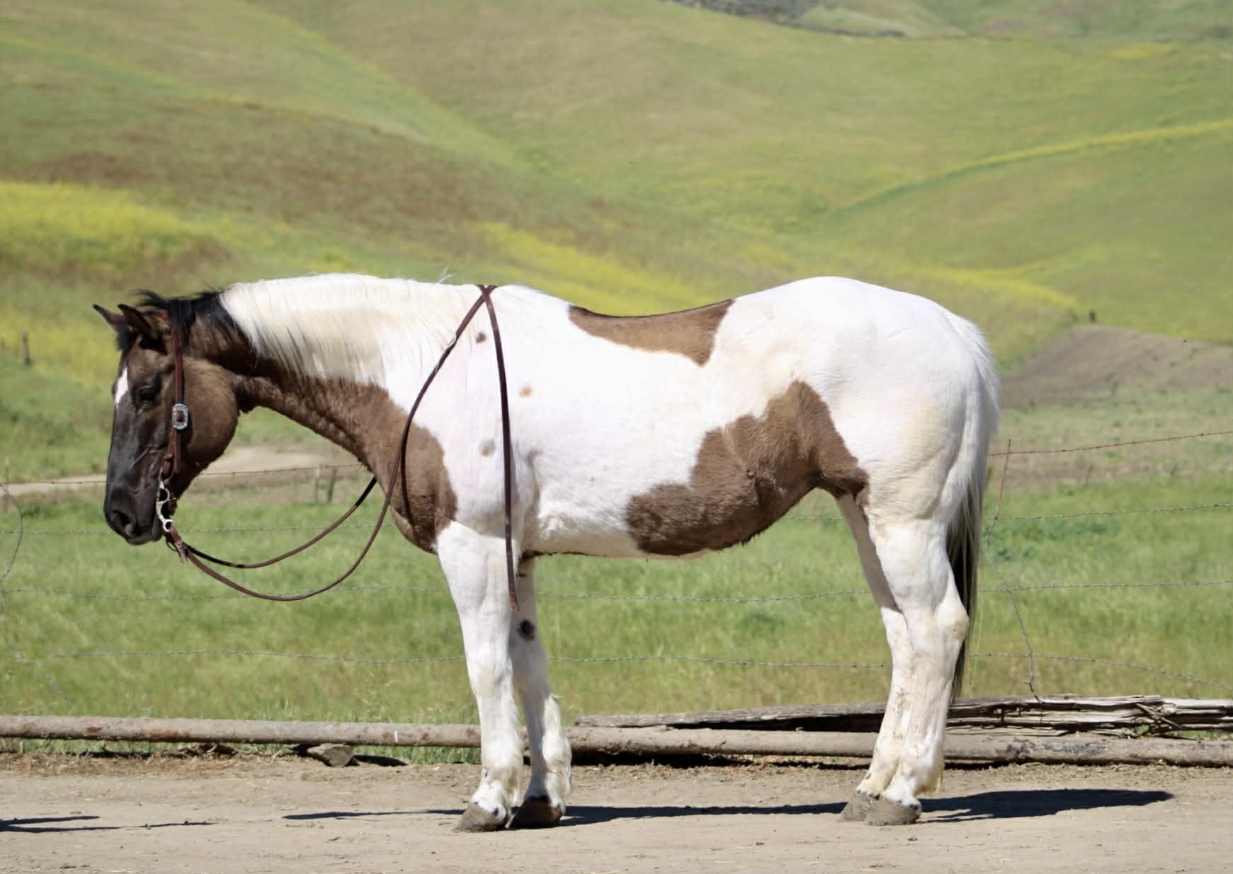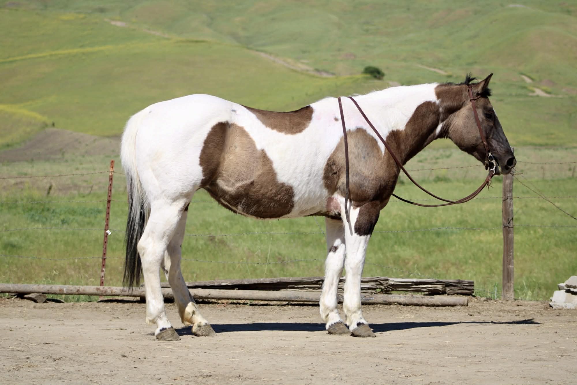 Sage is a 7-year-old, 15HH grulla and white Paint mare, built as thick and wide as she is tall. She has a friendly personality and a very steady mind. She has been raised in the Pacific Northwest her entire life, making her extremely sure-footed and confident on all kinds of terrain. Sage has plenty of trail experience and is happy to ride out alone or in a group, traveling along at a relaxed, easy pace. She has been exposed to overnight camping, water crossings, bridges, wildlife, and all types of farm animals including dogs, chickens, and cows, and she handles new situations with a calm, willing attitude. She is not finished in a specific discipline but has a solid foundation in both the arena and on the trail. In the arena, Sage knows her leads, has a nice stop and reverse, and is very easy to guide. On the trail, she stays on track, watches her footing, and doesn’t get bothered by new environments. She does well with time off and does not come back fresh or silly, which makes her an easy, low-maintenance partner. Sage has great ground manners—she stands tied quietly, is easy to groom and tack up, picks up all four feet without fuss, and loads and hauls in the trailer with no problems. She is a safe, sensible mare with a sweet demeanor who wants to be your friend and would make a dependable trail partner or a great all-around horse for someone looking to continue her training in any direction. She is located in Bitterwater, CA. For more information please contact Cheyenne at 831-537-8746