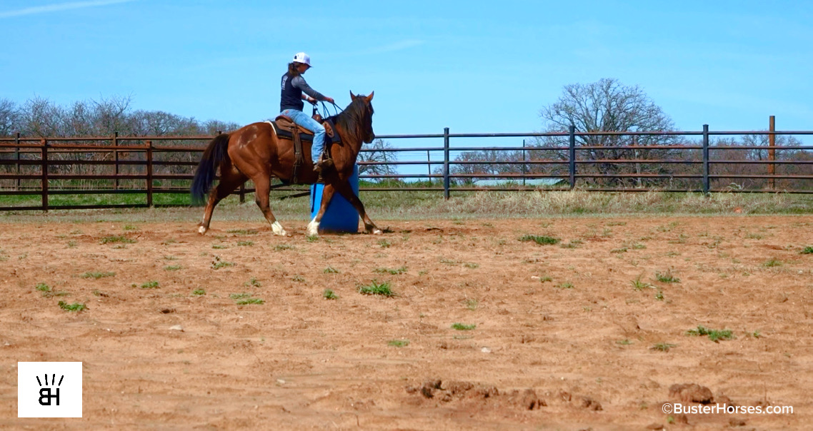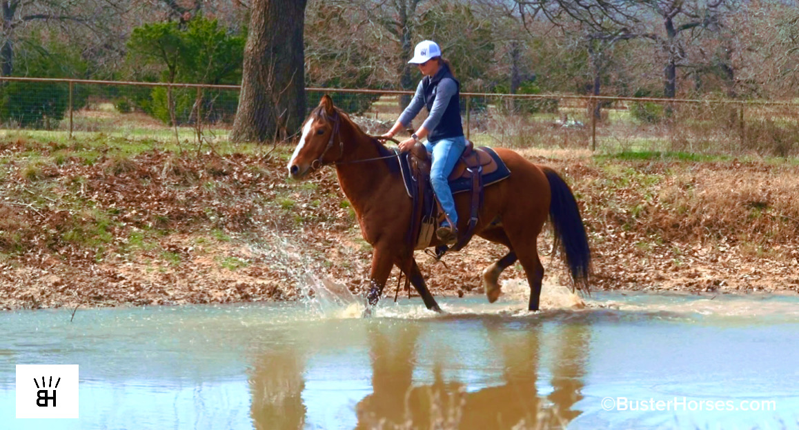 Seven is a really cute five-year-old bay gelding with three white socks, a blaze, and a unique birthmark on his right hip that makes him easy to recognize. He is extremely kind-natured and currently one of our riders’ absolute favorites to swing a leg over. Seven gets better with every ride and truly enjoys one-on-one attention, bonding closely with his rider. He was recently used on Paramount sets as a background horse and handled the exposure well. He is quiet-minded but still young, so he does best with a rider who will give him a job and continue progressing him. Seven has a great forward stride, big bone, and the athletic ability to go multiple directions, whether that’s barrels, roping, ranch work! He has a nice stop, an easy way of going, and now rides relaxed on a loose rein and in a frame. He is confident out on the trails alone and just as happy in a group, covering ground with ease and enjoying having something to do. On the ground, he is easy to catch, lead, load, and haul, stands relaxed to saddle and bridle, and stands flat-footed for mounting and dismounting. He has no vices or bad habits, is easy to bathe, and has been great for the vet, farrier, and dentist. He just received a fresh set of shoes, was recently power-pack wormed, and saw the dentist last week – so he is current and ready to go. If you are looking for an affordable spring project with all the hard work already done and just the right age to polish and finish your way, don’t overlook Seven. We will continue riding him right up to sale day and, we will post updated video footage. Call Ashley with Buster Horses 214-605-7174 MORE pictures and videos at: BusterHorses.com/Seven Located in Weatherford, TX ~ West of Fort Worth, TX 1 hour from Dallas / Fort Worth International airport …and we can help with quickly arranging affordable shipping to any buyer’s location ~ He is an easy day trip, or fun overnight trip to come and try out, from anywhere! We are experienced, knowledgeable sellers, and we can help with quickly arranging affordable shipping to any buyer’s location – we have experience shipping worldwide – including regularly to Hawaii, Canada, Mexico, Europe, and South Africa.