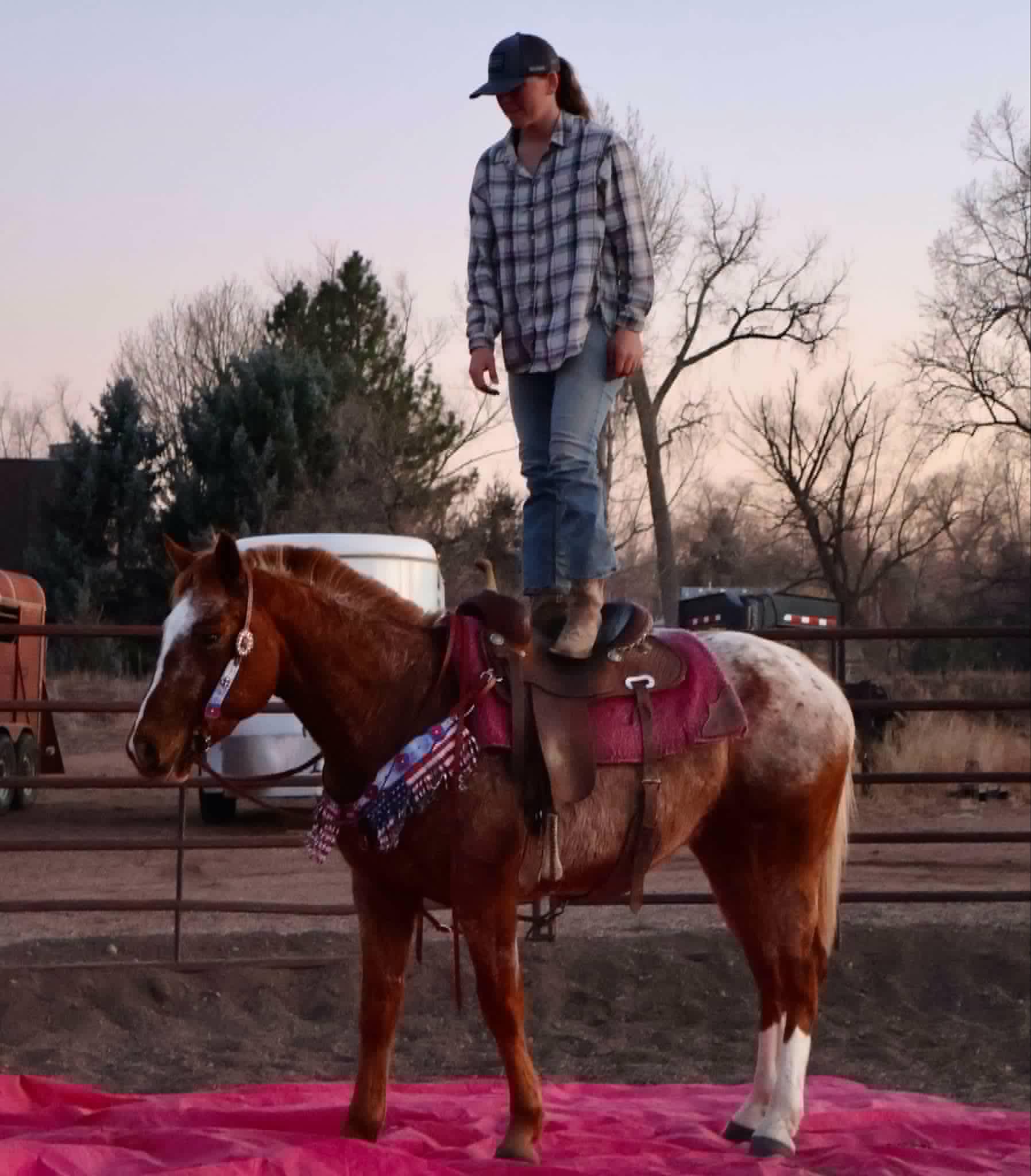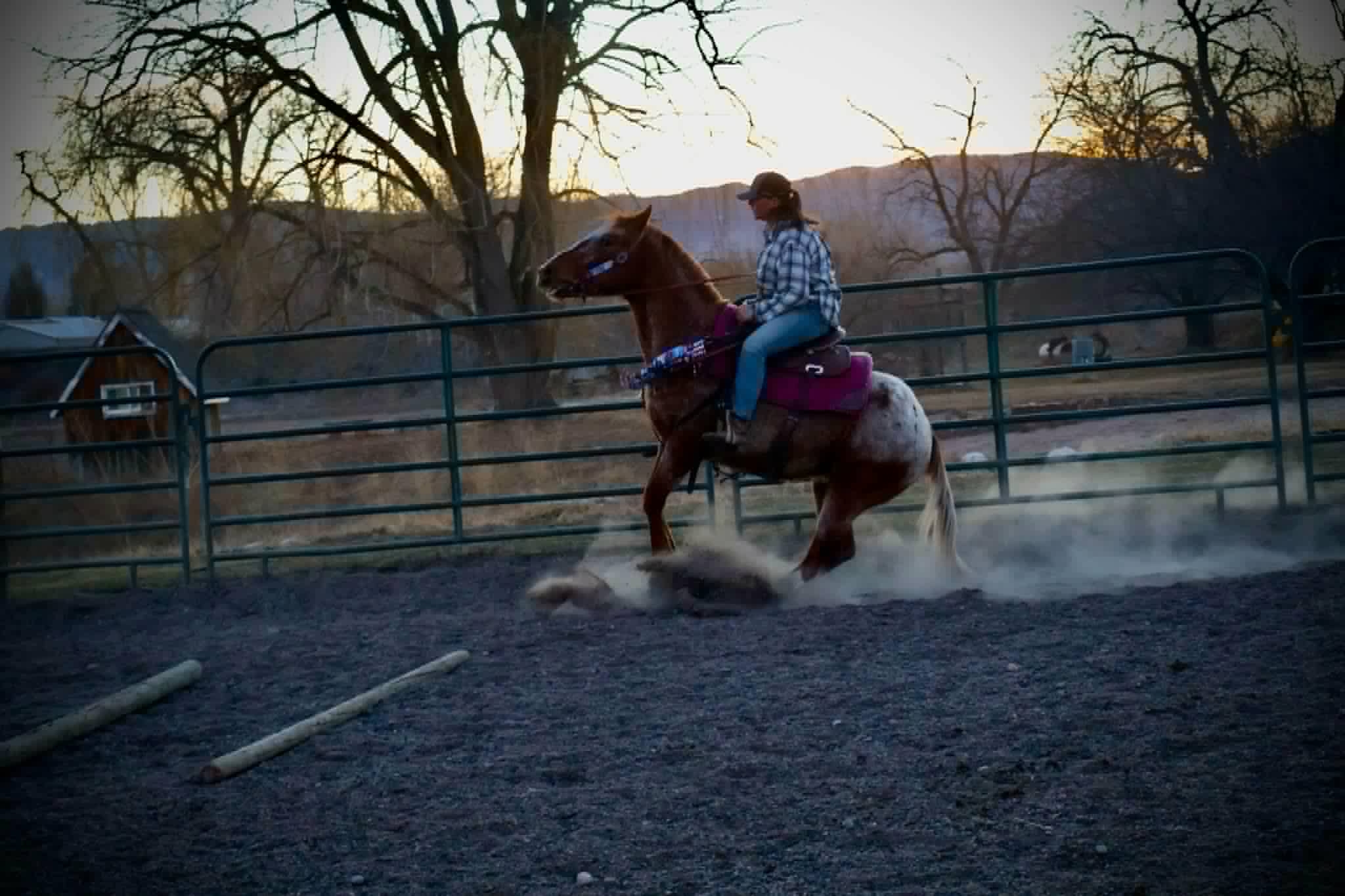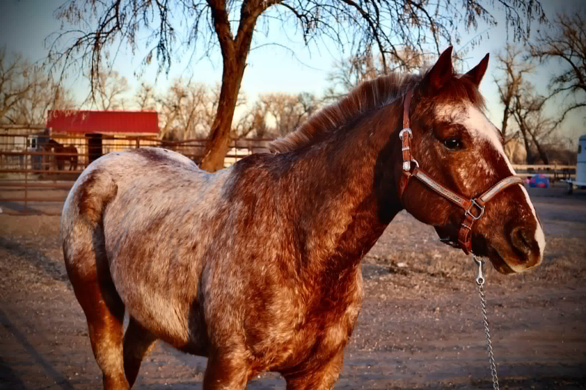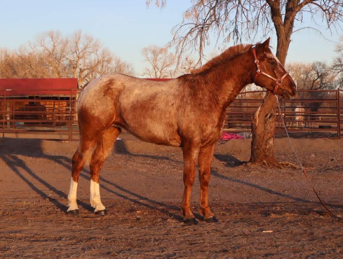 Simba is an absolutely stunning 14.2h, 6 year old red roan Appaloosa gelding with a HUGE heart and a ton of try! This gelding is absolutely genius, picks up on everything you teach him quickly and willingly, is extremely athletic and supple and is also safe for younger riders!! Simba knows how to “pick you up” at the block, knows how to bow and lay down on command, is working on the smile and absolutely loves people and other horses! Simba has a nice walk/jog/lope, a quick stop and rollback, knows how to collect up and hold himself and knows how to sit down off of just your voice and seat! Simba is also a trail wiz! He absolutely loves being out and about whether it’s with a group of horses or by himself, He is trustworthy and reliable every adventure. Simba has been ridden right next to highways and busy streets with not a care in the world, he’s been by bikes, trains, runners, and all of the hectic town life! We have taken Simba to the drive through, straight through downtown Fort Collins and even up onto some rugged mountain terrain! On top of Simbas arena and trail prowess he also has really loved his time in an English saddle, he is started over fences and has been hauled to a couple different cross country courses! Simba has a lot of try and really enjoys learning new things. Whether you’re wanting to go out and ranch on him, take him through town or pack up into the mountains, Simba is up for the adventure! Located in Fort Collins, CO. Contact Dynamite Horses Thea 970-632-3644 with any questions.