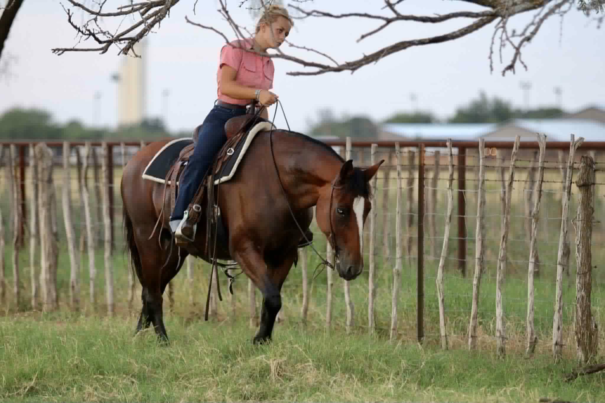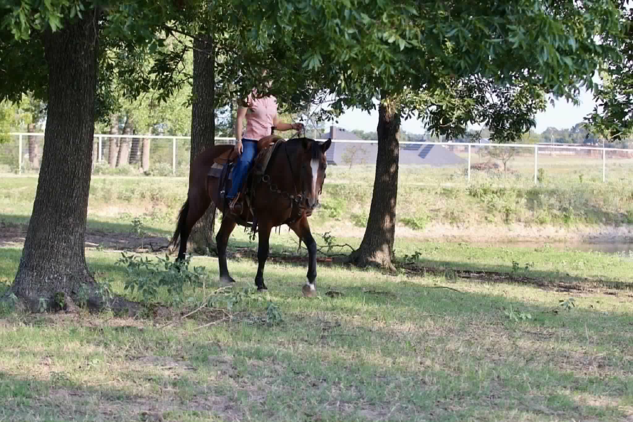 – All-around type – from pleasure rides to lessons, she’s versatile enough to fit into nearly any program. She’s the type you can pull out of the pasture after time off, saddle up, and ride off without a fuss. Horses like her don’t come along every day – safe, versatile, and with the cutest personality you’ll find. If you’re looking for a sweet, honest partner who will take care of you every time you swing a leg over, this 13-year-old bay mare is the one. Located in Stephenville, TX Blair Mabry 931-398-4296