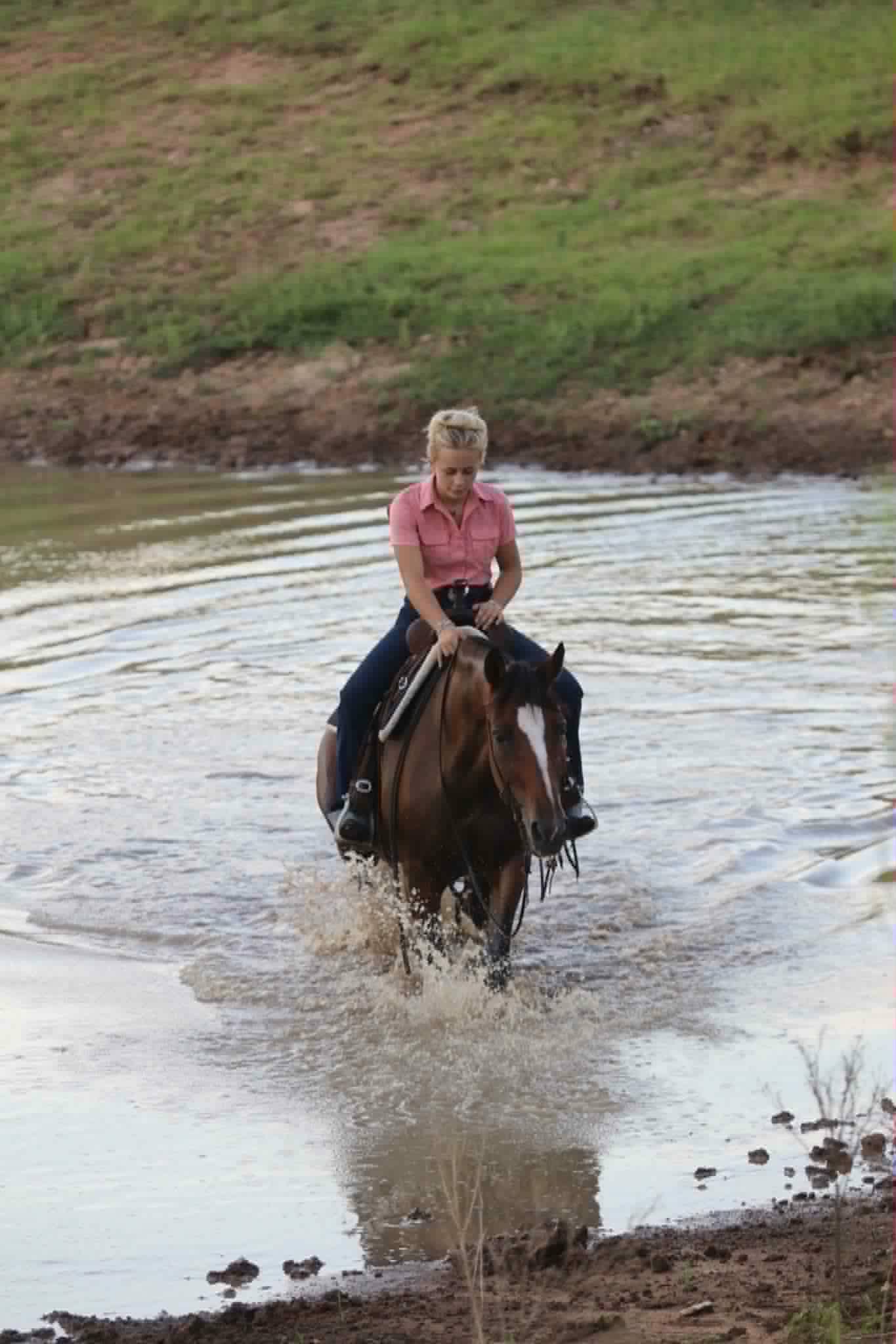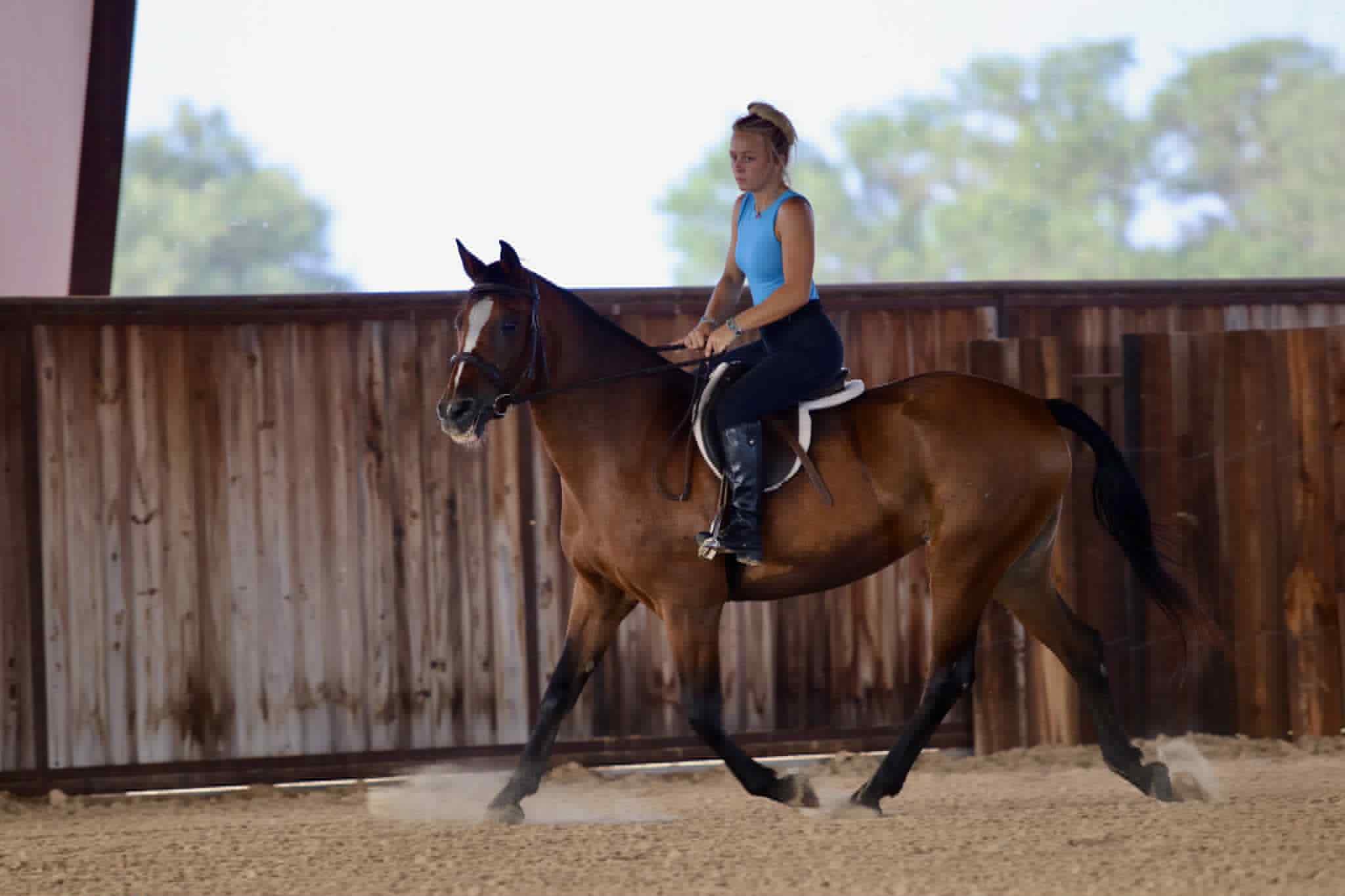 – Personality plus – she’s friendly, gentle on the ground, and loves attention. Grooming time is just as fun as riding with this girl.