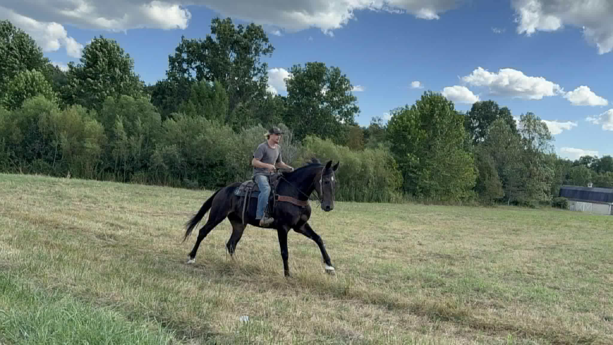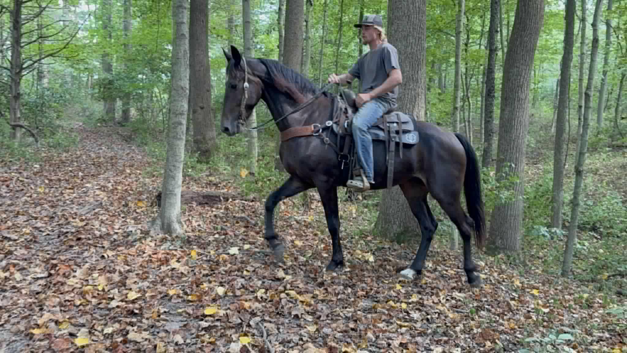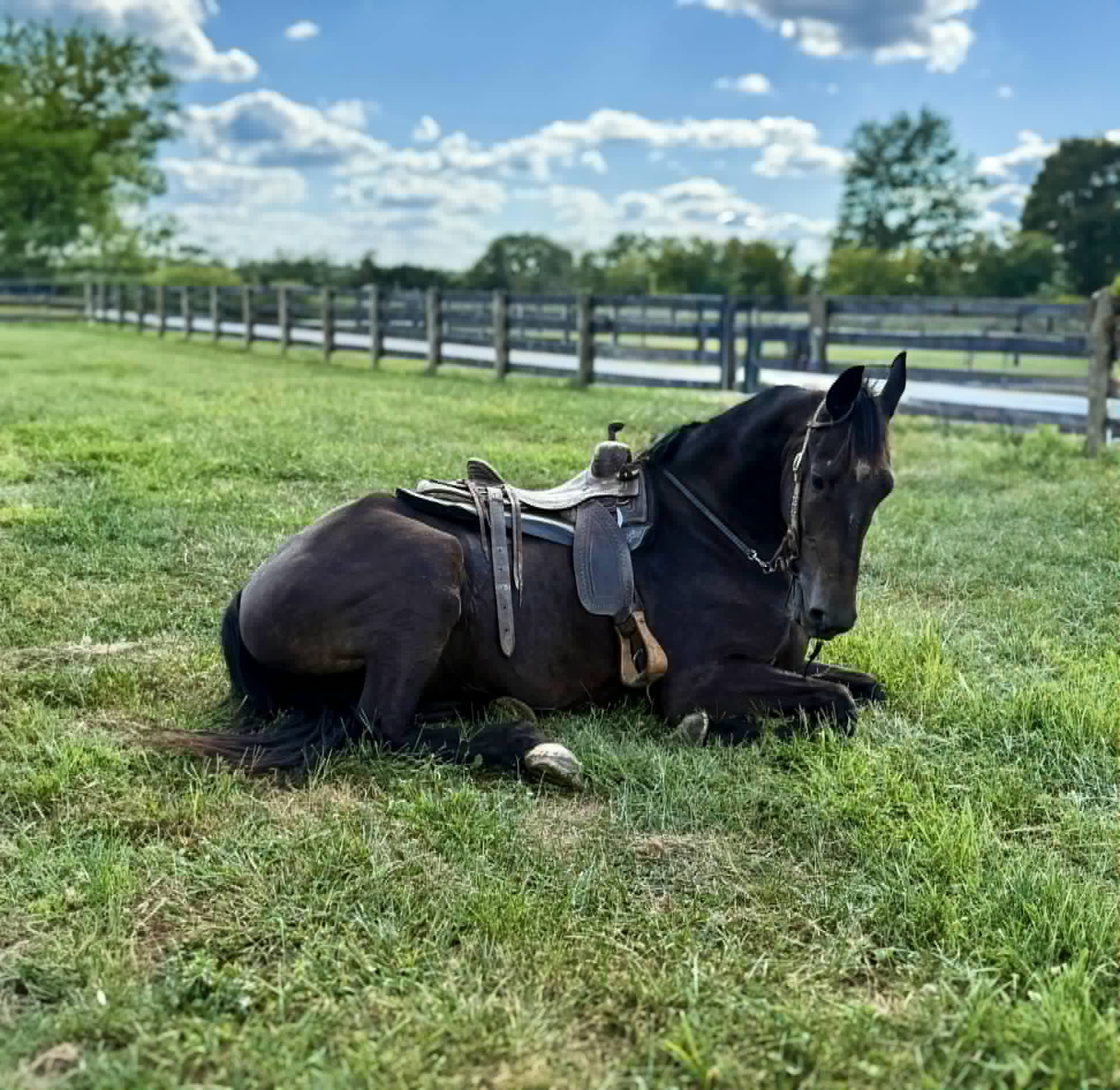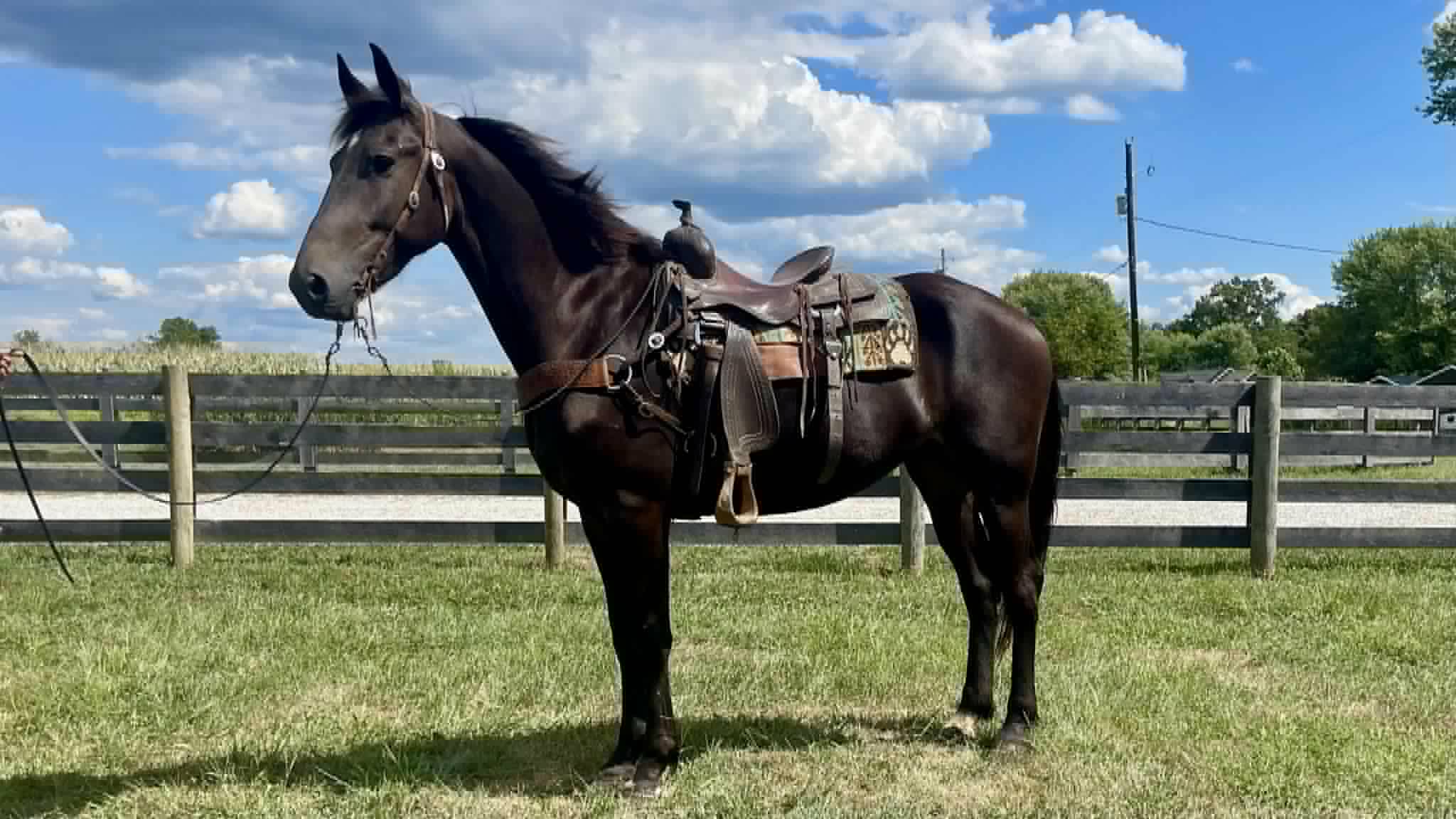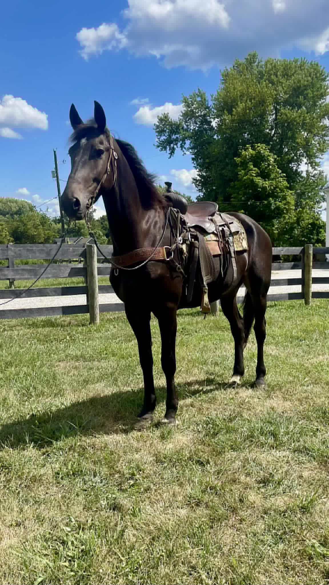 Titan is a handsome 16.3 hand, 5 year old friesian / Morgan cross gelding. Titan is a 1 owner horse and is absolutely gentle. This horse is not only big in size but big in heart as well. He absolutely loves people and will follow you around at liberty. Titan can go months with out being ridden and still be the same horse when the time comes to ride. He has had years of training and it absolutely shows. He has an awesome collected lope, neck reins and backs up with ease. He is phenomenal on the trail, no spook, is super self confident and is sure footed in every step he takes, Titian has been train to bow, lay down and sit on command, on top of his impressive riding skills Titian is always broke to drive in a cart. He is traffic safe and ALWAYS aims to please. Call Zach Brandenburg for additional information 513-508-3684 Moscow, OH.