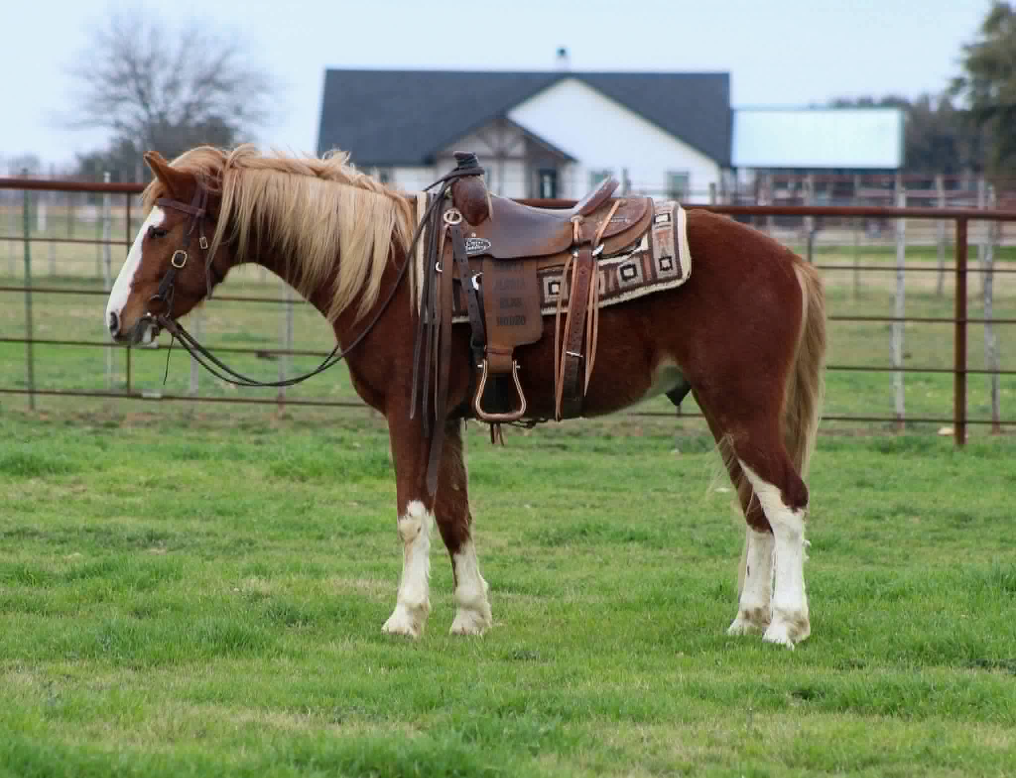 Here’s your chance to own a piece of American History! Meet Tomahawk, a charming 4-year-old branded mustang gelding who stands at a perfect 14.0 hands tall. With all the beautiful chrome you could ever want, he’s not just a looker—he’s a sweetheart too! Tomahawk has the kind of easy-going personality that makes him a joy to be around. Always eager to please and ready to learn new skills, he’s the perfect partner for anyone looking to bond with a horse and grow with. Tomahawk has had an excellent start and has been exposed to a variety of experiences. He’s been used weekly to pen back cattle at the sale barn and bring up roping steers at the practice pen. His skills include walk, trot, and loping circles, and he’s soft in the face, breaking at the pole nicely. Whether you’re riding down the trails or taking a stroll through town, Tomahawk is up for the adventure! This gentle guy is ready to find his lifelong partner—could that be you? He’s also gentle enough for a handy kid looking to train their next winner, making him a fantastic choice for aspiring young riders. Need help with transport? No worries at all! We have a list of reputable haulers who can get Tomahawk safely to your doorstep, whether you’re in Alaska, Mexico, Hawaii, Canada, or anywhere in between. Don’t miss out on this incredible opportunity to bring Tomahawk into your life! Located in Stephenville, TX. Contact M $ Performance Horses Michelle 661-817-9120