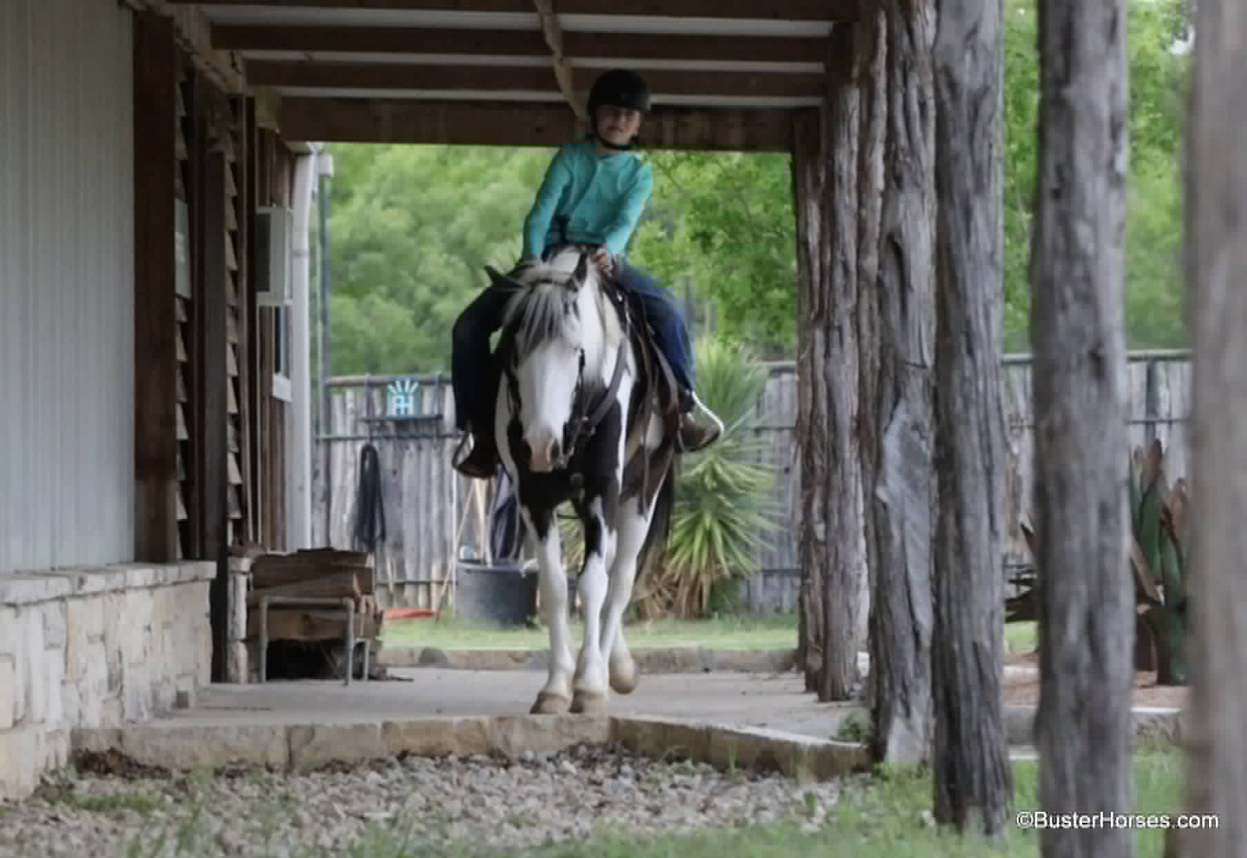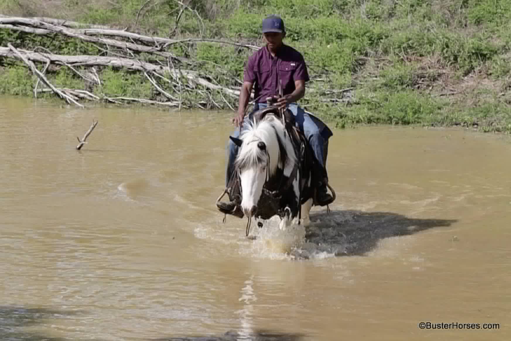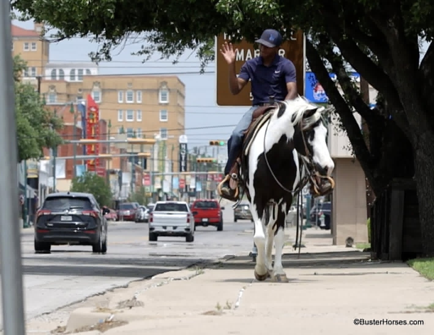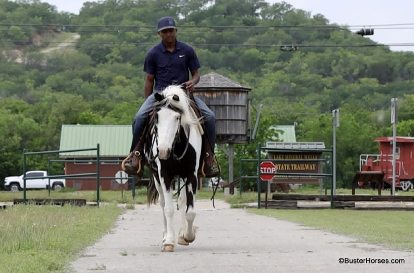 If you are looking for a flashy, fun, no-nonsense, sweet, just point-and-go have a good time trail riding companion… then Tonto is your man!!! He is at the perfect age at only 7 years old, he has already been around and seen lots of things, been hauled, been on lots of rides, been in lots of parades … but he is only 7 and still has his whole lifetime in front of him! This sweet little gelding is great-natured, kind, and so extremely simple and uncomplicated to ride. He is as smooth as they come and suitable for just about any level of rider. If you are sitting on him, you feel extremely secure. He is so naturally smooth moving in all of his gaits, that you would have to practically just pick up and bail off of the side of him to be able to come off of this one!!! He is naturally low-headed and will travel on a relaxed rein and neck rein around – but, you can also pick him up and ride with a lot of contact, and he will tolerate just about anything with new rider’s bumbling around being all over on him, in his face, and in his mouth. He has an adorable personality and loves to be around people. He drops his head for the halter or the bridle to be put on, and will stand there relaxed and patient if you have to fumble around and get organized. He could care less about other horses and never knickers or calls back to the barn, super good about leaving the barn and going out alone. He hauls like a perfect gentleman. If you often ride out alone, then this is the one for you. He is great anywhere in the group and has a huge big ground covering almost running walk to him if you push him and ask for it. He is a unique cross that could ride with the regular horses and also keep up with the gaited horses! He loves the water and does not hesitate to cross the creek or go into the pond, he is sure-footed and handles up and down terrain, creek beds, banks, Rocky areas, and thick wooded trees. He pays attention and navigates where he is going. He is great to catch, bridle, saddle, groom, bathe quiet for the vet and the farrier, and just an all-around gentleman! Everybody here adores this sweet horse, he will be with his next partner for a long time! Please do not hesitate to give us a call if you have any questions about him! Ashely at Buster Horses 214-605-7174 Tonto is shod all the way around and is ready to hit any trails that you put in front of him, his feet were just reset last week. Prior to being shod, he was barefoot for quite a while, he has really great feet, and could easily go barefoot again if you were just riding around your place locally. His teeth were just done by our equine dentist last month, and he also had his sheath cleaned, his ears preemptively treated for ticks, and was dewormed at that time. He will arrive to his new owner up to date on everything and ready to go. He is in great shape and in good health. Watch his video, and to see additional videos, go to our website: BusterHorses.com or our Facebook page: Buster Horses Tonto is located in Weatherford, TX – one hour from Dallas / Fort Worth International Airport. He is an easy day trip, or fun overnight trip to come and try out, from anywhere! We are experienced, knowledgeable sellers, and we can help with quickly arranging affordable shipping to any buyer’s location – we have experience shipping worldwide – including regularly to Hawaii, Canada, Mexico, Europe, and South Africa. Check our website for buyer reviews, more videos of Tonto, additional info, etc: BusterHorses.com/Tonto-Paint-Gelding